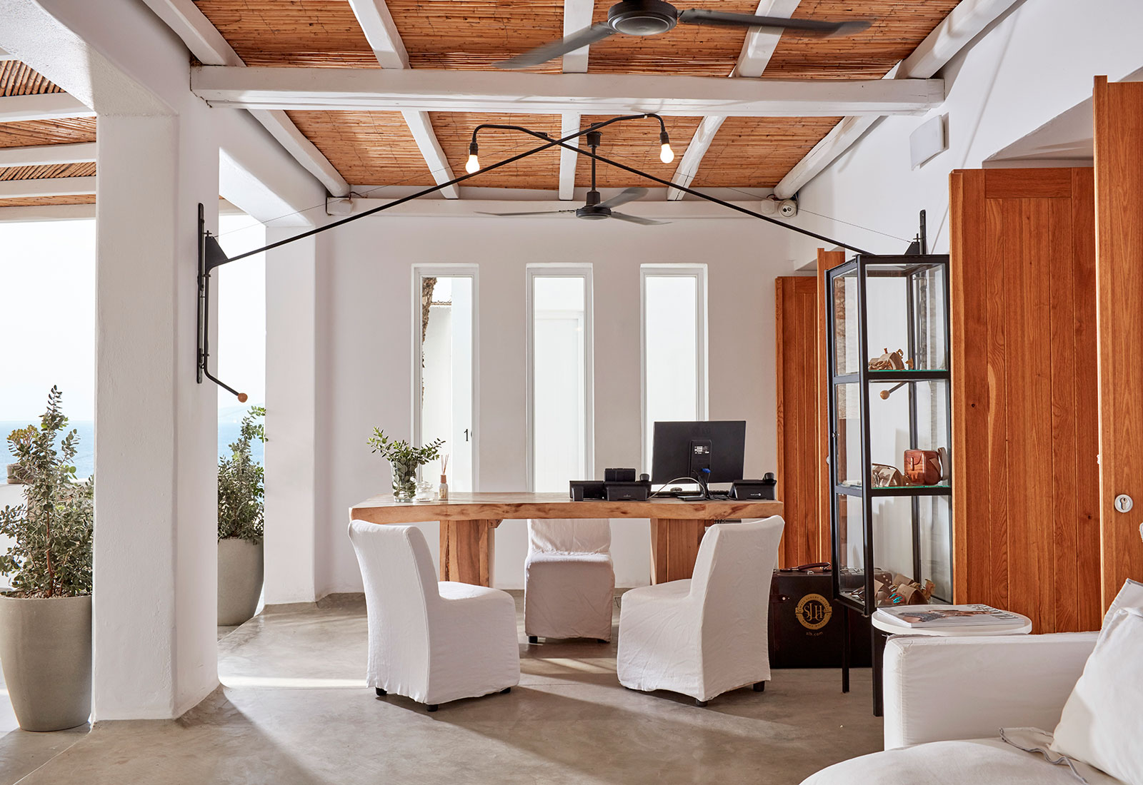 Minimalistisk och ruff, nästan lite industriell ibland. Så skulle man kunna beskriva stilen på de 20 sviterna som var och är helt unik med coola designdetaljer som taklampa av en repstump (!) och sängbord av en hyvlad träkloss. Klädförvaringen löser man på ett ganska spektakulärt sätt och kuddmenyn är given. Vi vågar lova att din privata balkong gör att du inte missar en enda solnedgång över Egeiska havet.