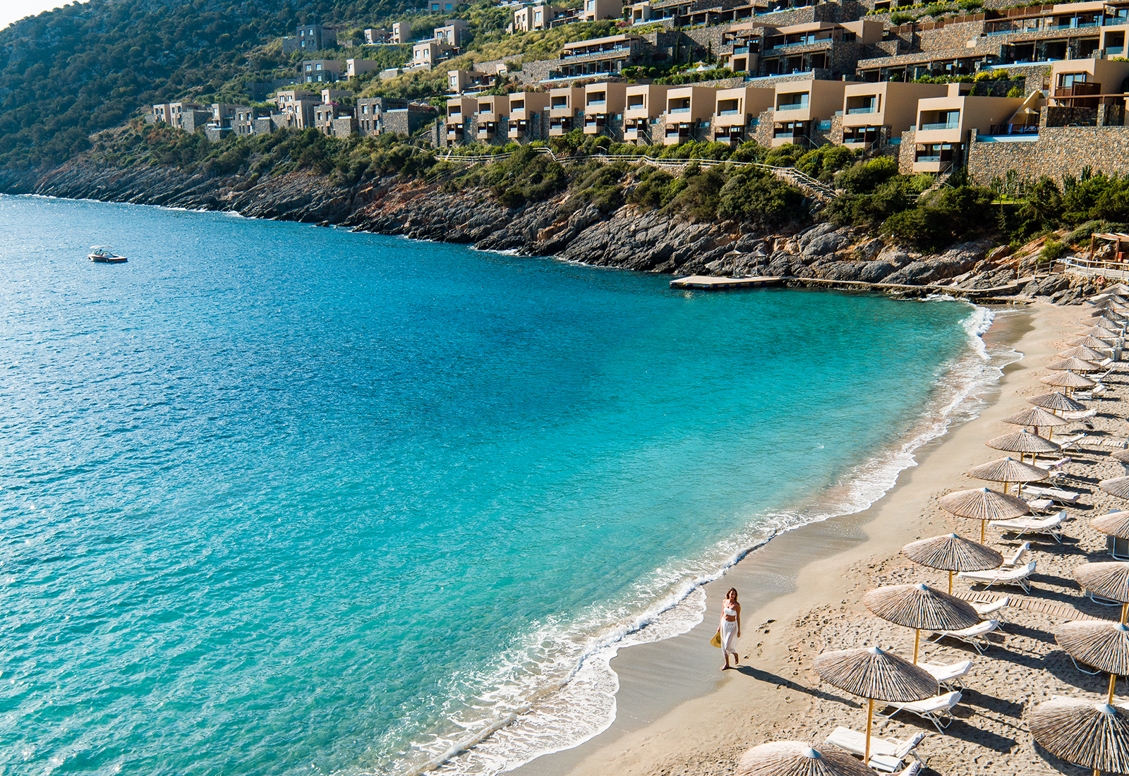 Det fina läget på sluttningen gör att i stort sett alla rum, sviter och villor har balkong med utsikt över havet men vill man komma det ännu närmare, bokar vi ditt boende med saltvattenspool. Här är det lyxigt, modernt och stilrent i ljusa färger. Bonus: Stjärnhimlen ovanför din balkong/terrass är inte att leka med.