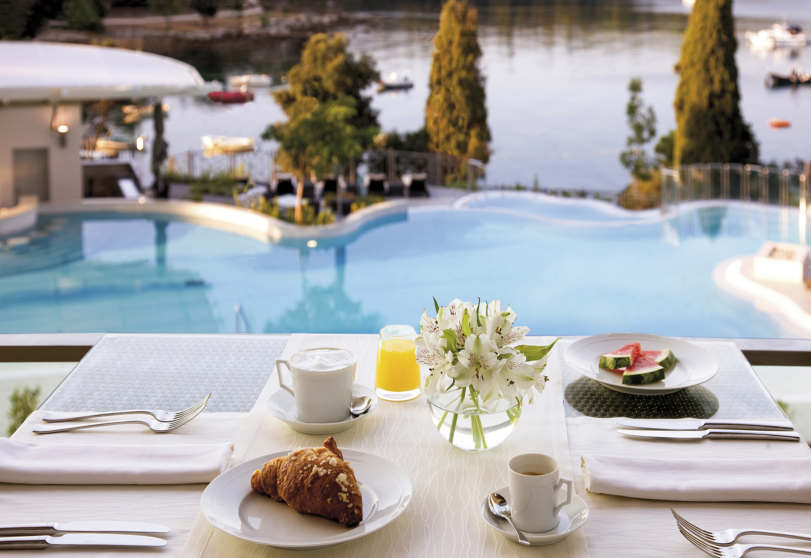 Dra undan gardinerna på morgonen och titta rakt ut över viken där vita segelbåtar ligger utspridda vid sina bojar. Tolv timmar senare är vyn lika vacker men då med en himmel i hundra rosa nyanser. Lika färgglada är inte rummen, som är smakfullt inredda i dova toner och med balkong i glas. Skulle du mot förmodan sakna något, är det bara att lyfta luren dygnet runt.
