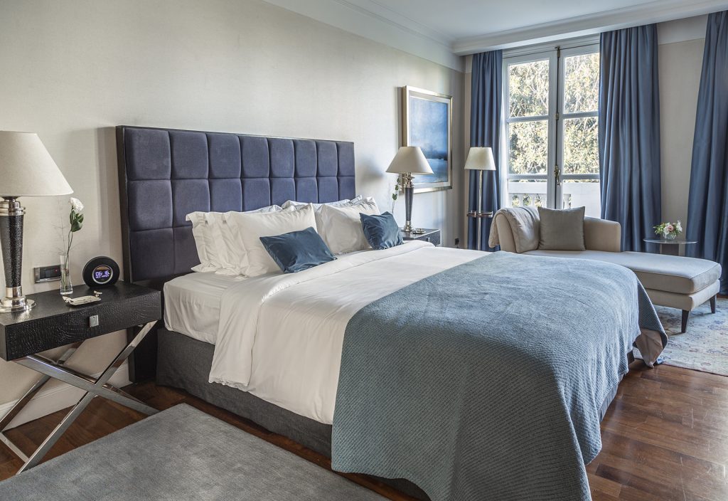 Här har det gått åt golvpolish, minsann! De rymliga rummen och sviterna är inredda i belle époce-stil blandat med modern komfort. Genom de stora fönstren blänker ljuset i de vackra parkettgolven. Utsikten har du mot stan eller mot de prunkande trädgårdarna. Vissa rum har öppen spis och det gillar man ju. Man kan ha önskemål om att bo i Palace-delen eller hotelldelen.