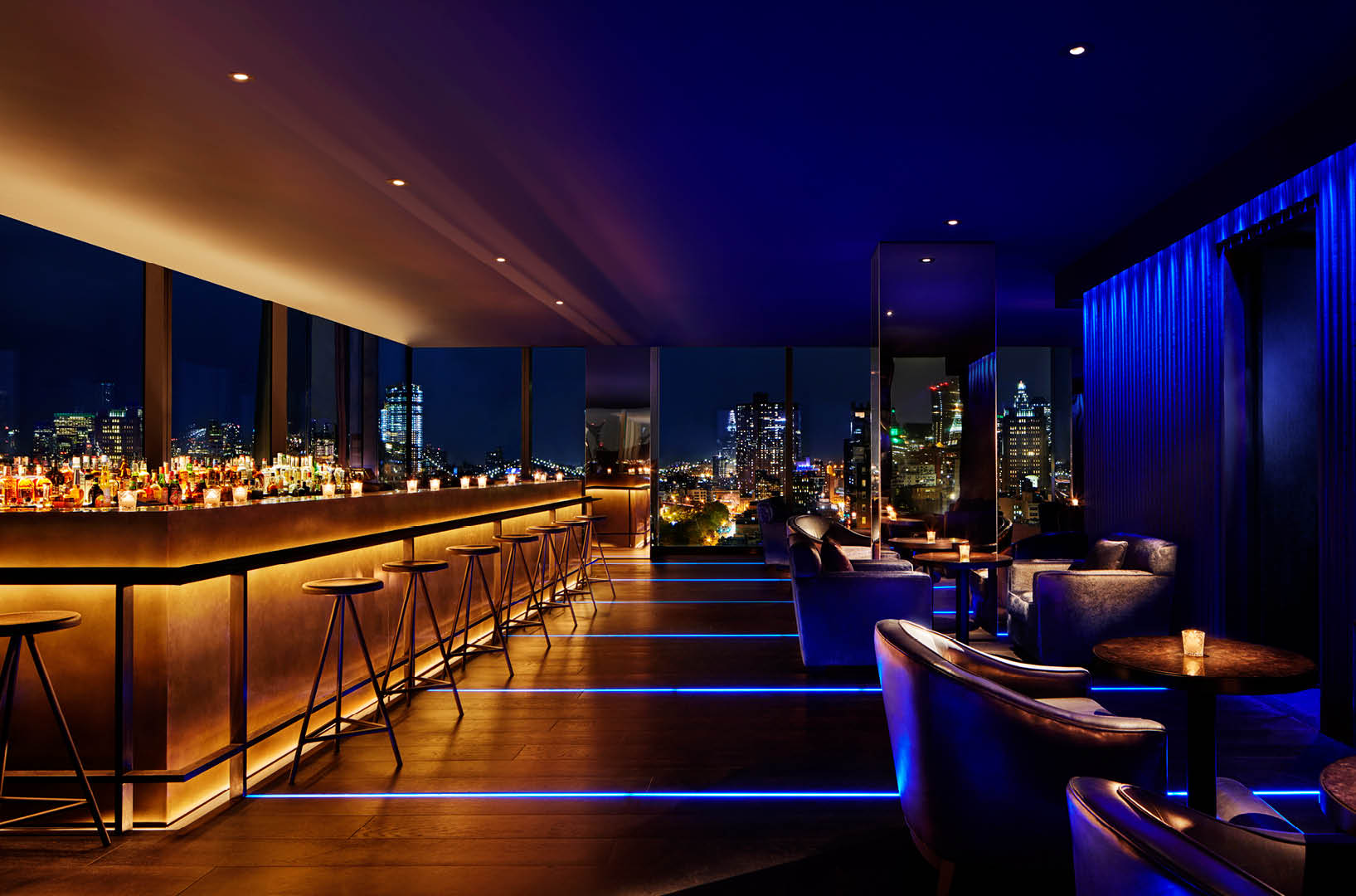 Designade och genomtänkta in i minsta detalj, smarta och stilrena och ändå så extravaganta. Så snackas det om rummen som har panoramafönster, Apple-tv och Manhattans snabbaste wifi. Ät och drick på de två restaurangerna och barerna och avsluta sen kvällen i takbaren där det inte sällan klubbas till långt in på natten med Manhattans bästa skyline i bakgrunden.