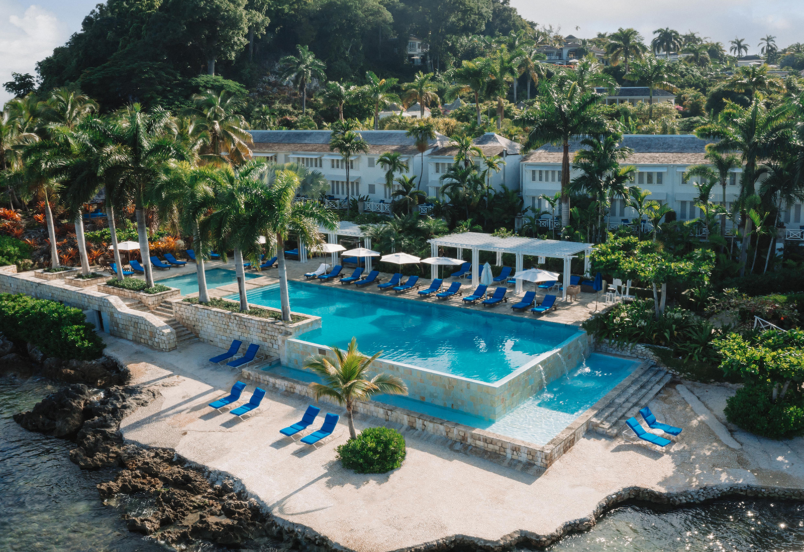 Bland prunkande omgivningar ligger de 26 smakfulla villorna med mellan 2-6 eleganta sovrum, praktfulla vardagsrum, veranda med fantastisk utsikt och i de flesta fall privat pool. Vill du, lagar och serverar personalen din frukost i villan varje morgon. Behöver du inte så gott om plats, tipsar Pineapple House med sina 36 rum, alla med havsutsikt, vita jalusier och inredning av Ralph Lauren. Föredrar du hotellrum finns såklart det också att tillgå.