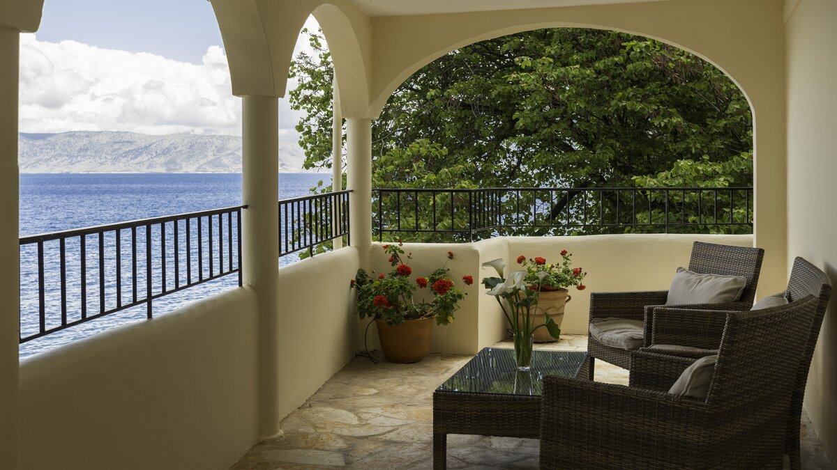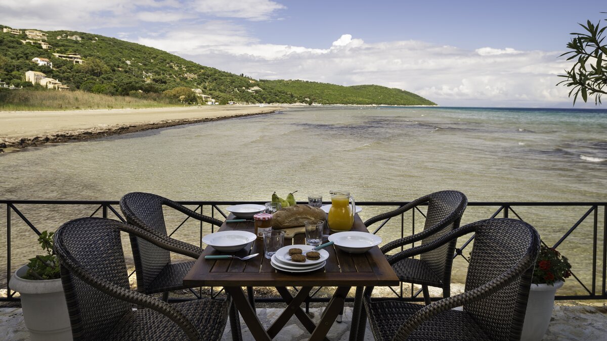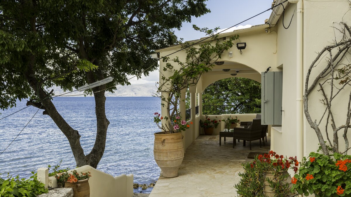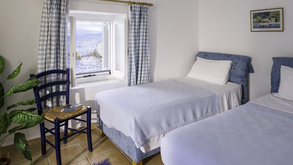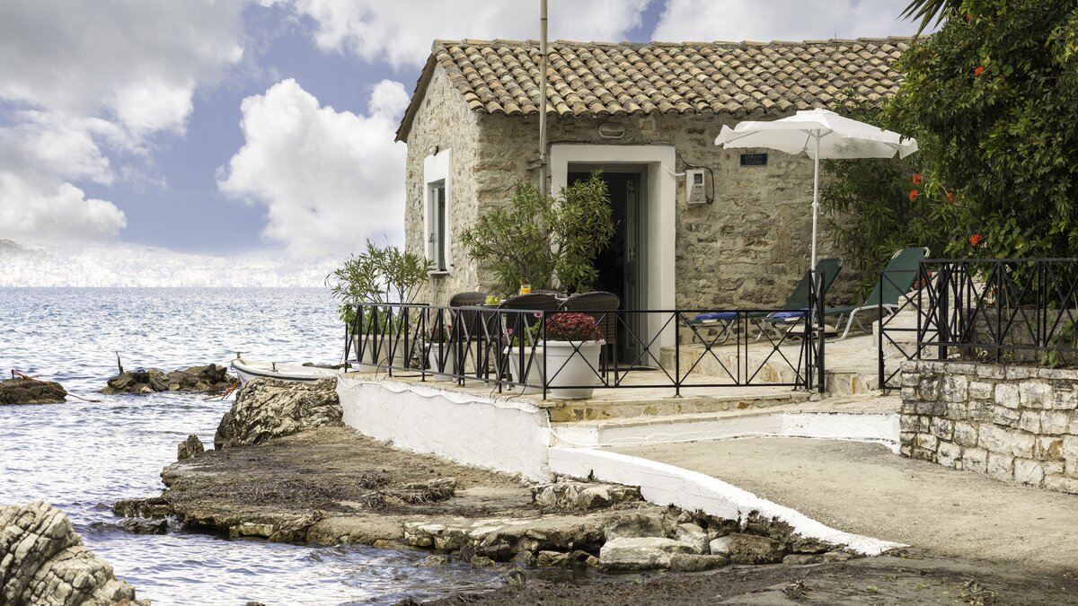 Two simple stone buildings in one stunning setting on the rocks, this pair of holiday houses, put together, form a unique family property in Corfu. There really is nothing else like it.
