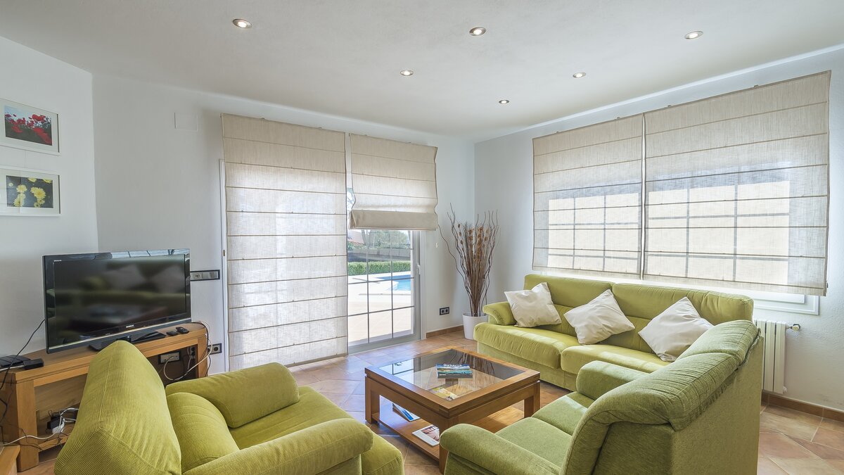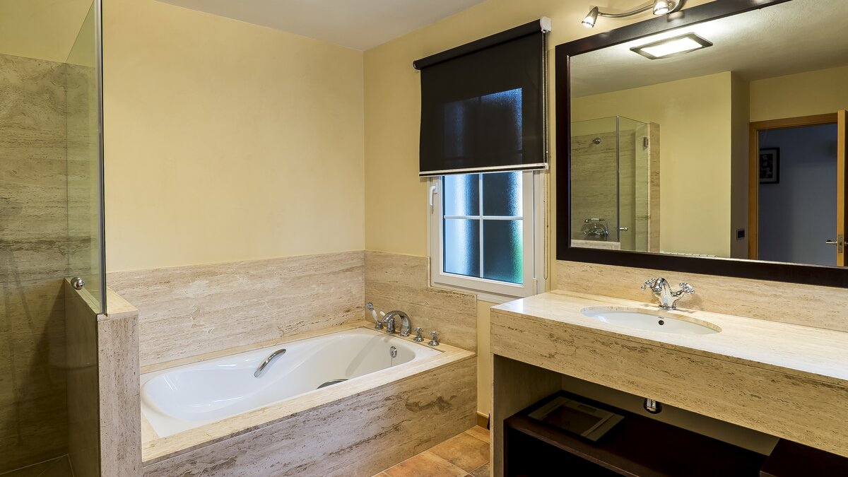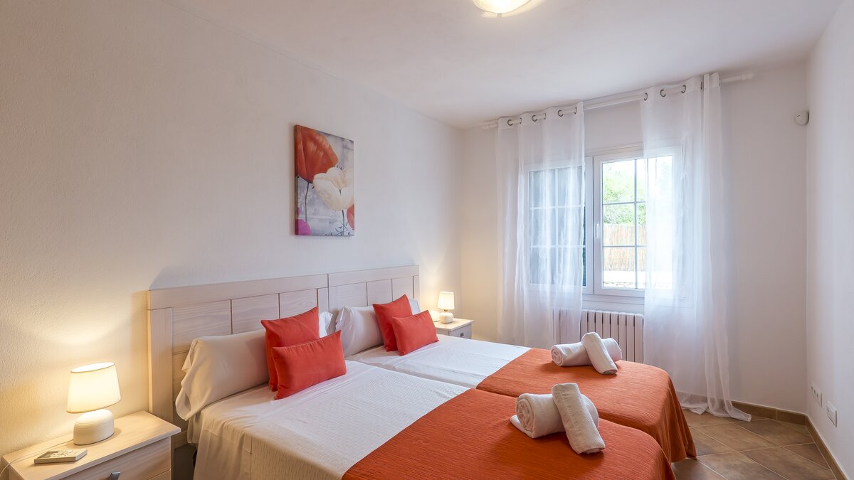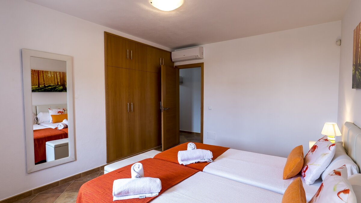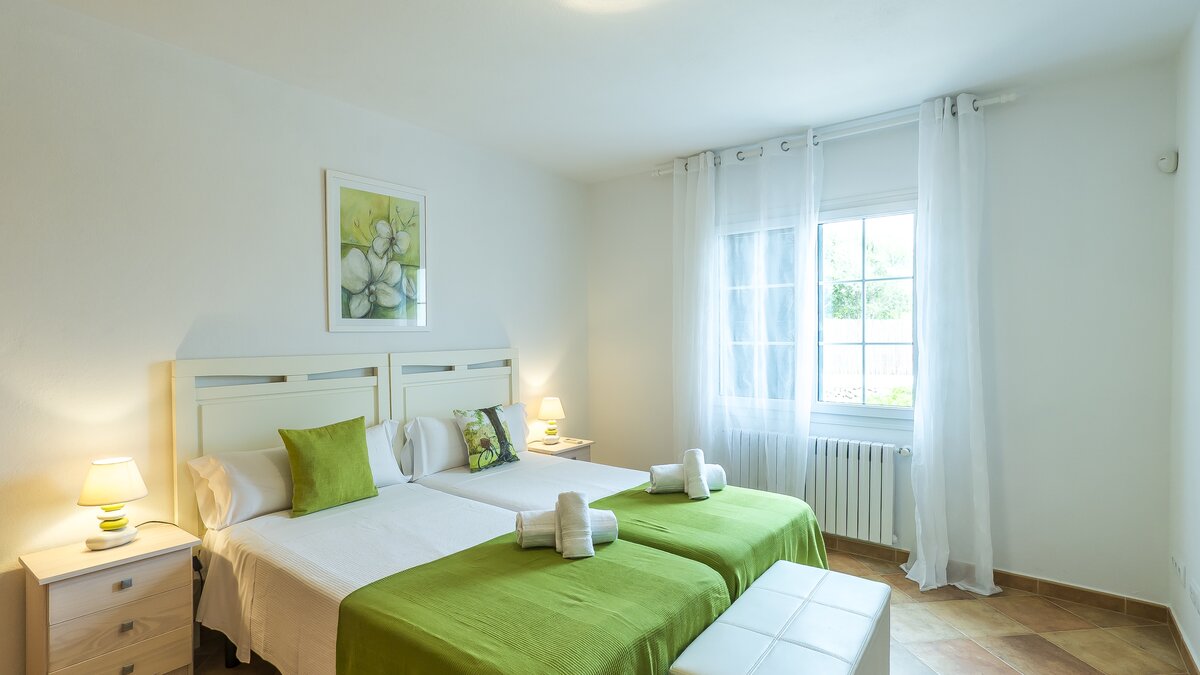 Arenal is an excellent family villa decorated in a modern and comfortable style throughout; neutral interiors brightened with flashes of colour giving a light but homely feel. There is a well-equipped kitchen and a bright and spacious living/dining area, both with glass doors opening out on to the covered dining terrace. There is a spacious master double bedroom with a very well-appointed en suite bathroom and separate walk-in shower, along with four light, spacious and comfortable twin bedrooms sharing two shower rooms.