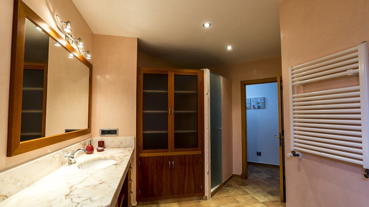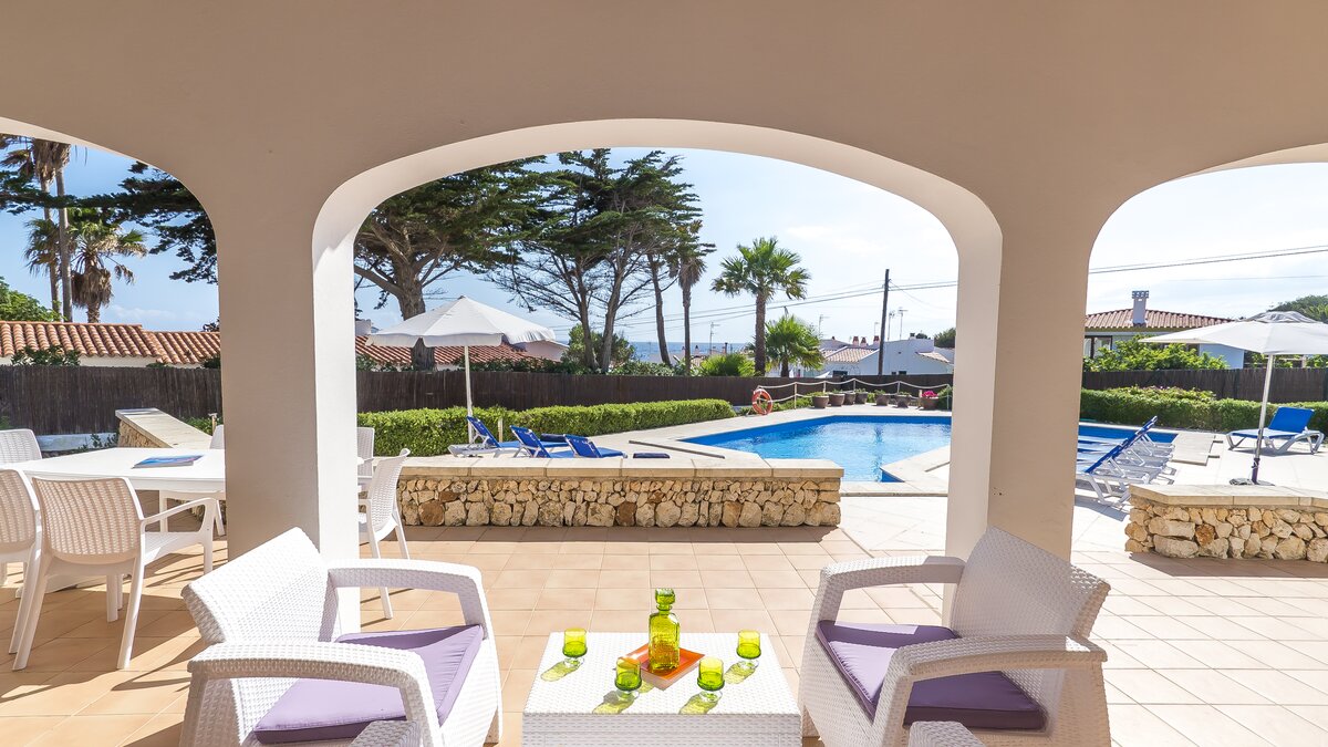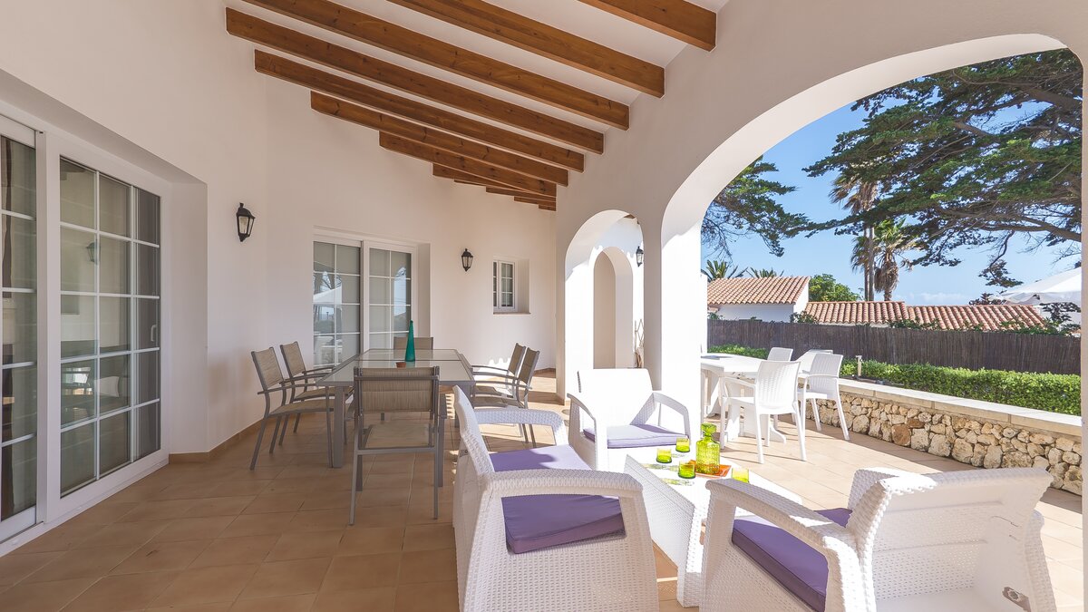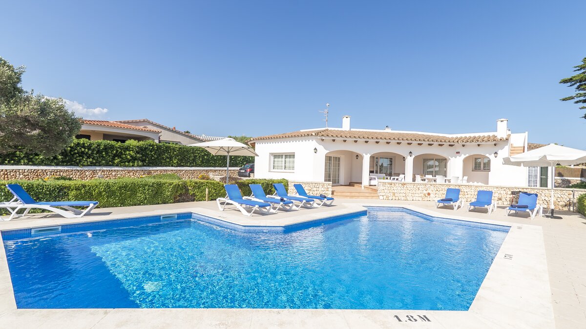 Outside, the shaded terrace is furnished for al fresco dining, the perfect spot for a barbecue dinner. Steps lead down to a large patio with private swimming pool and sun loungers, the ideal place to admire the sea view. The property is in a residential area with other villas, and is within easy reach of a selection of stunning beaches, from sandy stretches to sheltered coves, the closest just 2km away. Menorca’s capital Mahon, with its shops, cafes, bars and restaurants, is only 11km away.