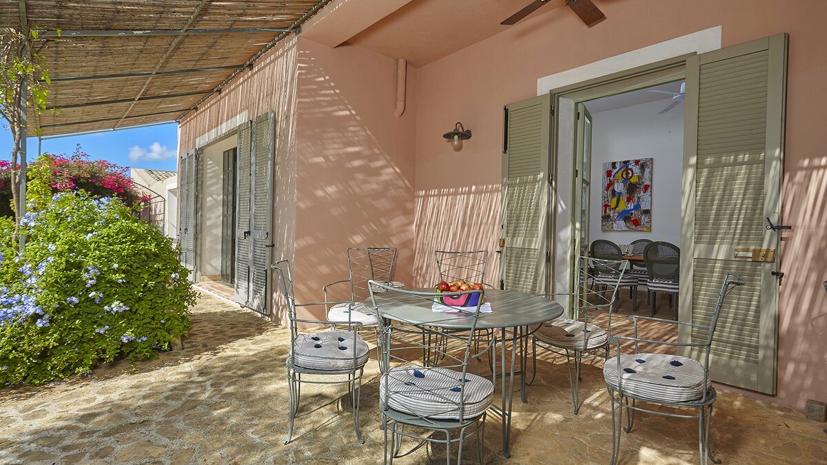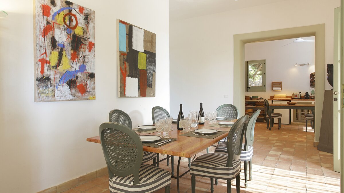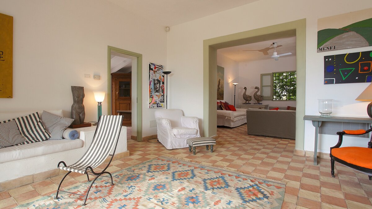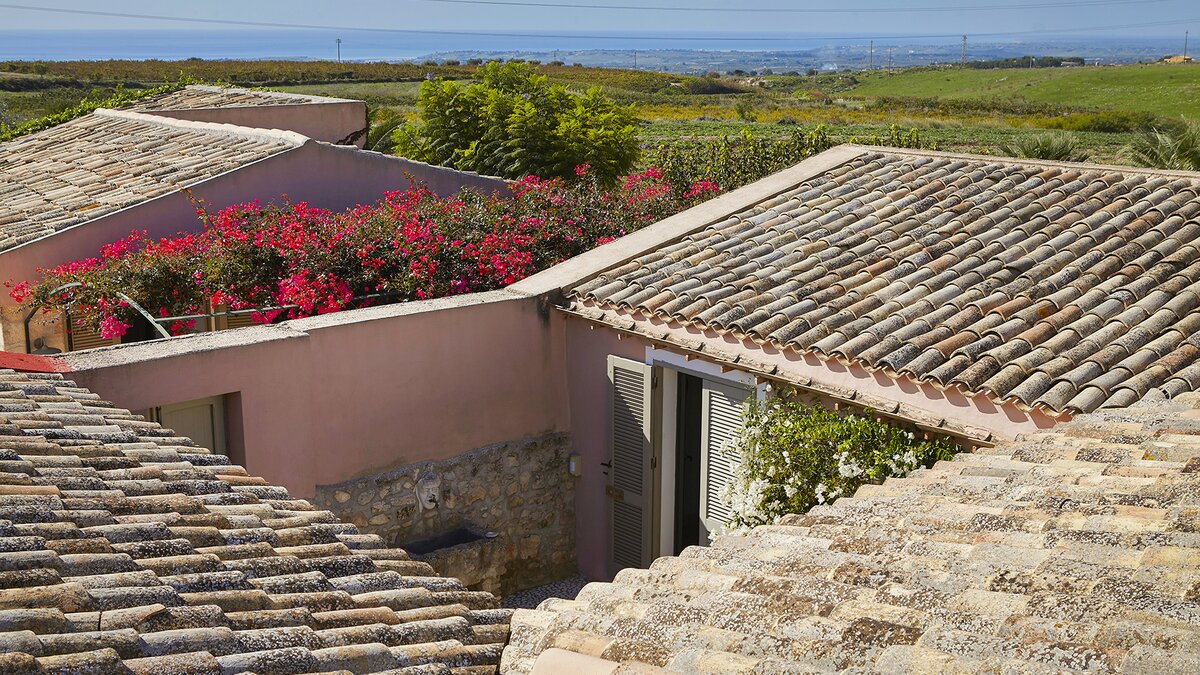 Set in a seven hectare farm of grapevines and artichokes, this lovely old ‘baglio’ is built, in typically Sicilian style, around a cobbled courtyard, liberally sprinkled with flowering shrubs and hemmed with a covered dining terrace and pergola shaded verandas. Just behind the courtyard, with open views of coast and countryside, a separate sunny terrace surrounds the private pool, with loungers on its poolside lawns and tree shade for sundowner seating. And the ultra-relaxing tempo continues within the wonderfully comfy house, where original architectural features form the framework for bold artworks, bright cushions piled on big sofas, bedrooms in simple country style, and smart modern bathrooms. An ideal house for a family gathering or couples travelling together, perhaps with some children in cots. Baglio del Vigneto consists of three buildings. The main house has a charming kitchen, the quirky elegant dining room, a large living room with an open fire, and one of the en suite bedrooms. Across a small inner courtyard, three bedrooms occupy a second building. And the pool annexe has a double room spacious enough for a cot. The pool is set in a south facing terrace with some trees. This is an extraordinarily beautiful, quiet and unspoilt corner of southern Europe with superb inexpensive restaurants and glorious sandy beaches within easy driving distance. The villa is 5km from shops in Menfi and 11km from sandy Portopaolo beach and within easy reach of other beaches. Highly recommended.