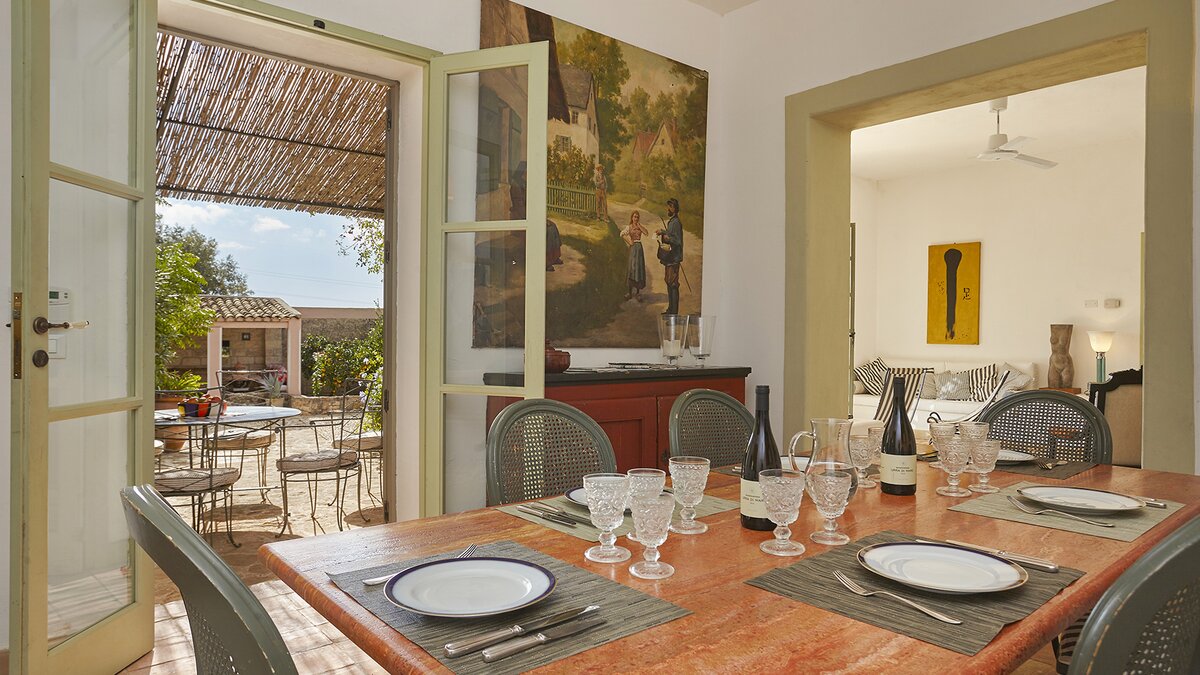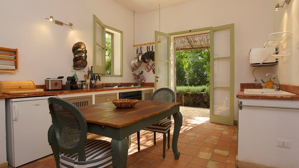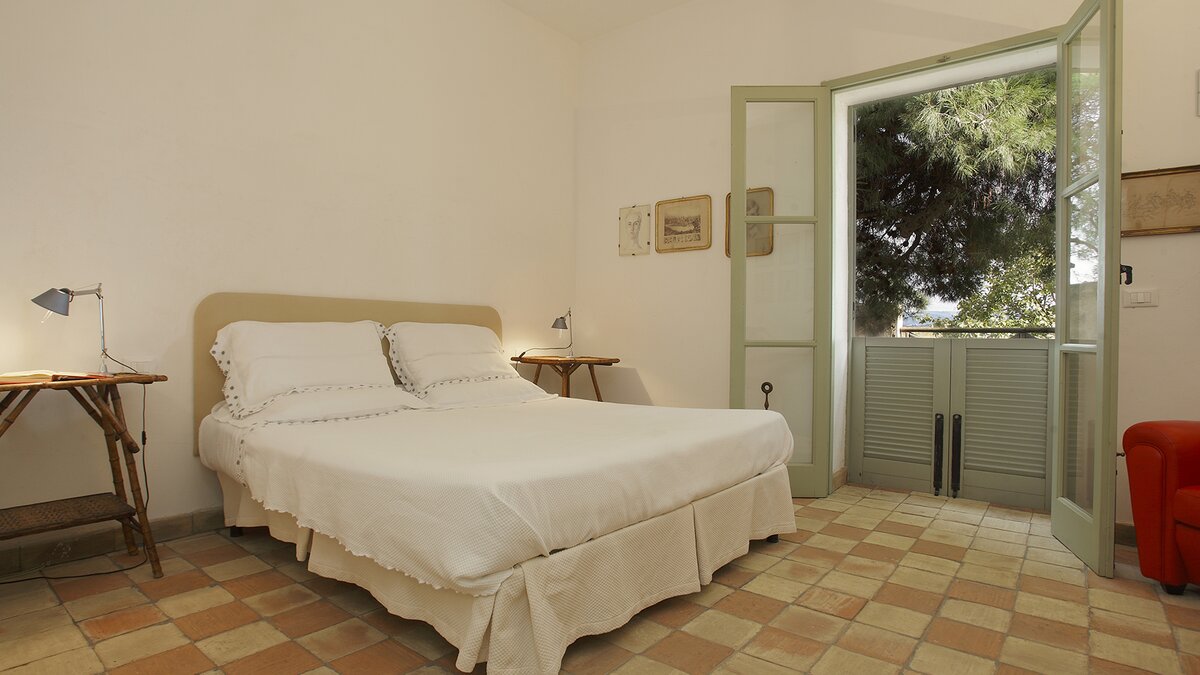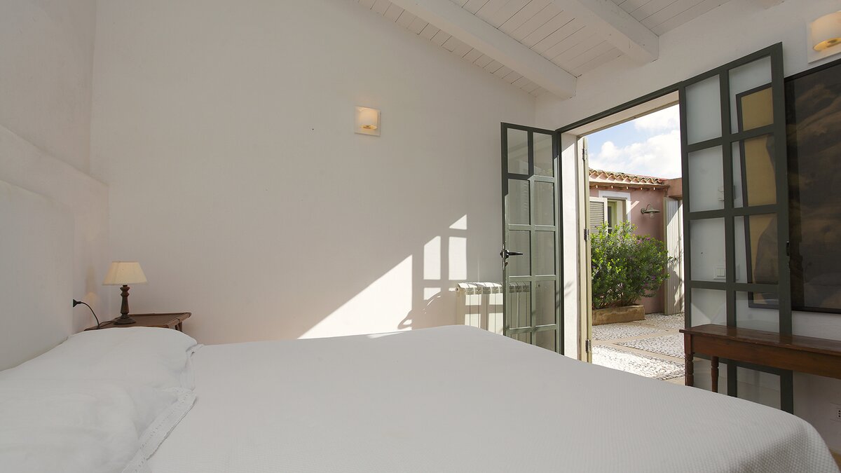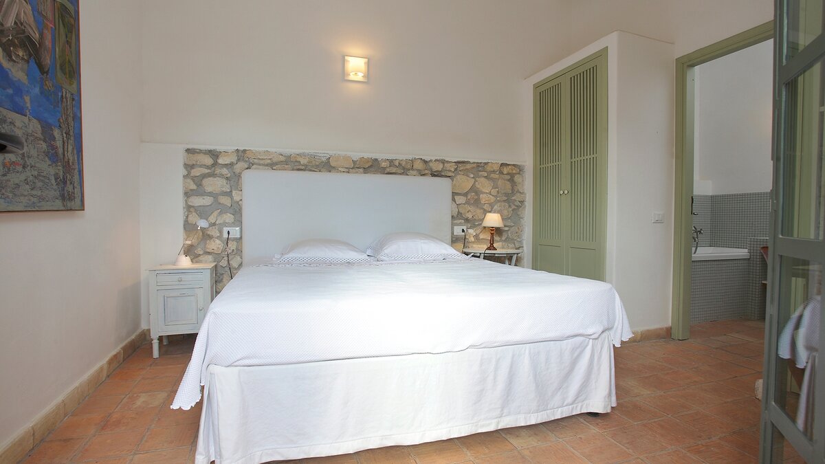 Set in a seven hectare farm of grapevines and artichokes, this lovely old ‘baglio’ is built, in typically Sicilian style, around a cobbled courtyard, liberally sprinkled with flowering shrubs and hemmed with a covered dining terrace and pergola shaded verandas. Just behind the courtyard, with open views of coast and countryside, a separate sunny terrace surrounds the private pool, with loungers on its poolside lawns and tree shade for sundowner seating. And the ultra-relaxing tempo continues within the wonderfully comfy house, where original architectural features form the framework for bold artworks, bright cushions piled on big sofas, bedrooms in simple country style, and smart modern bathrooms. An ideal house for a family gathering or couples travelling together, perhaps with some children in cots. Baglio del Vigneto consists of three buildings. The main house has a charming kitchen, the quirky elegant dining room, a large living room with an open fire, and one of the en suite bedrooms. Across a small inner courtyard, three bedrooms occupy a second building. And the pool annexe has a double room spacious enough for a cot. The pool is set in a south facing terrace with some trees. This is an extraordinarily beautiful, quiet and unspoilt corner of southern Europe with superb inexpensive restaurants and glorious sandy beaches within easy driving distance. The villa is 5km from shops in Menfi and 11km from sandy Portopaolo beach and within easy reach of other beaches. Highly recommended.