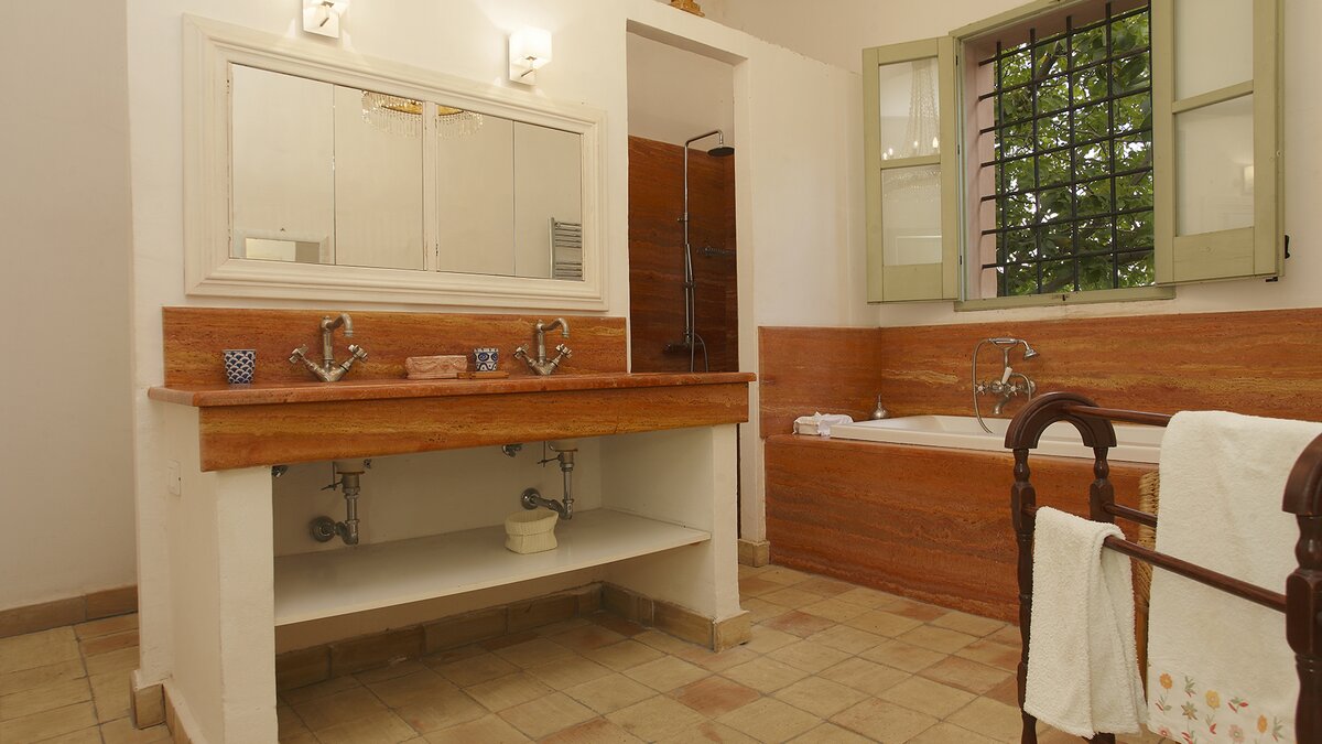 Double bedroom (king size bed) with bathroom en suiteDouble (king size bed) bedroomShower room with double basinsTwin bedroomNote: the second and third double bedrooms have external access from the smaller courtyard but are also connected internally via the shower roomPOOL ANNEXE