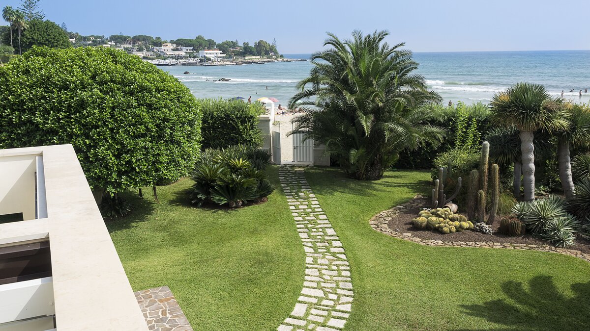 Denna moderna strandvilla ligger i en av de mest populära semesterorterna på Siciliens östkust och har tillgång till en trädgård med tillgång till sandstranden i Fontane Bianche.