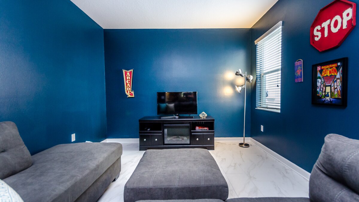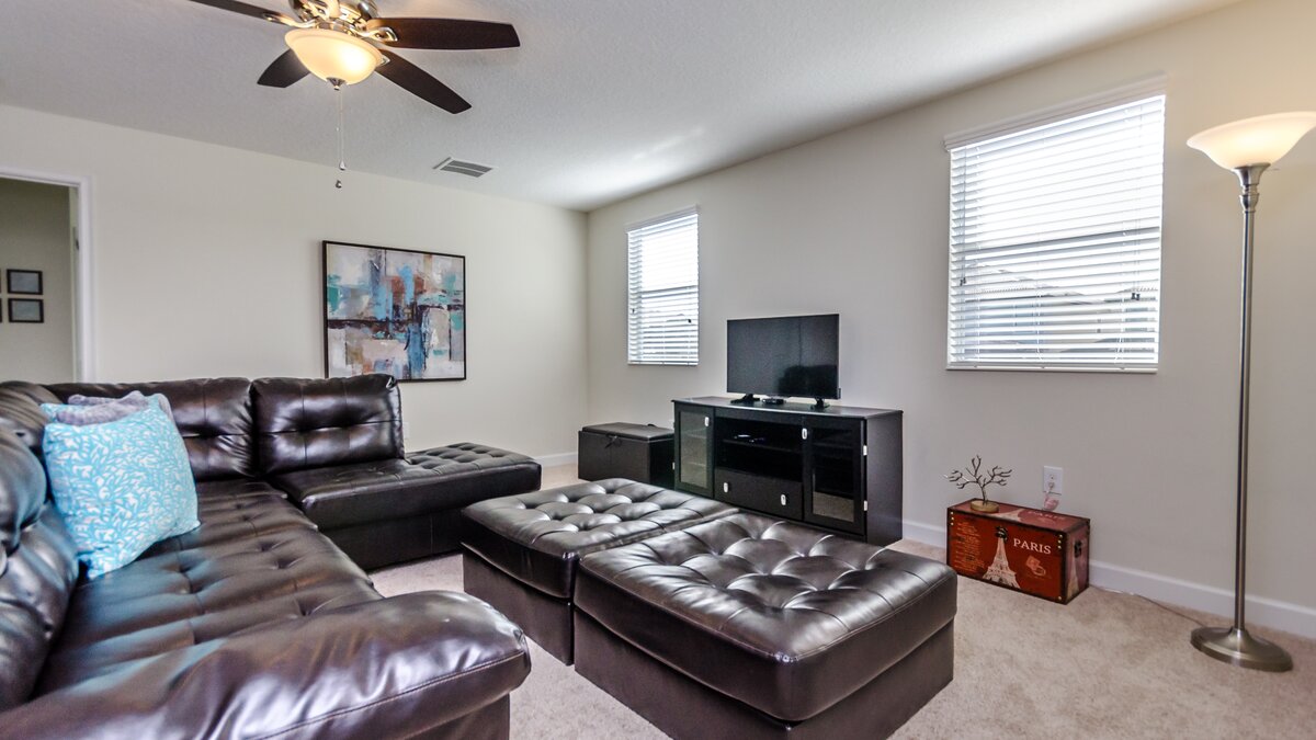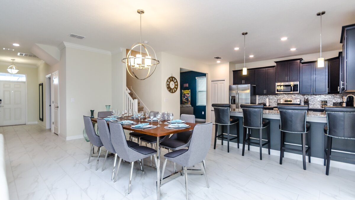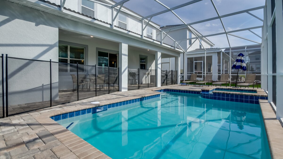 Set on the Champions Gate community, guests at Black Orchid have access to communal facilities including swimming pools, a lazy river, children’s water playground, fitness amenities and a bar and restaurant. The property itself has a lovely outdoor area with private pool, and a barbecue and dining table for al fresco meals. Inside, on the ground floor an open plan kitchen/living/dining room offers plenty of space for socialising, while upstairs there is a comfortable family room.