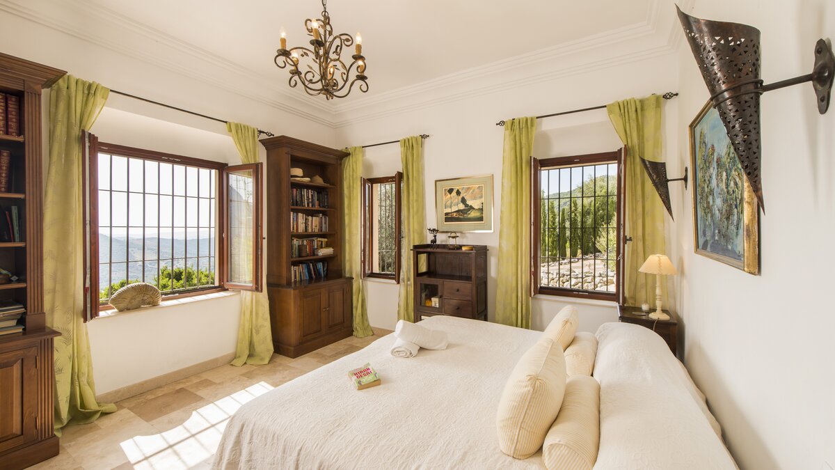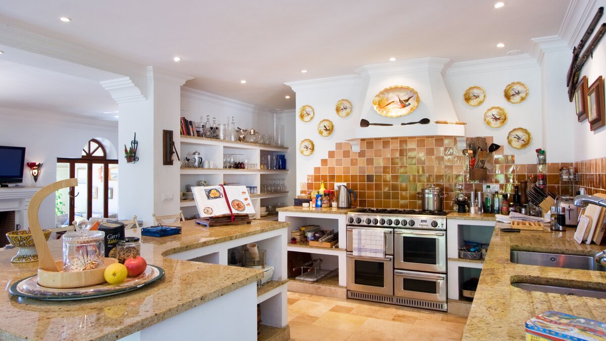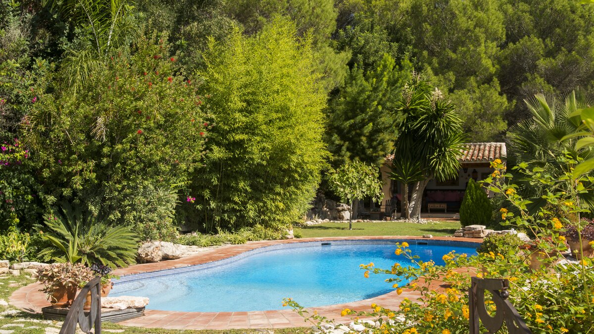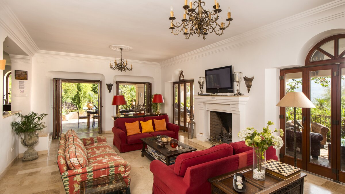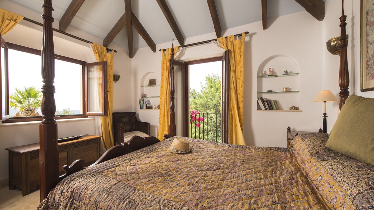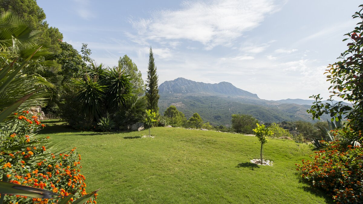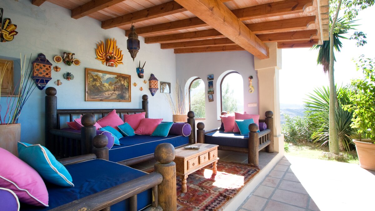 With beamed ceilings, big four-poster beds and bags of space indoors and out, this family villa oozes quality and character. Floored in polished marble, the house has a country-style kitchen, open-plan to the dining area, and a colourful sitting room complete with an open fireplace. Double doors lead to a terracotta tiled terrace, furnished for al fresco living and overlooking the peanut-shaped pool in its gated and lawned garden. And beside the heatable swimming pool, a delightful loggia has big chairs and a day bed, all piled with pink and blue cushions in a modern twist on a Moorish theme. Cook service is available to complement the very relaxing atmosphere, and the villa’s seven bedrooms are thoughtfully furnished to make flexible accommodation for families or groups of friends. Set on the hillside, 5km from Gaucin’s shops and restaurants, Casa Dana is reached via a private track off the road from the coast, where Estepona beach is a thirty minute drive away.