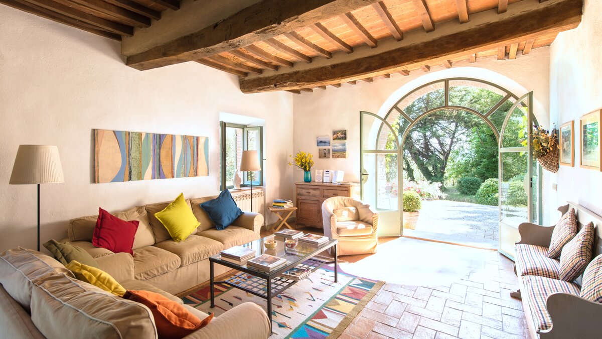 Det är något ganska förtrollande med att närma sig denna villa, längs en allé av bok, ek och gamla kastanjeträd, förbi ett sekel gammalt cederträd till det vackra stenhuset, täckt av klättrande rosor, med en fantastisk utsikt över Cetona som bildar en sagobakgrund. Inom tomten är breda gräsmattor prickade med blommor och buskar. Poolen ligger mellan silverpläterade olivträd och doftande lavendel. Inne i villan är de rymliga rummen vackert möblerade i fräsch lantlig stil. På bottenvåningen är ett charmigt vardagsrum/matsal uppdelat av ett stort stenvalv, eko av stora dubbeldörrar till trädgården, medan ett andra vardagsrum, på våningen ovanför, har ett coolt lantligt utseende och öppnar upp till toppen av den yttre stentrappan. Med skogsstigar på tröskeln, är villan bara 2,5 km från Cetonas affärer och bra restauranger, med golf på Panicarola, vattensporter på Trasimenosjön, ett toppmodernt spa på San Casciano dei Bagni, Citta della Pieve och fascinerande Cortona alla inom 50 km. Inom enkel och snabb tillgång till intressanta städer både i Toscana och Umbrien och Rom och Florens inom räckhåll via snabbtåg från Chiusi, är detta verkligen ett utmärkt läge.