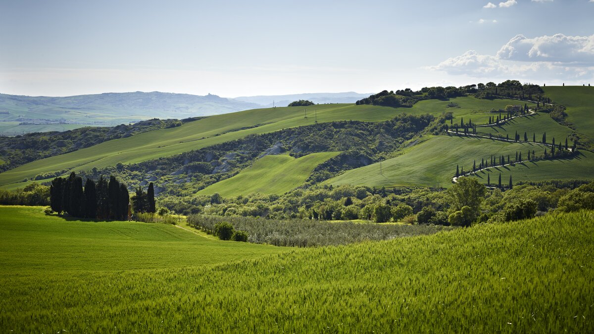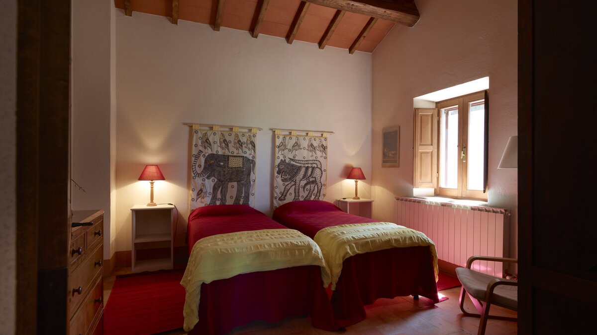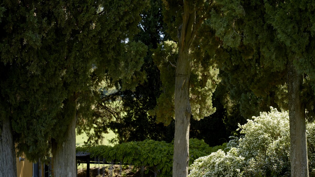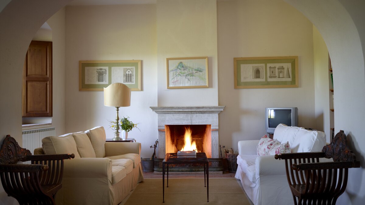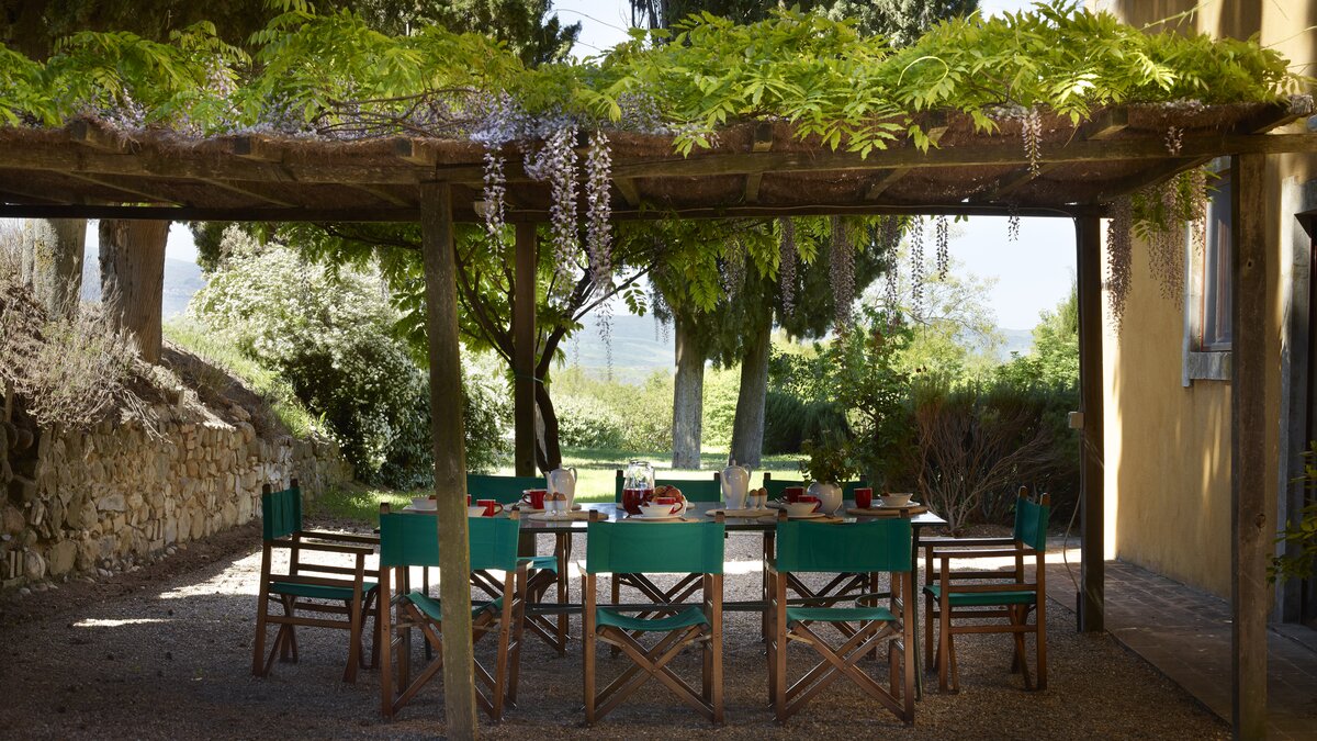 Colour-washed in a sunshine shade of ochre, and furnished with effortless elegance and oodles of charm, this delightful house is designed throughout in traditional Tuscan country style, from raffia-seated dining chairs and vibrant bedroom kilims, to its two sitting rooms, one cool and smart in creamy white, with a bespoke travertine fireplace; the other cheerfully informal with big, bright cushions by a rustic inglenook fire. Accessed by a specially created spiral staircase, the upper floor of the villa is home to three bedrooms, the fourth enjoying extra privacy in a separate garden annexe. Scented with roses, softly encircled with trees and shrubs, and looking out to lovely views of the Val d’Orcia’s rolling hills, the gardens of Casa Del Rondone are an irresistible draw to al fresco living. A dining pergola adjoins the house, tucked between tall cypress trees, and a private pool is sunk into a huge expanse of lawn, with a leafy poolside pergola shading a well-placed hammock. Facilities within the estate include a restaurant and tennis court, and La Foce is a centre for cultural activities during the annual ‘Incontri in Terra di Siena’ international festival.