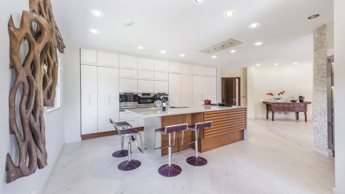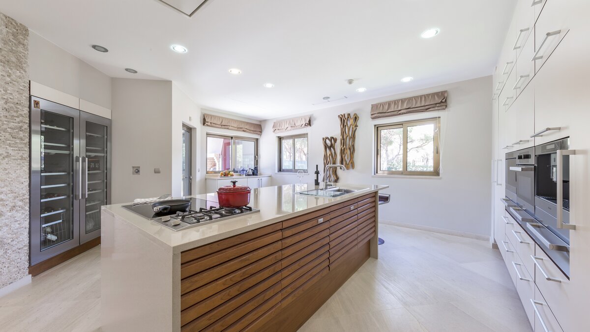 This spacious and airy property thoughtfully planned for both indoor and al fresco living is an excellent choice for a family retreat. Smart and contemporary, Casa do Remo is furnished in cream, with splashes of crisp whites, soft neutral colours, and marble and wooden floors throughout. In the peaceful and private gardens, facilities for al fresco living include an exclusive heatable pool fringed with extensive lawns, an outdoor dining terrace with adjacent barbecue and preparation area, and a shaded veranda for lounging. A staircase by the pool leads down to the lower ground floor of the property. The stylish interiors provide a sense of luxury with the comfort of state-of-the-art facilities. With plenty of space for social gatherings, Casa do Remo has an open-plan living area divided into three zones and a large kitchen and dining room leading out to a covered seating area. All bedrooms in the property have bathrooms or shower rooms en suite. The master suite on the ground floor boasts a dressing room area, a luxurious Jacuzzi bath and a separate shower. Two double bedrooms and a study room complete this level. The lower ground floor contains two double bedrooms, a sitting room, a well-equipped kitchen, and a wonderful relaxation area. This space, complemented, for pure indulgence, by a sauna and a cold plunge pool, is the ideal spot for guests to relax and unwind. This remarkable villa is just a ten minutes’ drive from glamourous Vilamoura with its magnificent marina, stunning sandy beaches, restaurants and shops
