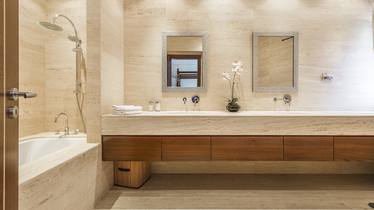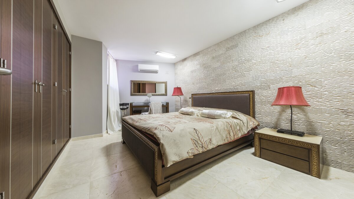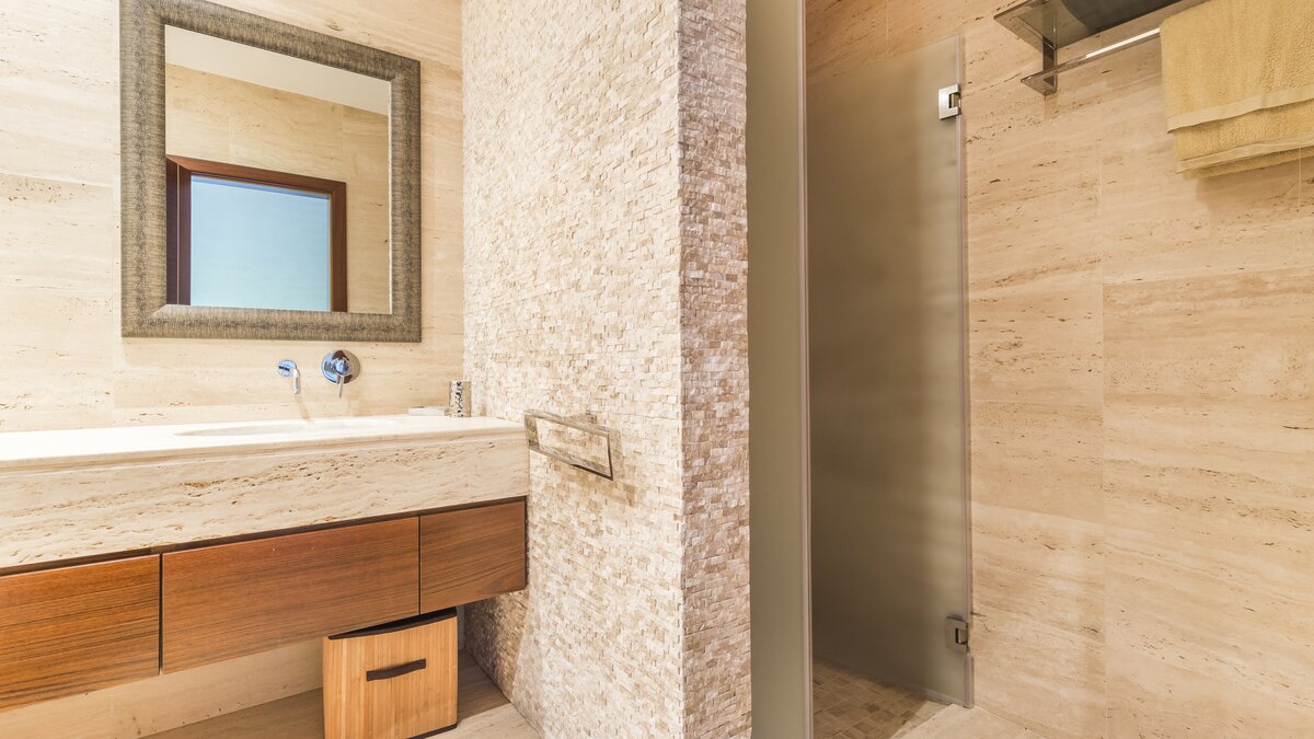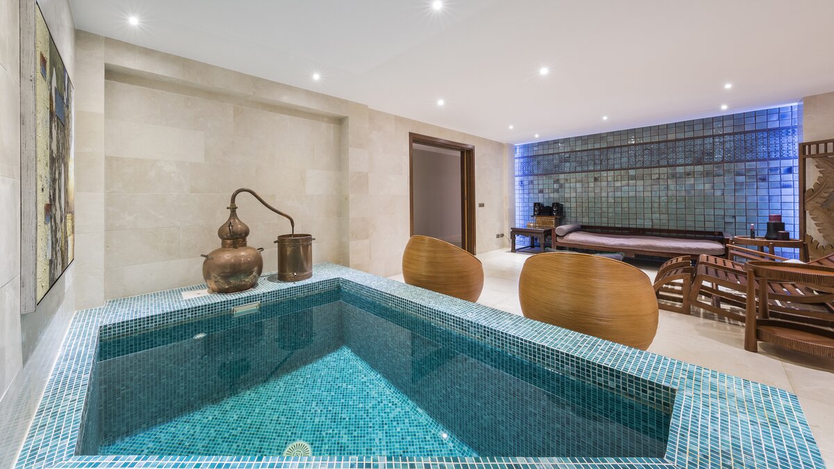 Open plan living area divided into 3 zonesLarge kitchen /dining room leading out to covered seating areaOffice with WCDouble bedroom with four poster bed and bathroom en suite with overhead shower2 Double bedrooms with shower room en suite Master suite : dressing area, master bedroom with jacuzzi bath and separate shower and twin sinksLower Ground Floor