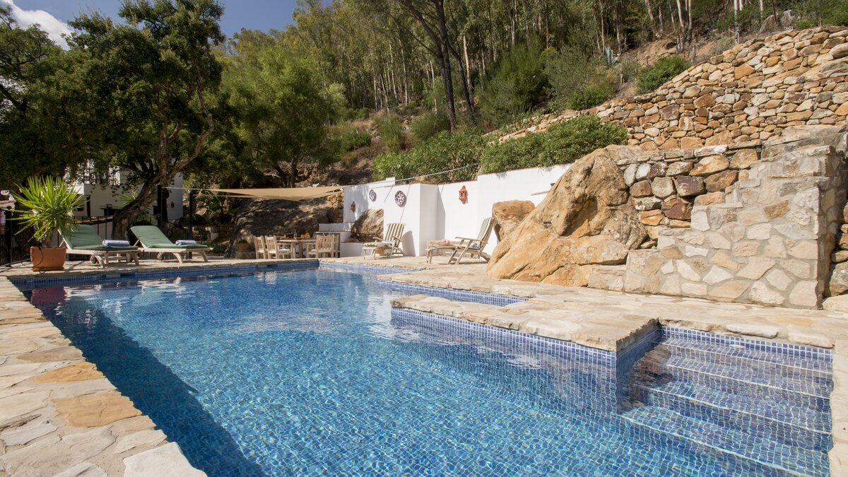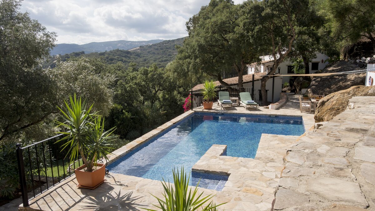 Terraced into the hillside and surrounded by the glorious greenery of the National park, this is a rambling and charming, rural hideaway. With accommodation split across three floors, each level leads out to lovely terraces for al fresco living, while the cool interiors are a well-balanced blend of rustic appeal and contemporary facilities. Exposed beams and terracotta tiled floors add a sense of tradition, while Wifi, satellite TV and a very smart kitchen are reassuring reminders that, though this has all the appeal of the ‘real Spain’, it has all the comforts of the real world.A mosaic-tiled swimming pool seems hewn from the rocks in the terraced gardens, reached via a series of stone steps from the house above. While visually very attractive, it is a layout which is suitable only for fully able guests and not really for children. Shops in Jimena de la Frontera are five hundred metres from the villa, and there are glorious walks and riverbank picnic spots in the national park. Horse-riding is available 2km away.