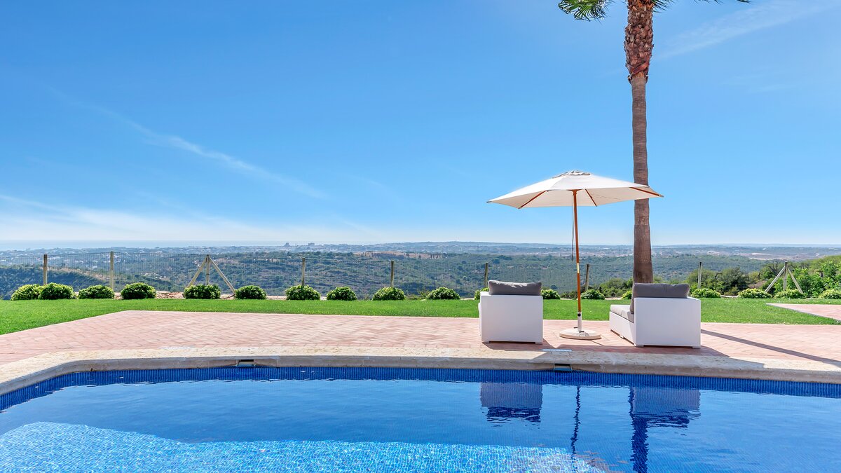 Denna rymliga moderna villa i expansiva grunder har gott om utrymme för umgänge, och en stor privat pool perfekt placerad för panoramautsikt över landsbygden.