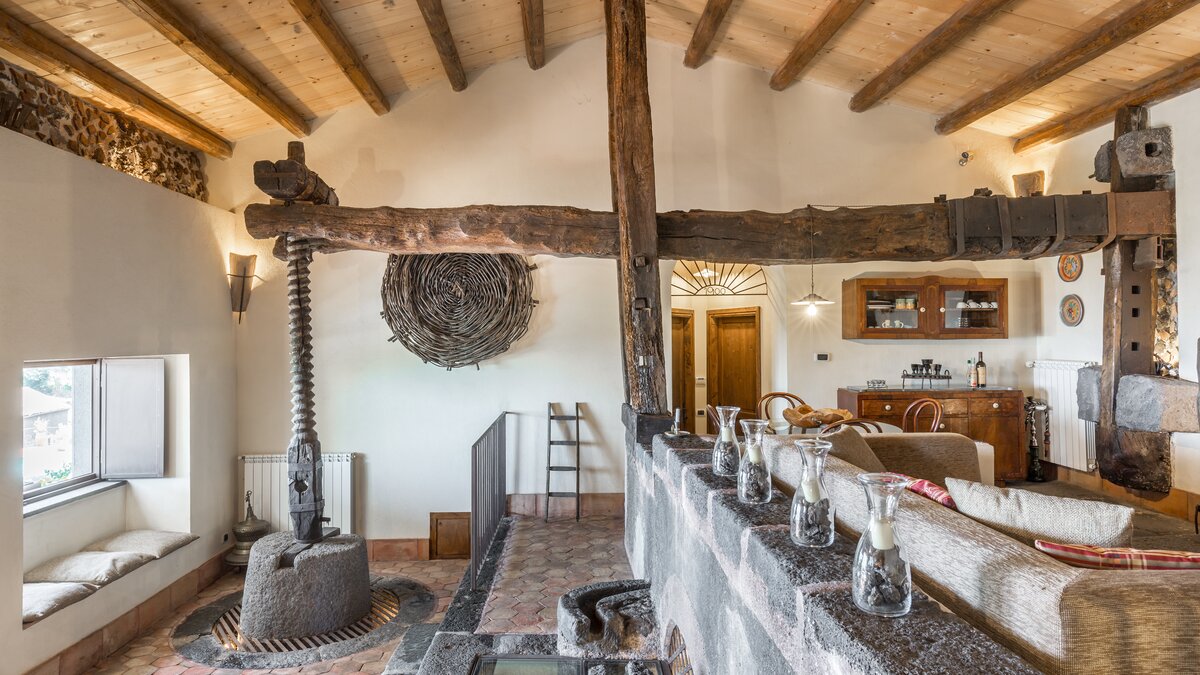 Restored from a former wine press, this charming property is set in the foothills of Mount Etna with far reaching panoramic views over the rolling hills below and out to sea. There are magnificent views from many different terraces of the extensive gardens planted with borders of yellow and white roses - from the principal shaded dining terrace of the main villa with outside kitchen, the shaded seating area by the pool or from the terrace outside the pool annexe. The principal part of the property is the former wine press which has been retained as a feature in the sitting room, (with steps and different levels) where the kitchen area, dining and sitting area have been creatively ‘placed’ around this structure. Off this room, there is a pretty double bedroom and an adjacent room opening to the outside with two sofa beds, suitable for older children. The spacious shower room is across the sitting room. Outside a wide flight of steps lead down through the gardens to the panoramic large pool and further down to the pool annexe. Again, the space in this compact building has been creatively used with a double bed on a mezzanine accessed by a narrow iron staircase and a sitting area, kitchen and shower room at ground floor level. This accommodation is most suitable for young adults. This is also an excellent location - shops and restaurants in local villages of Trecastagni and Pedara are a short drive away. Pleasurable day trips can be spent discovering the picturesque villages and excellent vineyards and restaurants nestling in the foothills of Mount Etna, walking and day trips to the beach. Lively Taormina, Catania and Siracusa are also within easy reach.