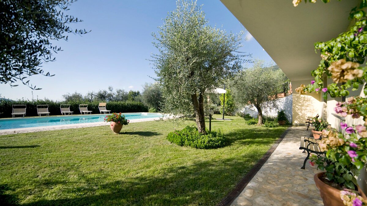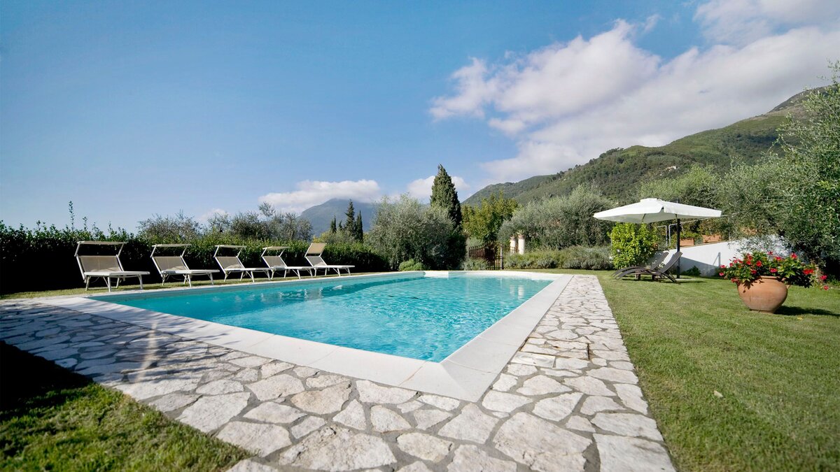 In a sunny spot on the hillside, at the foot of the Apuan Alps, this simple but spacious house is tiered into its sloping grounds, with accommodation over three levels. Privately positioned at the top of the villa is a four-poster bedroom, with French doors on to a covered terrace. Beneath, at upper ground level, the breakfast kitchen is furnished in contemporary country style and is open, through an archway, to an airy sitting room with direct access to the dining terrace. Two double bedrooms share this floor, one with doors on to the garden; and there are two more at the lower ground level, along with a large living room with a dining area, two big sofas and doors straight out to the poolside lawns. Indoor and outdoor comforts are catered for with WiFi, satellite tv and, in the beautifully tended gardens, a built-in barbecue with a wood oven and preparation area. Just 4km from shops and restaurants in Camaiore, Casale il Balzo is 12km from both the lively beach resort of Viareggio and the historic town of Pietrasanta, replete with boutiques, galleries and trendy eateries. Lucca’s lovely piazzas are well within reach, 28km away.