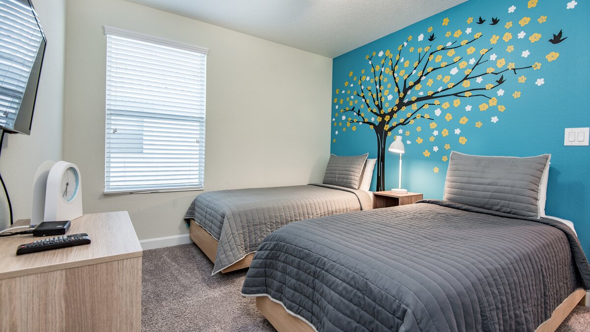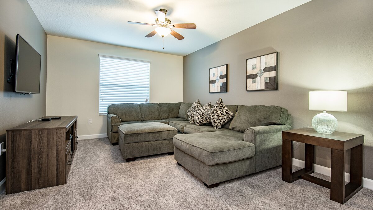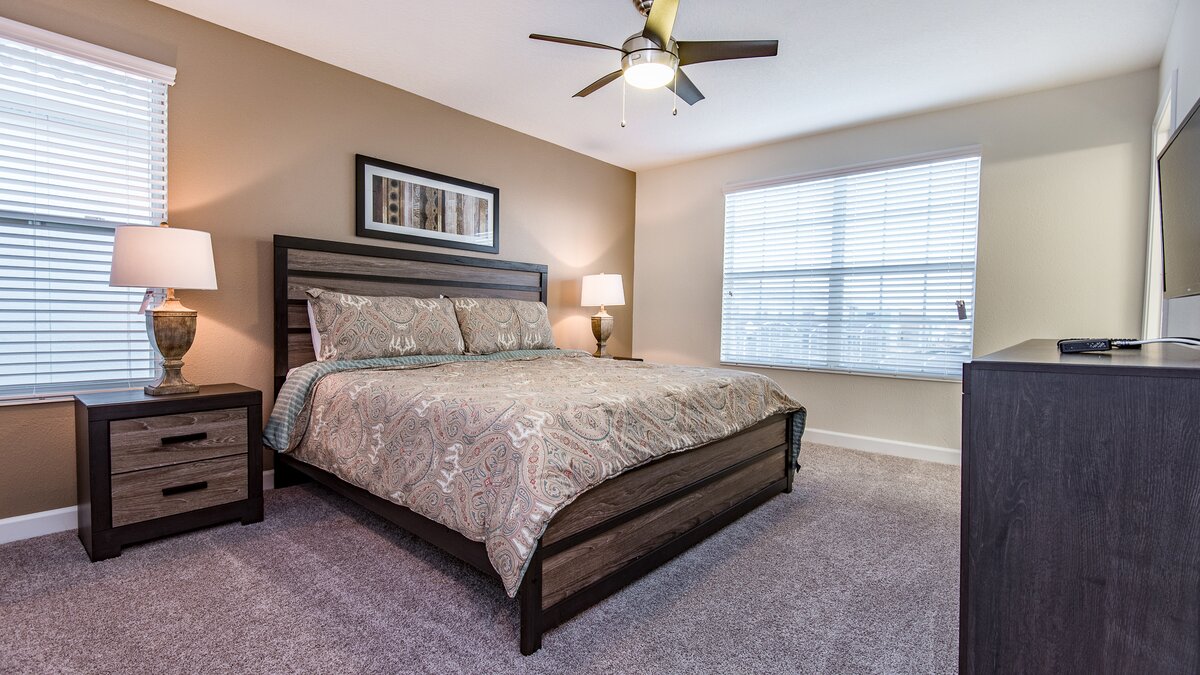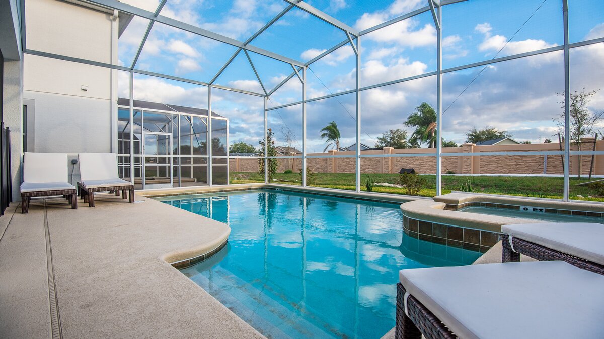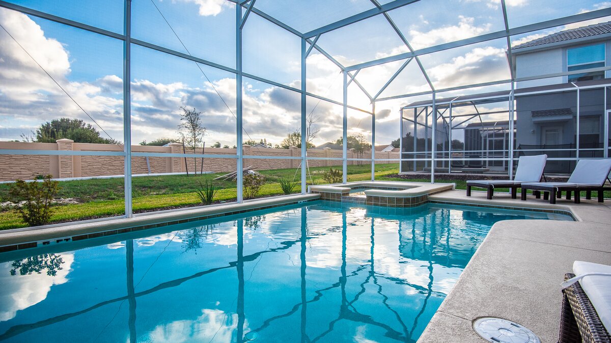 Bedrooms are spacious and stylishly decorated, and a family area completes the first floor. The house is set on the Champions Gate community, and guests have access to facilities such as communal pools and lazy river, a children’s water playground, fitness amenities and a bar and restaurant. Davenport is just 5km away, and Orlando’s attractions, including Disney World and Universal Studios Orlando, are easily reached by car.