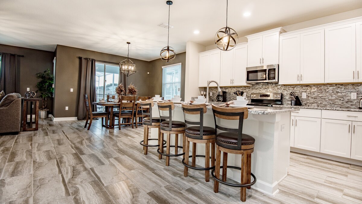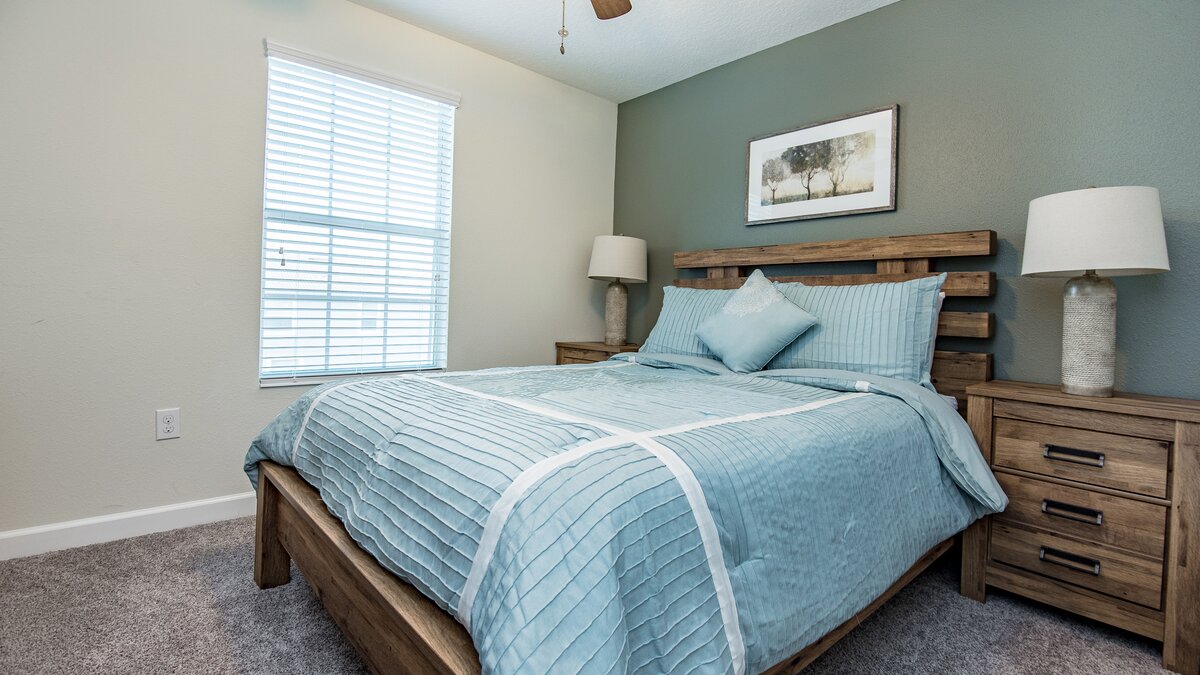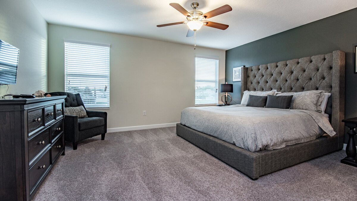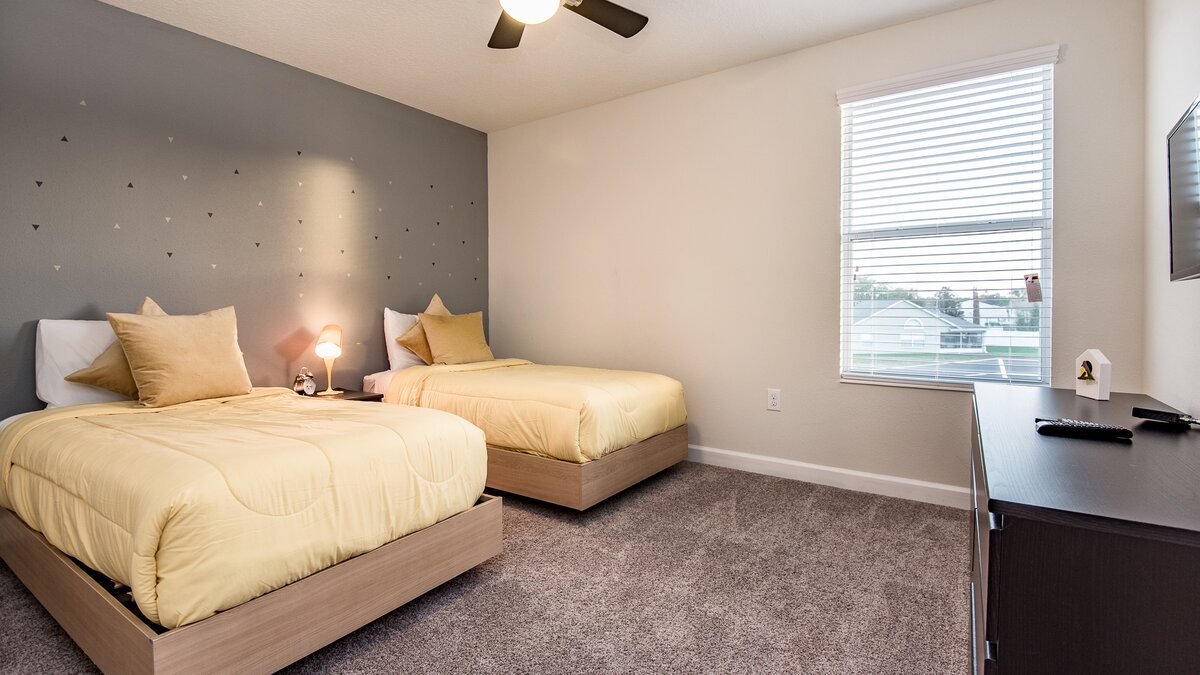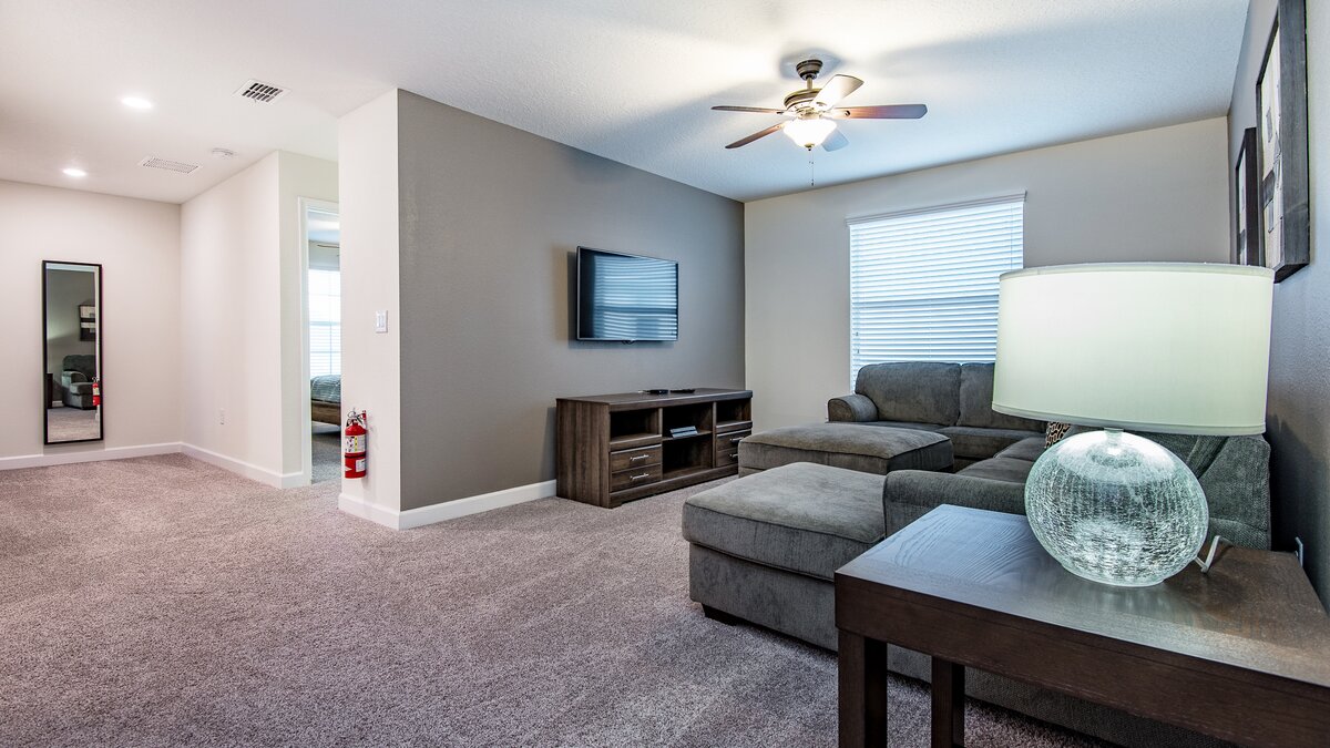 Bedrooms are spacious and stylishly decorated, and a family area completes the first floor. The house is set on the Champions Gate community, and guests have access to facilities such as communal pools and lazy river, a children’s water playground, fitness amenities and a bar and restaurant. Davenport is just 5km away, and Orlando’s attractions, including Disney World and Universal Studios Orlando, are easily reached by car.