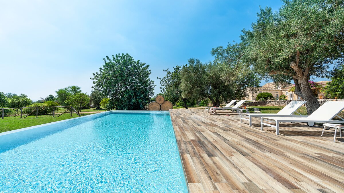 Det finns ett stilfullt enkelt utseende och känsla på denna vackra gamla bondgård på södra Sicilien. Det är privat, bekvämt och mycket avslappnande, med mjuka lantliga nyanser och krämtvättade väggar hela och en klassisk känsla som är elegant charmig. Den stora poolen och vackra trädgårdar är en höjdpunkt i villan – du kommer att känna dig helt nedsänkt i den vackra landsbygden med den lugna utsikten och naturliga höbaldekorationer, och det finns ett modernt pooldäck, med solstolar och en dagbädd i trä, för maximal villaavkoppling.