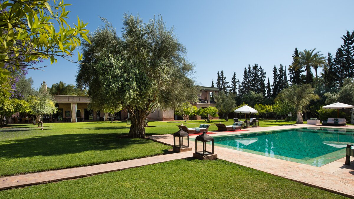 I ett eftertraktat läge, bara 8 km från Marrakech, ligger detta utsökta hus i en magnifik trädgård, där palmer och tallar, gräsmattor och rosenträdgårdar skapar en avslappnande motvikt till badminton- och paddeltennisbanor, bordtennis och utomhusschack. Juvelen i trädgårdarnas krona är en vacker swimmingpool, dess terrasser vid poolen fritt beströdda med solstolar, soffor och enorma paraplyer, med en extra touch av traditionell komfort i form av ett stort Berbertält. Det eleganta huset är lika välplanerat för form och funktion, och har ett eget gym, en biograf och ett spelrum, ett hamam och ett skönhets- och massagecenter.