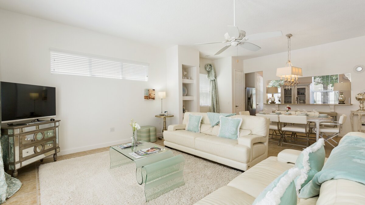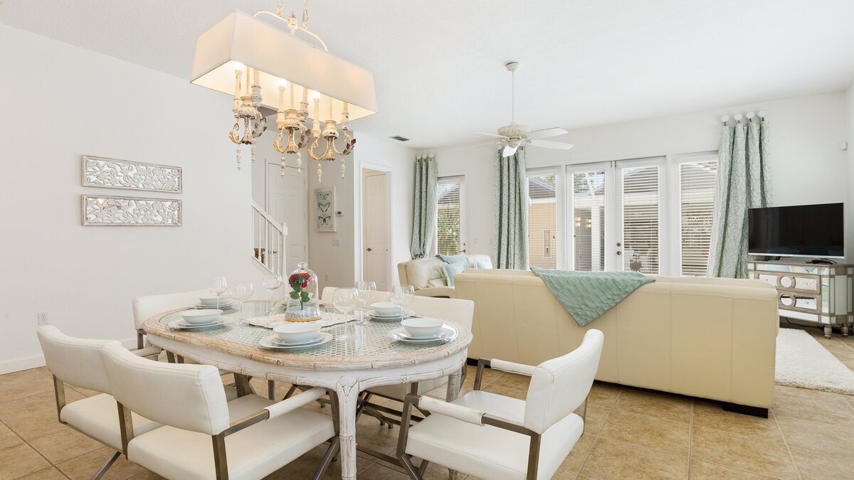 The outside area is perfectly designed for outdoor living, with a private swimming pool sunk into a wide terrace furnished with sun loungers, and an open-sided pool house with a barbecue, dining table for six and a lounge area. Set on the Reunion Resort, gusts at Firebush have access to some of the resort facilities, including the water park, tennis complex and golf course, for an additional cost. The villa is located within easy reach of Orlando’s attractions, including Disney World and Universal Studios.