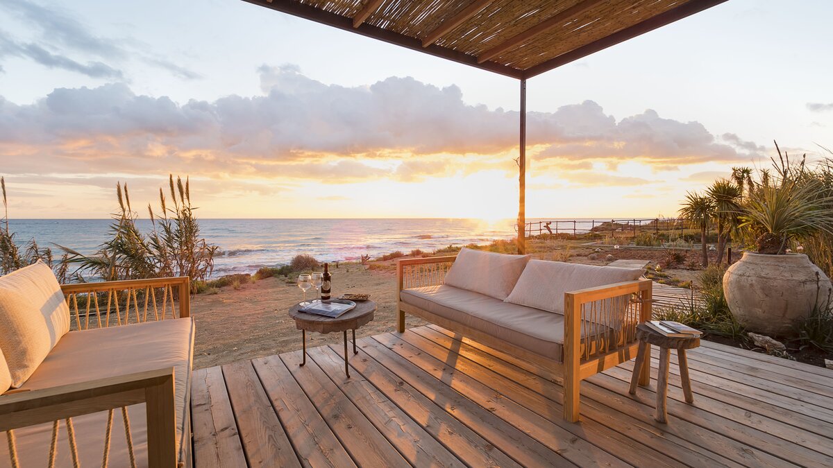 Golden Sands är ett litet hus på Sicilien som lever upp till sitt namn, beläget i en verkligt privilegierad plats med direkt tillgång till det underbara Medelhavet. Denna charmiga söderläge strandstuga, en idealisk tillflyktsort för två par som delar eller en liten familj, ståtar med panoramaterrasser inramade av en sandträdgård med naturliga växter och en unik stil av avsvalkningspool varifrån du kan njuta av den oändliga utsikten över havet. Vardagsrummet och matsalen i öppen planlösning, inklusive ett modernt pentry, omges av fönster från golv till tak och skjutdörrar med direkt tillgång till strandterrassen och matplatsen utomhus.