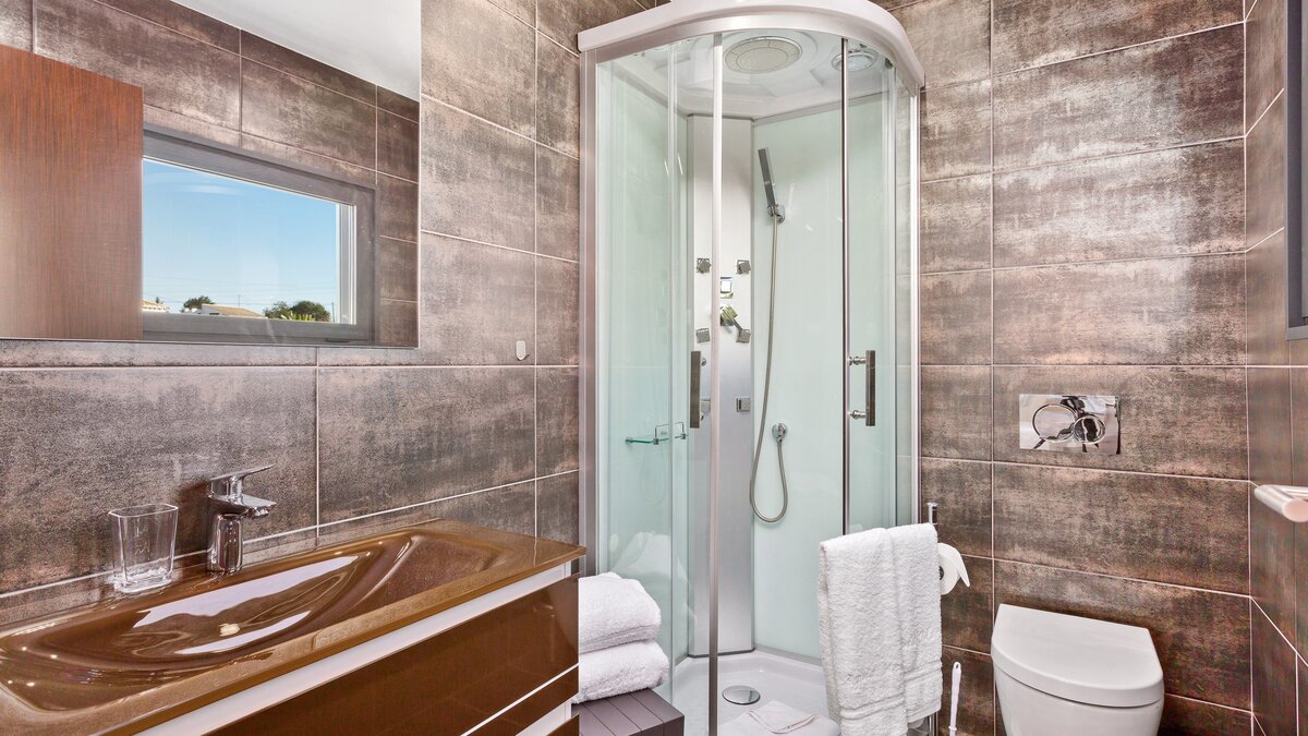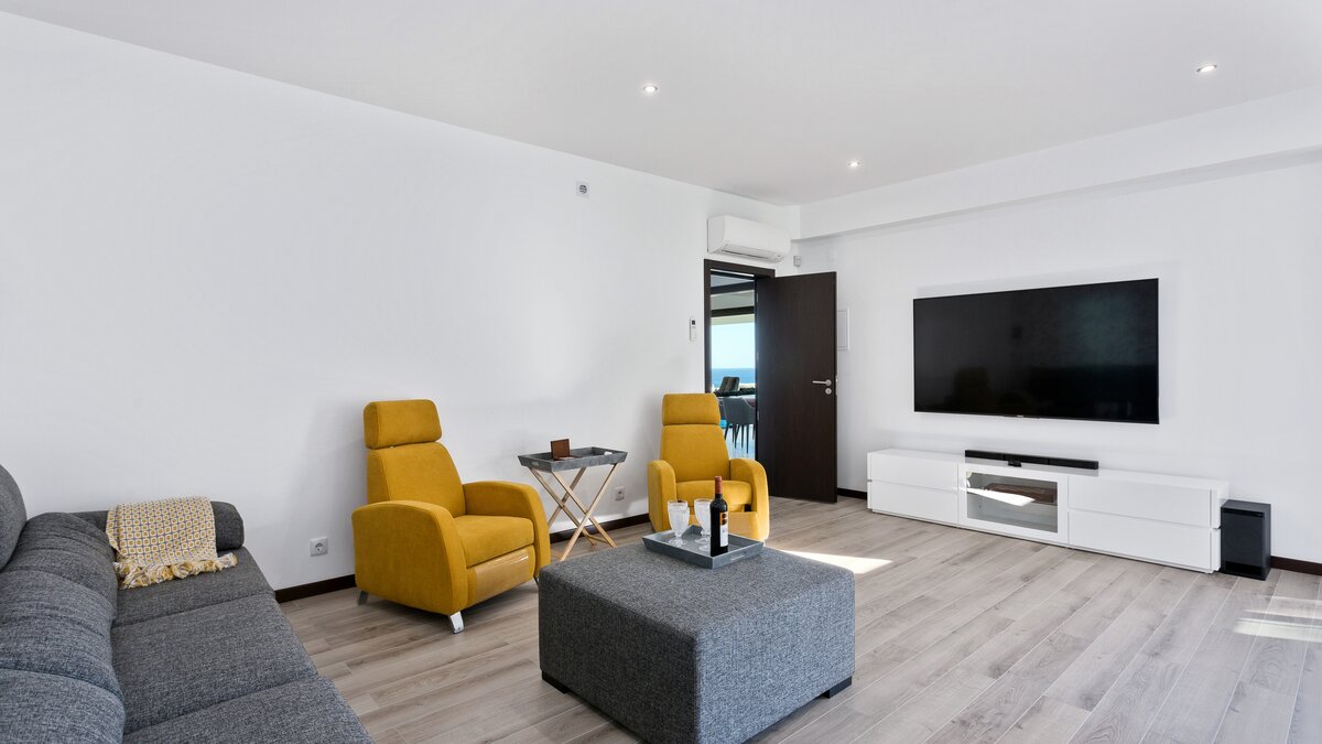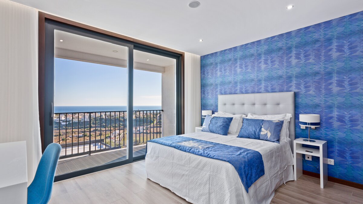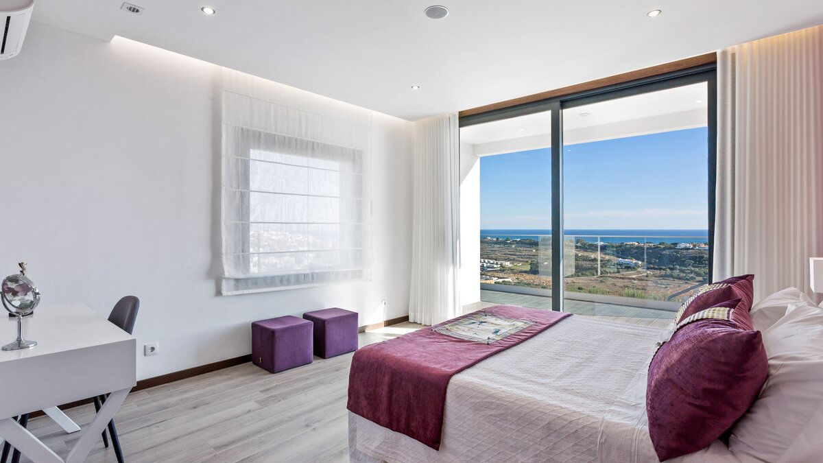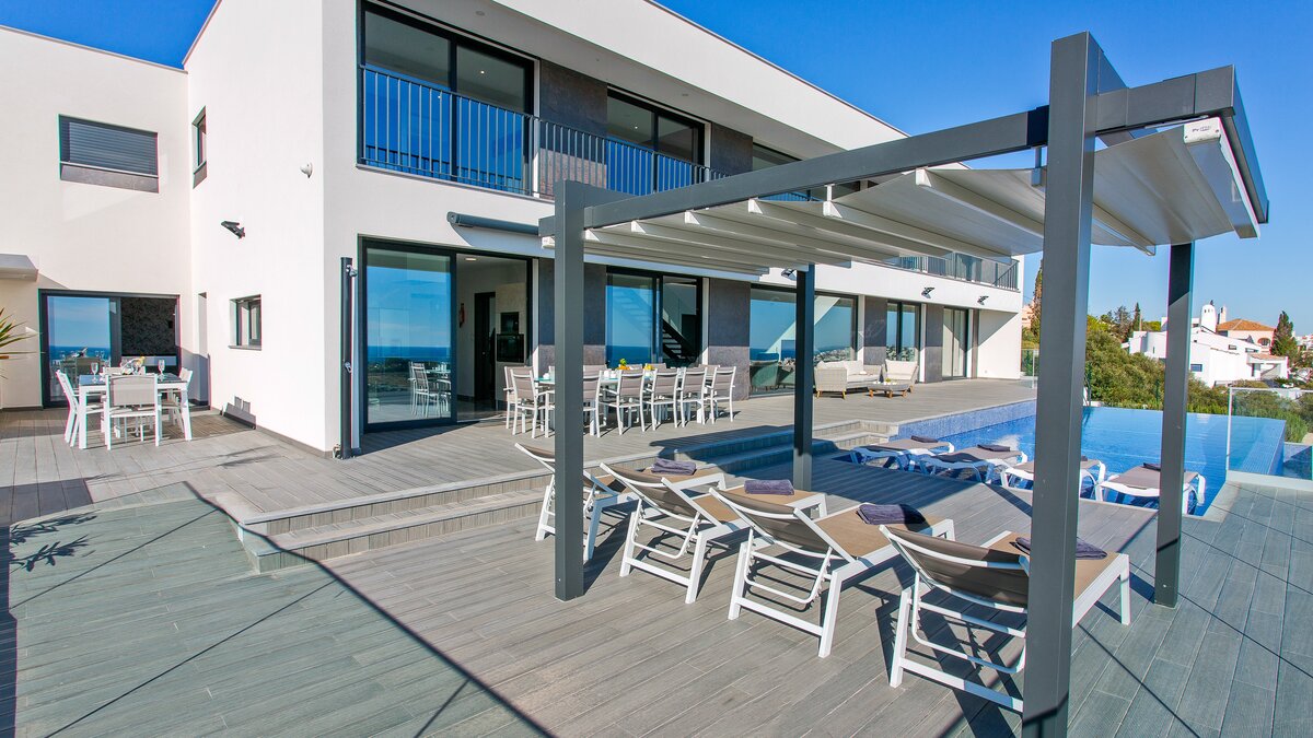 Harbour View is a newly built contemporary house located on the top of a hill overlooking Albufeira marina and out to sea. Spread over two floors, each of the bedrooms have en suite bathrooms or shower rooms, air conditioning, an individual sound system, WiFi and access to a terrace or balcony. On the lower level of the property you will find a large high ceiling living/dining room and state of the art kitchen with island looking out to sea. Also on this level you can find the media/games room. From both the kitchen and the sitting room you can access the focal point of the property, the wide ocean-facing terrace with stunning views.
