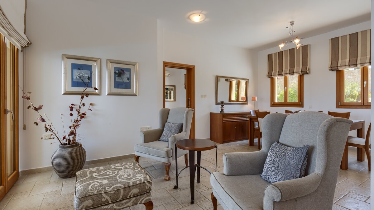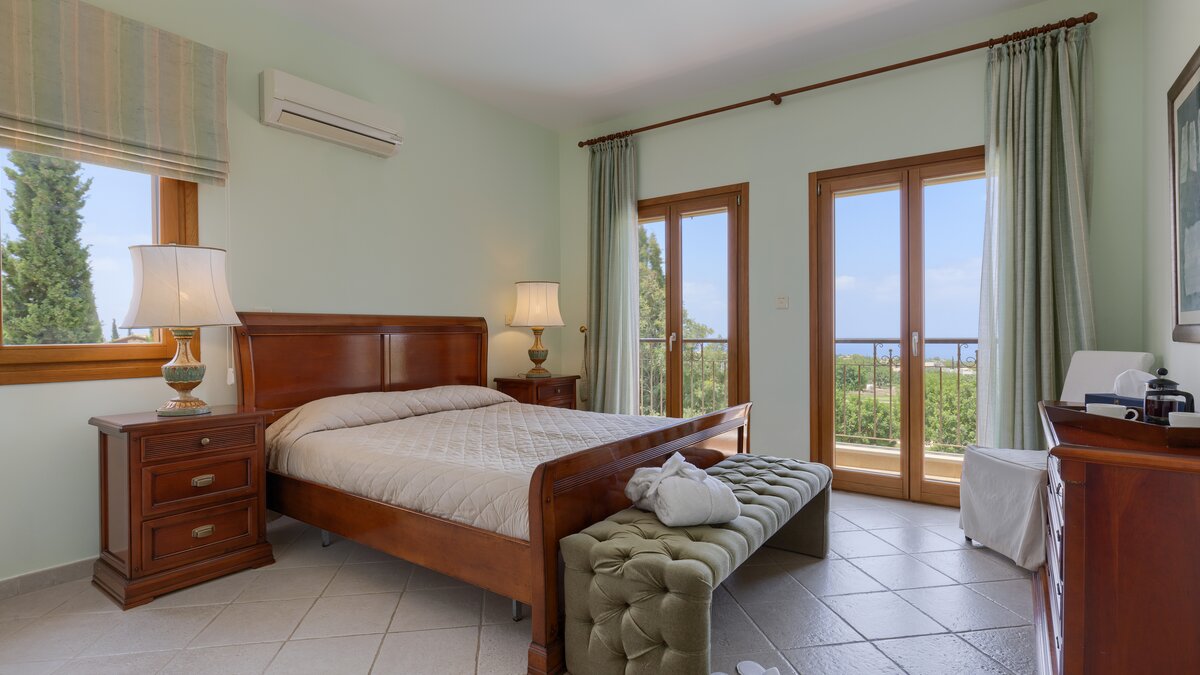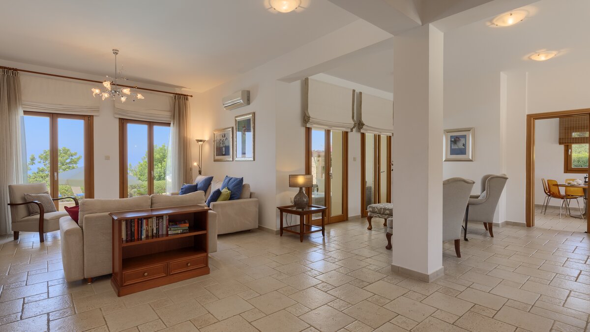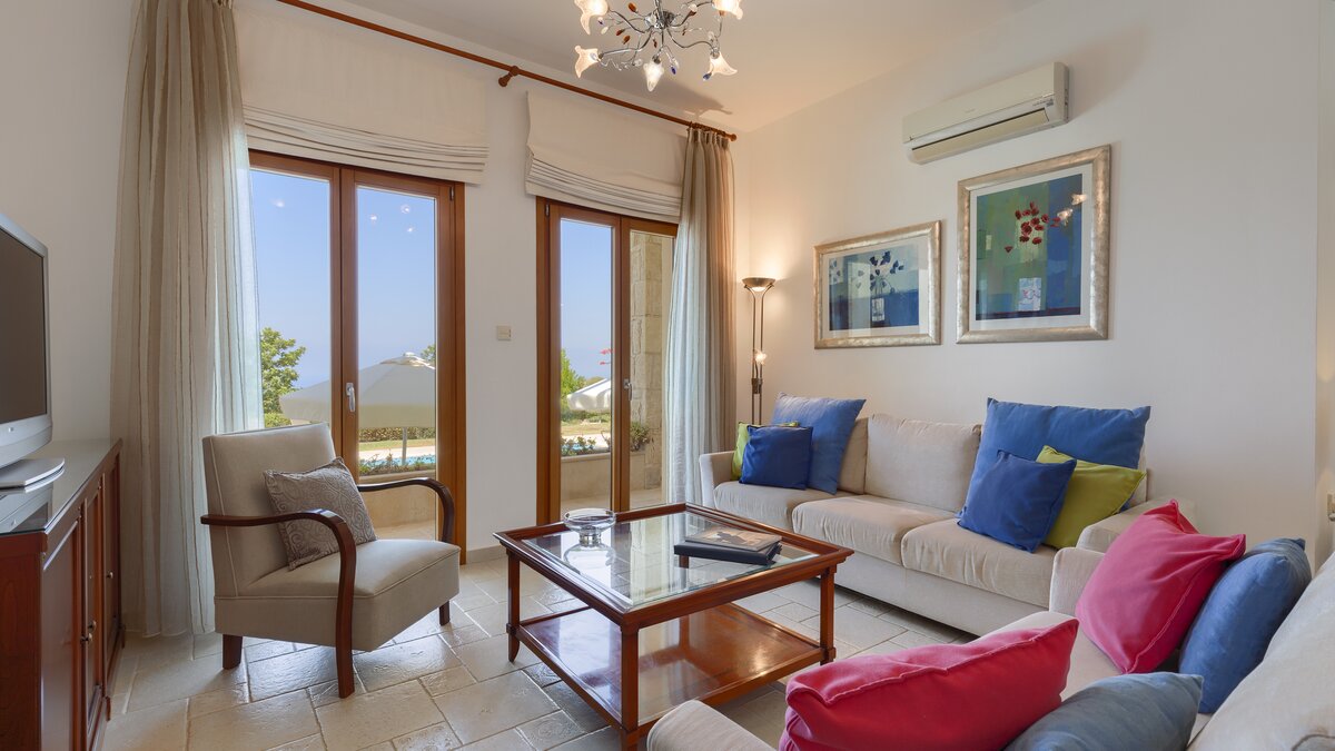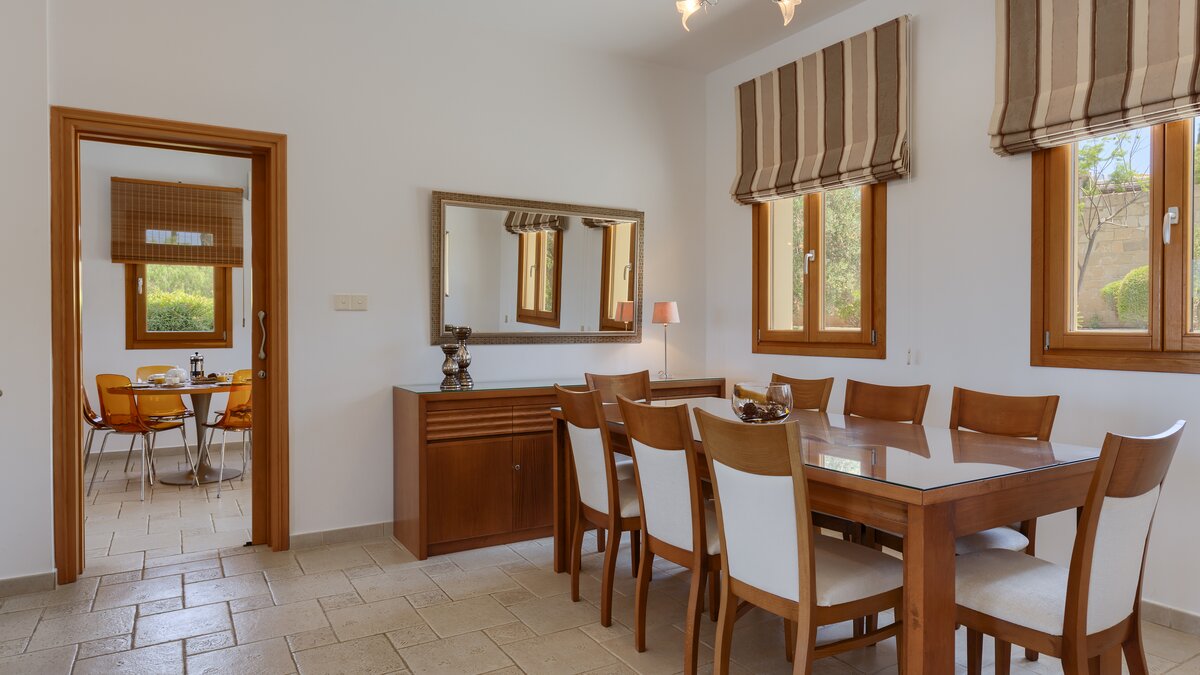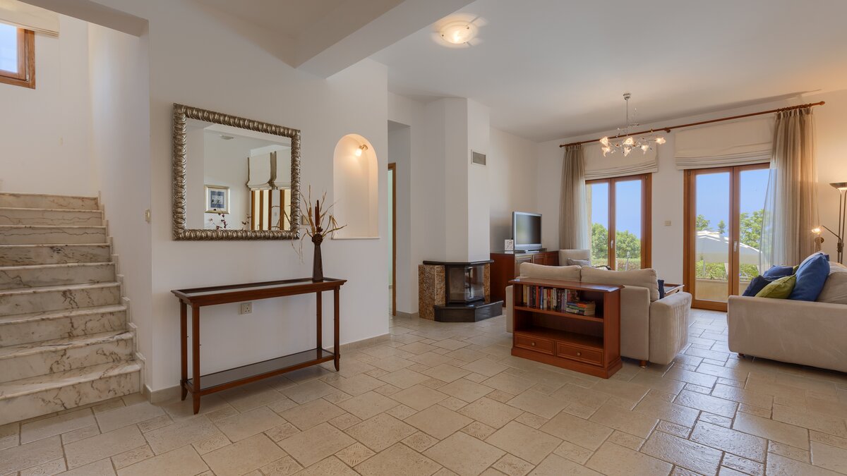 Located in one of the most desired locations in the Aphrodite Hills Resort, this property benefits from lovely views over the third and fourth fairway out towards the sea, as well as all the mod cons needed for a relaxing family holiday. There’s a large private swimming pool and a private tennis court, gym and sauna, as well as spa access, and kids club access for the little ones. This villa is perfect for outdoor living, with the pool featuring Roman steps and integrated Jacuzzi jets, and a large outdoor lounge and dining area with barbeque, perfect for family meals, parties or sunset drinks.