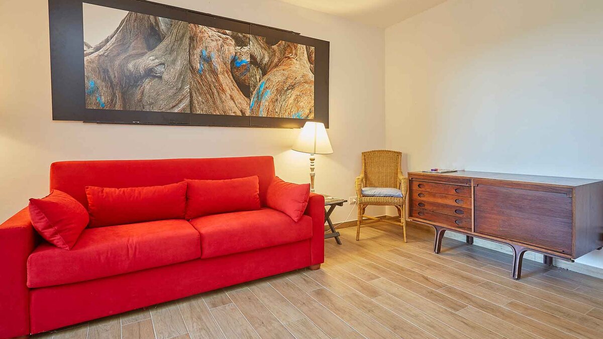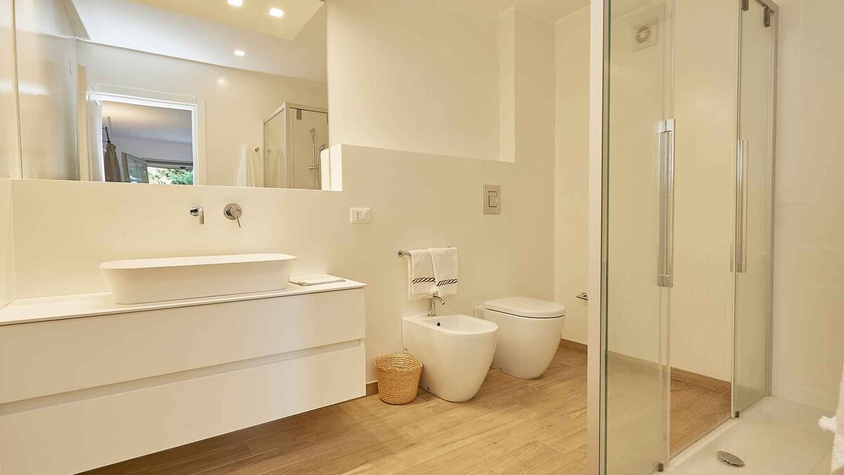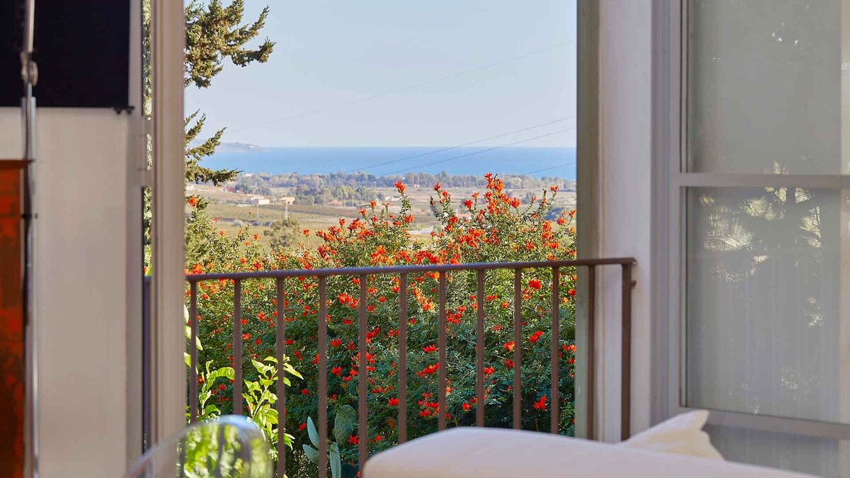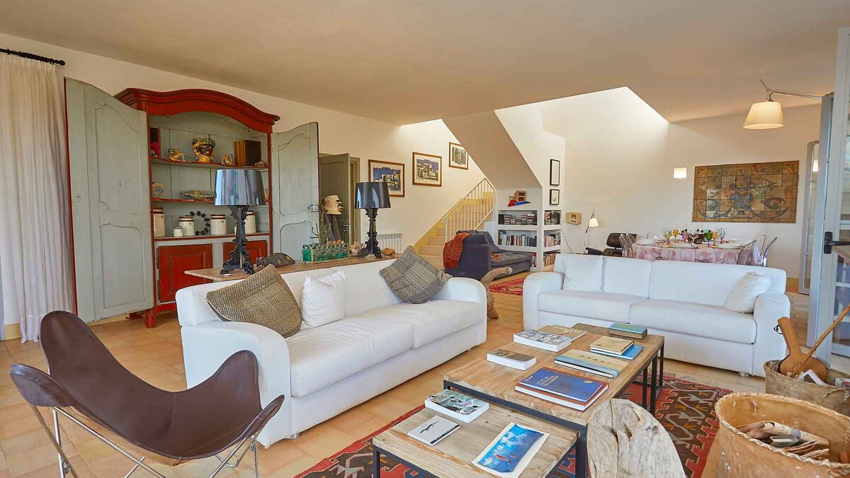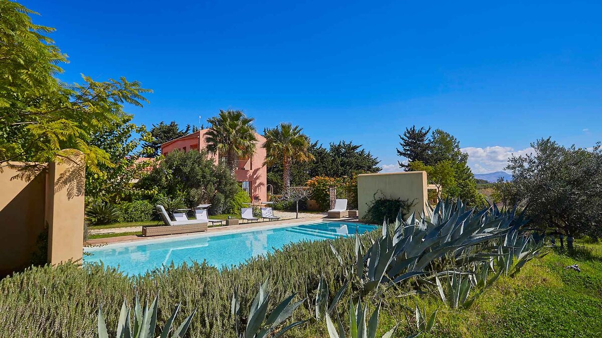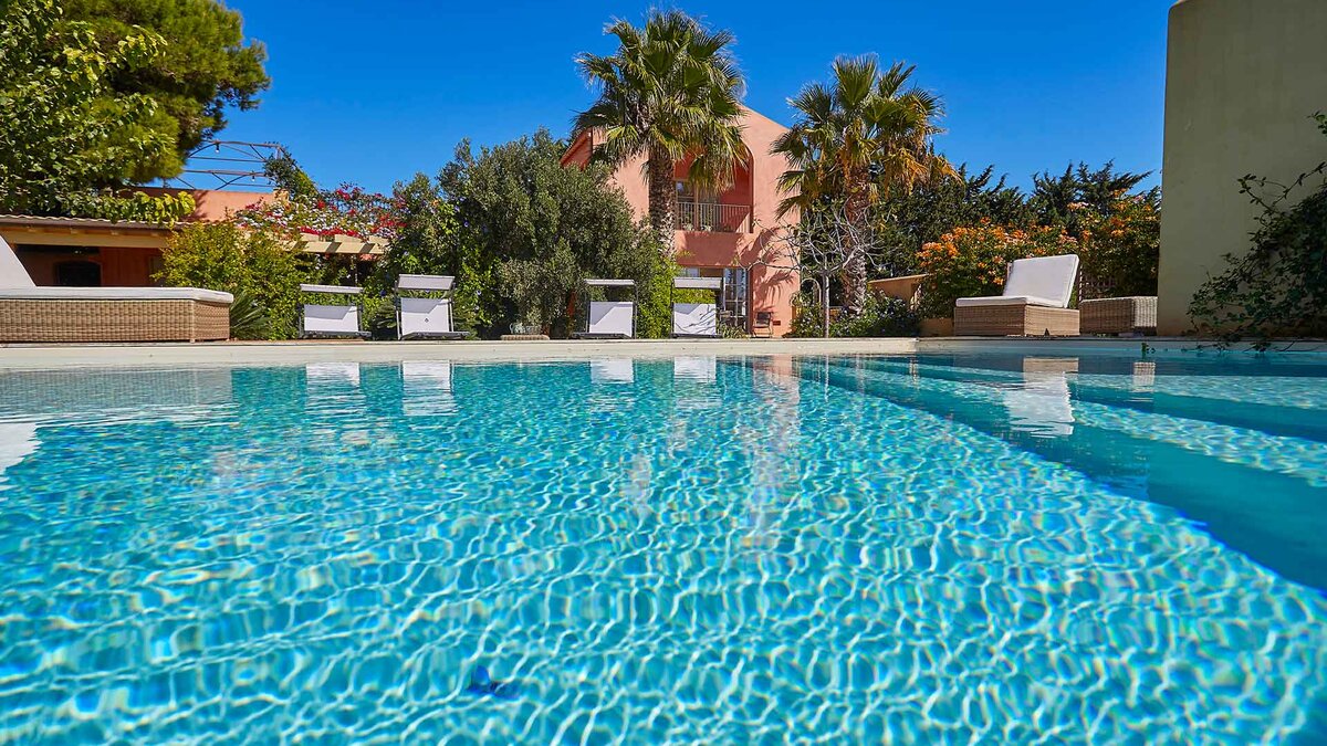 Sitting in a private position with views to vines and the sea, Il Gelso combines chic, roomy accommodation, an abundance of outdoor space, and close proximity to the glorious sandy beaches that this location is well known for. The entrance to the property takes you into the large open plan kitchen/dining area complete with stunning lava stone work surfaces . Off the kitchen there is a large modern shower room which leads on into a light filled double bedroom with a charming feature window onto a children’s play area. The luminous open plan lounge and dining area has three French doors with balconies the main one providing access to the delightful gardens and pool area and have incredible views of the countryside and the ocean. The interior walls of the villa are adorned with wonderful photographs taken by the famous owner photographer. From the sitting room there is a feature staircase up to a small study mezzanine area which leads out onto a terrace, suitable for hosting a summers evening party.
