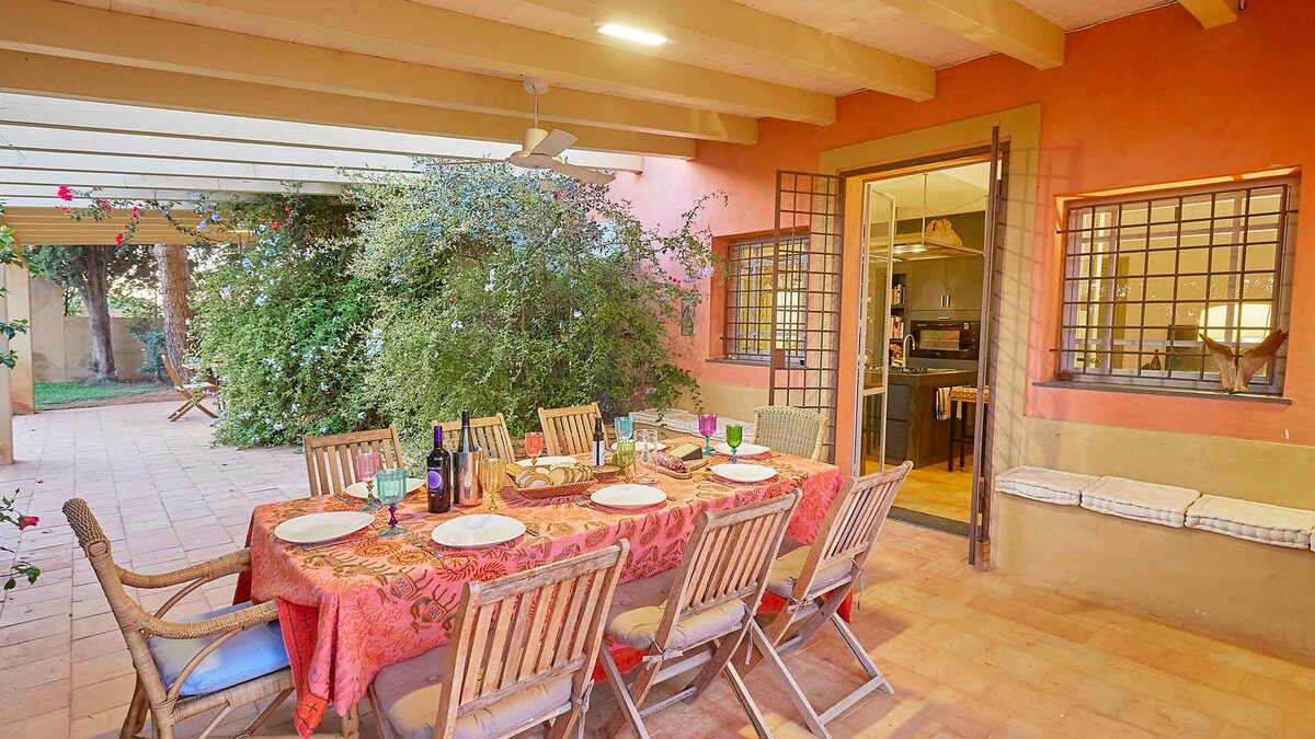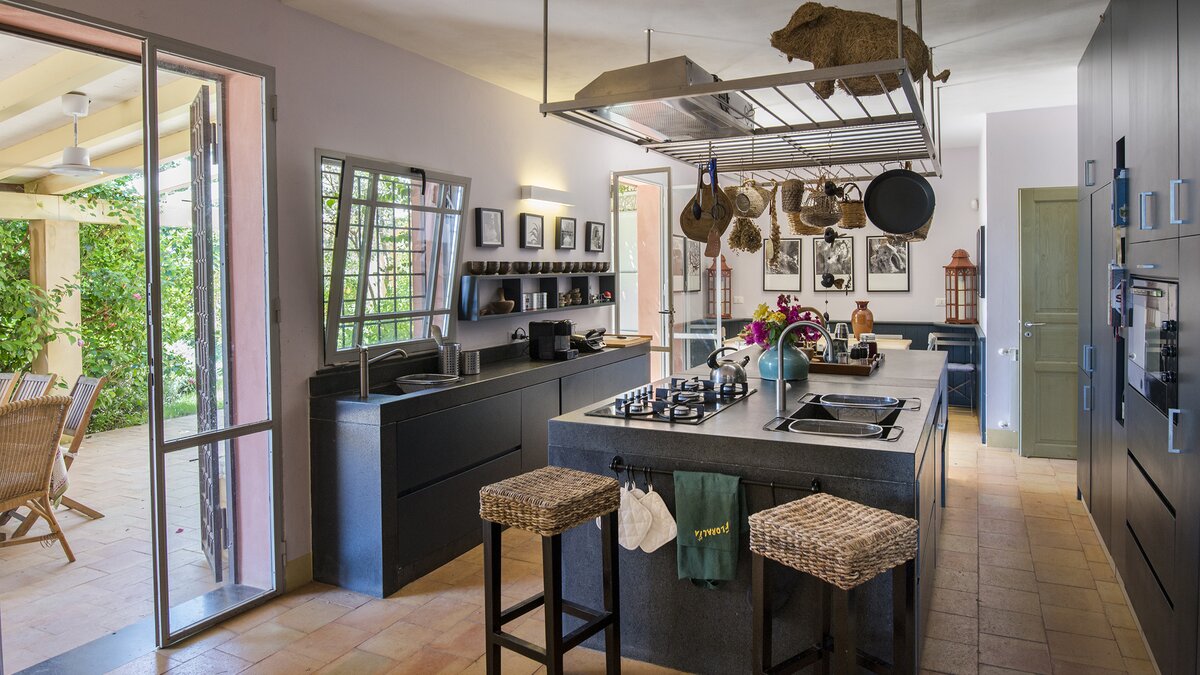 Sitting room with dining area opening to the gardens and poolKitchen with breakfast area opening to dining terraceDouble bedroomBathroom with walk in showerBedroom with two sets of bunk beds opening to children's play areaDouble bedroom with shower room en suiteCloakroomFIRST FLOOR