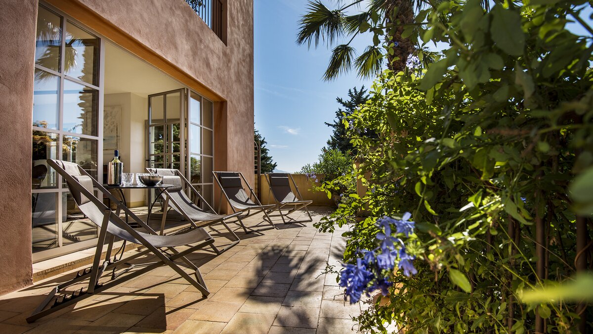 Staircase up to small study/mezzanine area opening to large terrace with seatingMaster double bedroom with shower room en suite opening to small terraceLOWER GROUND FLOOR - GUEST ANNEXE