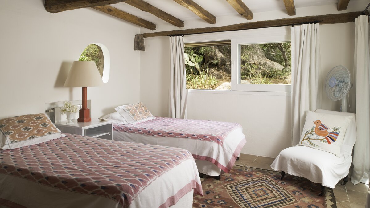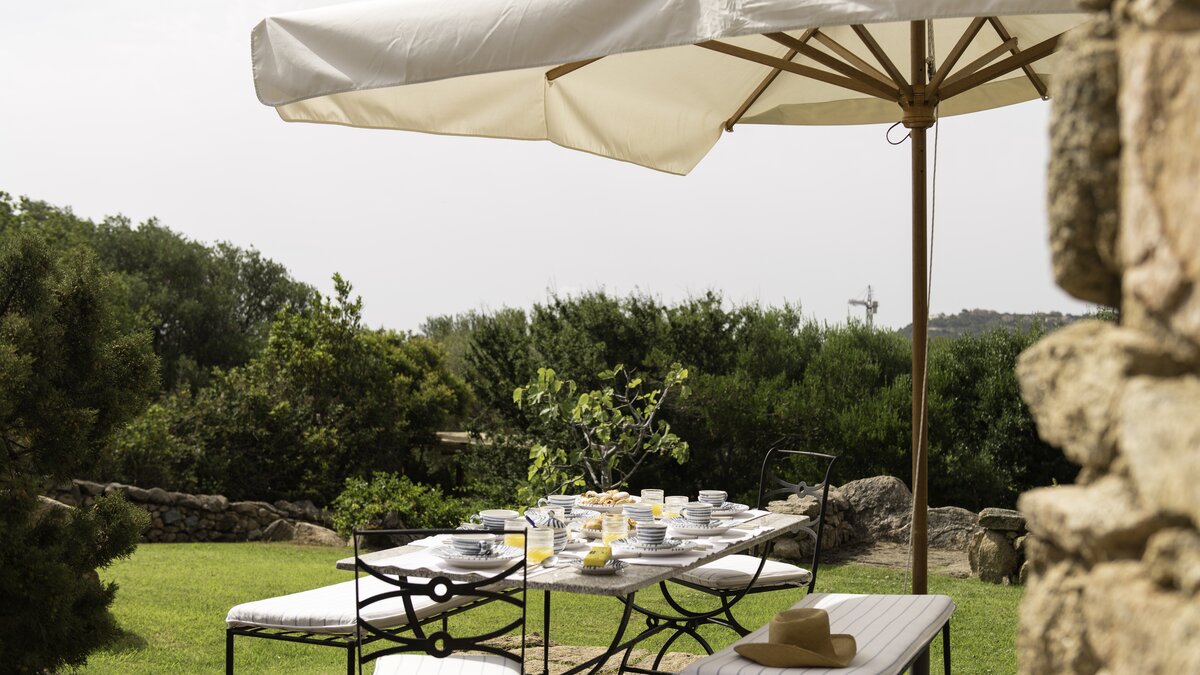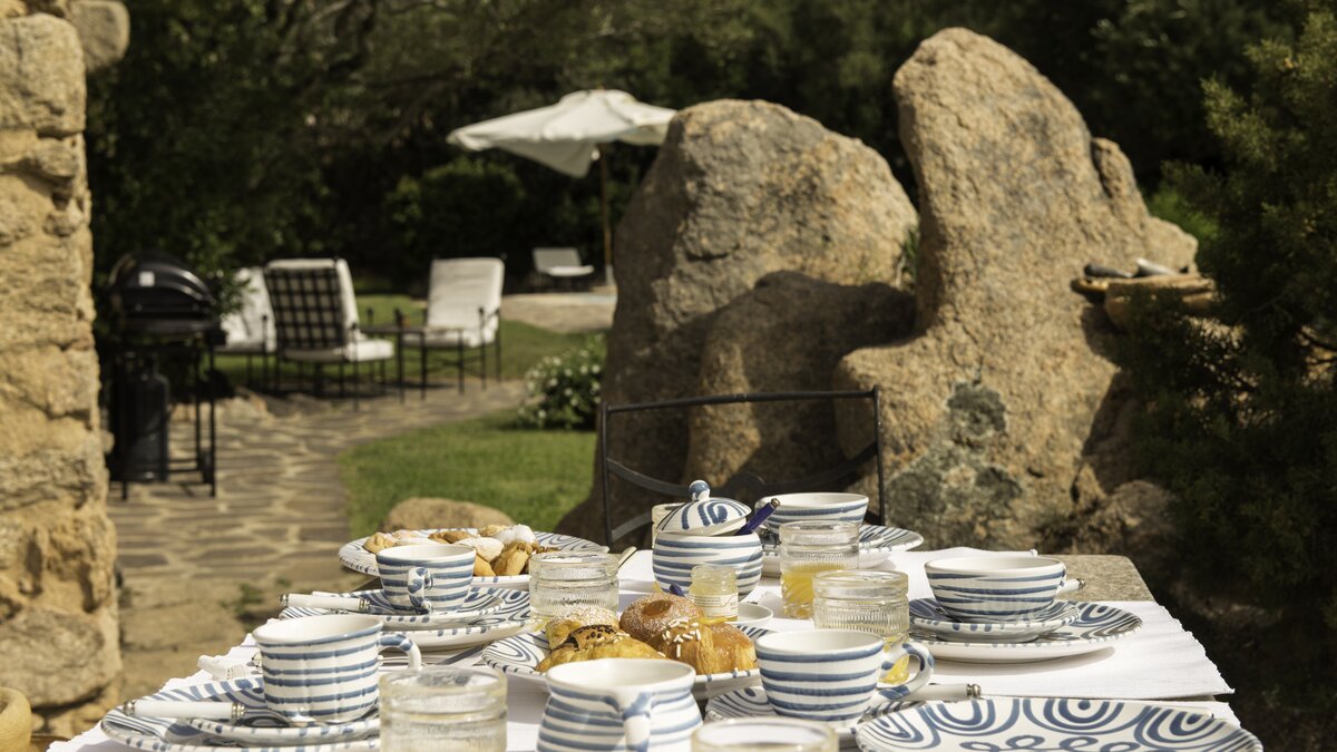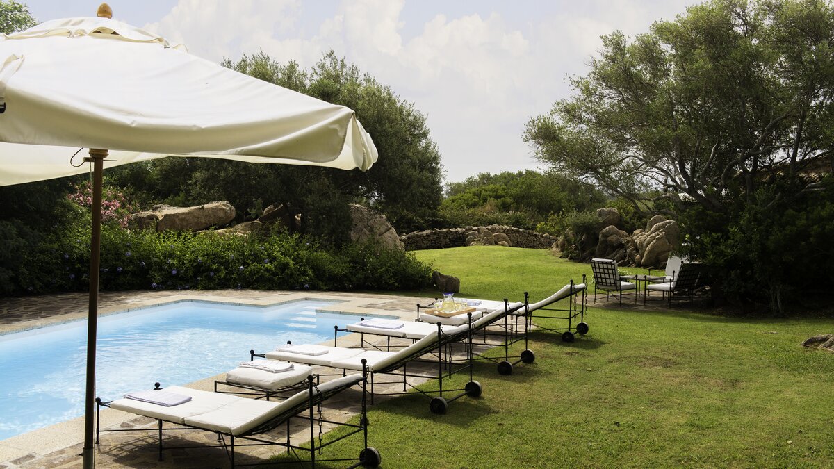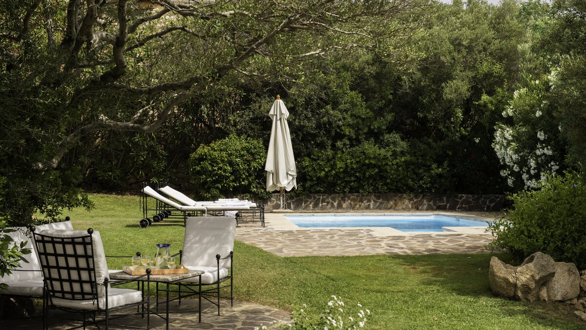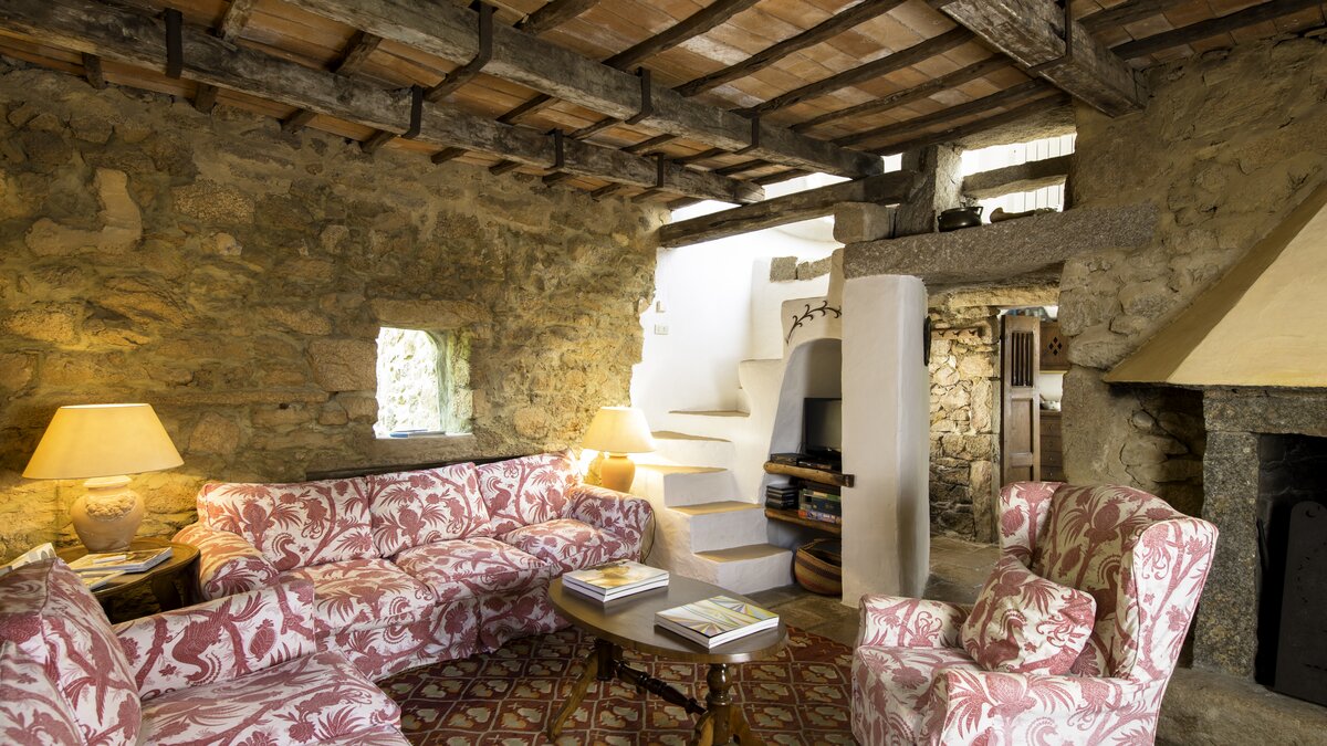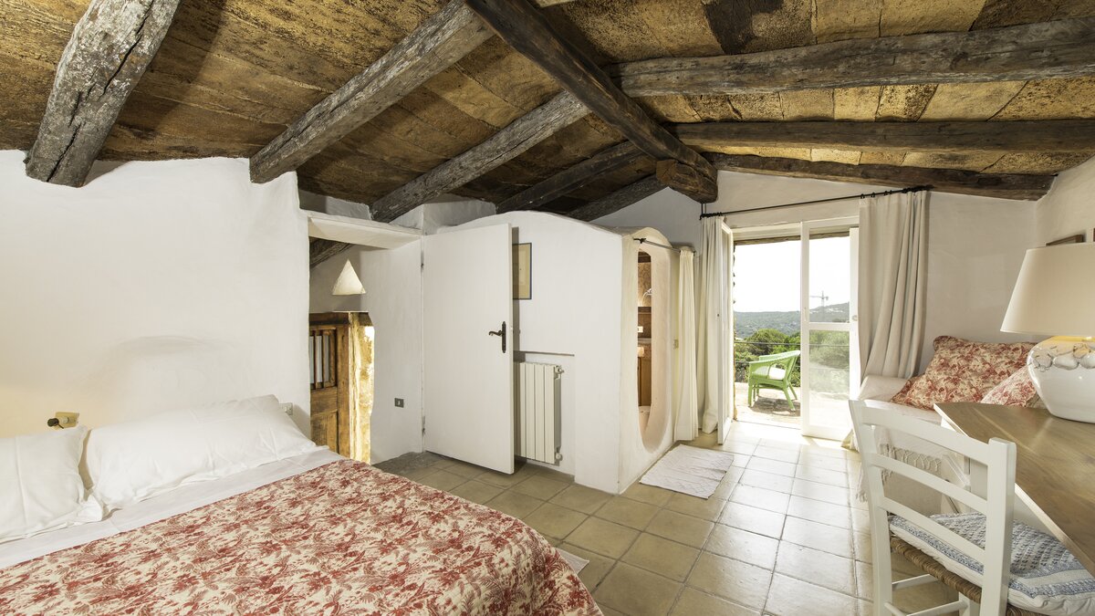 Beautifully designed by renowned architect Savin Couelle, Il Palazzeddu celebrates its humble history with ancient beams, exposed stone walls, steep stairways inside and out, and doors and windows in a dozen unexpected places. Unpretentious and warmly welcoming, none of its character has been lost in the restoration. The villa is very well-equipped with ample and pretty china glassware and linens and is furnished in very attractive comfortable country style. The spacious Master bedroom and spacious twin bedroom, each with their own bathroom or shower room, are located at opposite ends of the ground floor and share the ground floor with a kitchen with round dining table and pretty sitting room. The third bedroom occupies the upper level, with views of the Med from its big open terrace. Very pretty cottage gardens with flower beds encircle the villa, with lawns around a lovely little pool, and different spots in shade or sun for a quiet read. But it is surprisingly easy to up the tempo from this rural simplicity. A selection of restaurants and beaches are within very easy reach of the villa and Abbiadori with amenities is also within very easy access. Within a short drive of the airport, this is a good option for a family holiday.