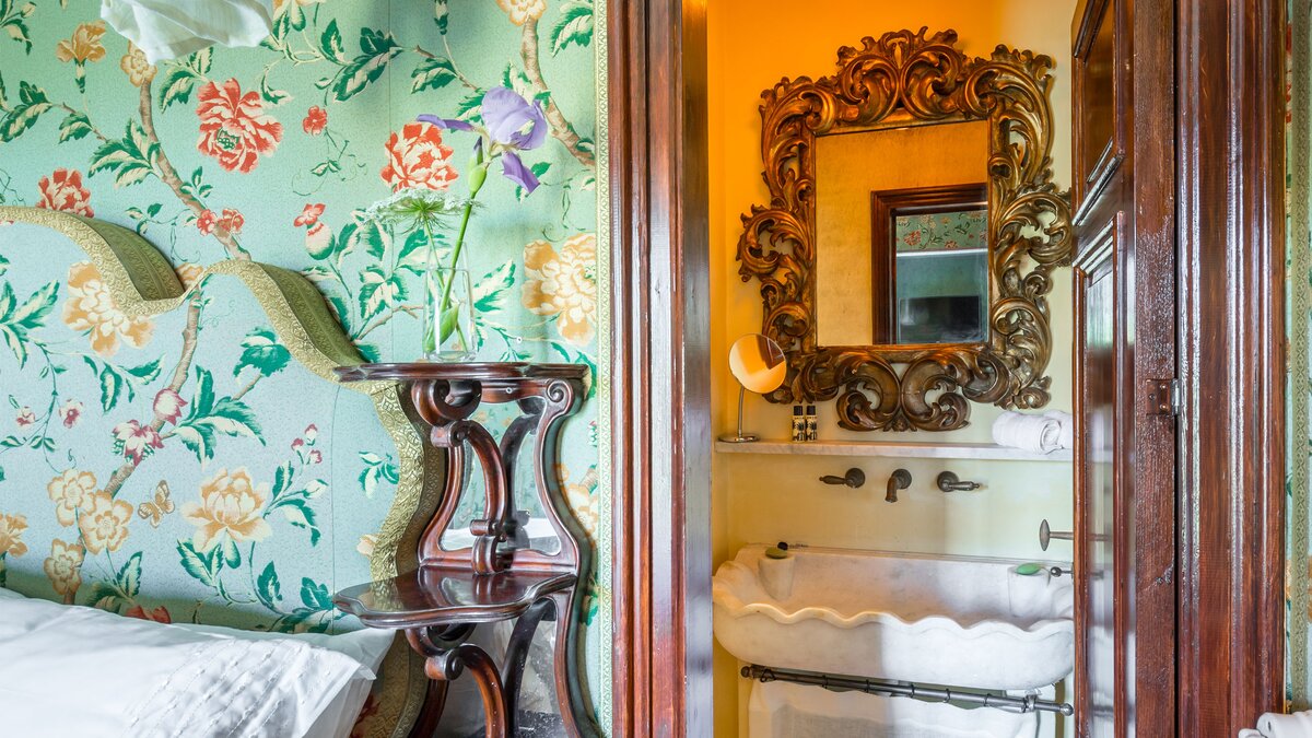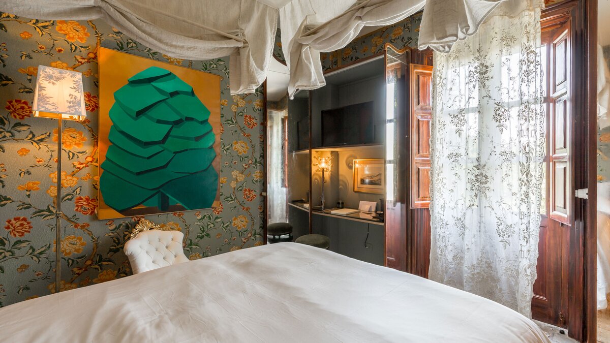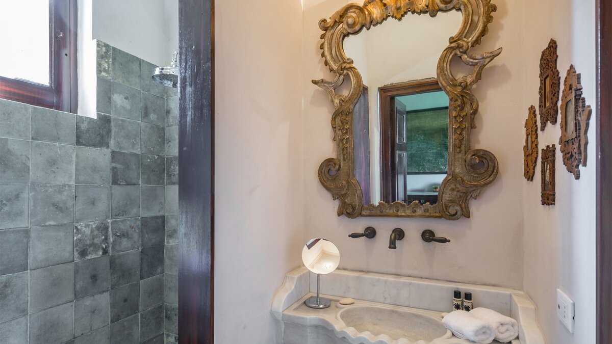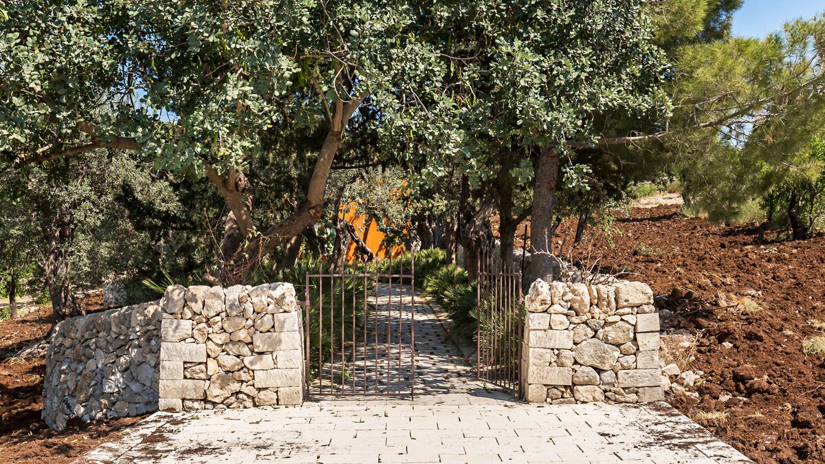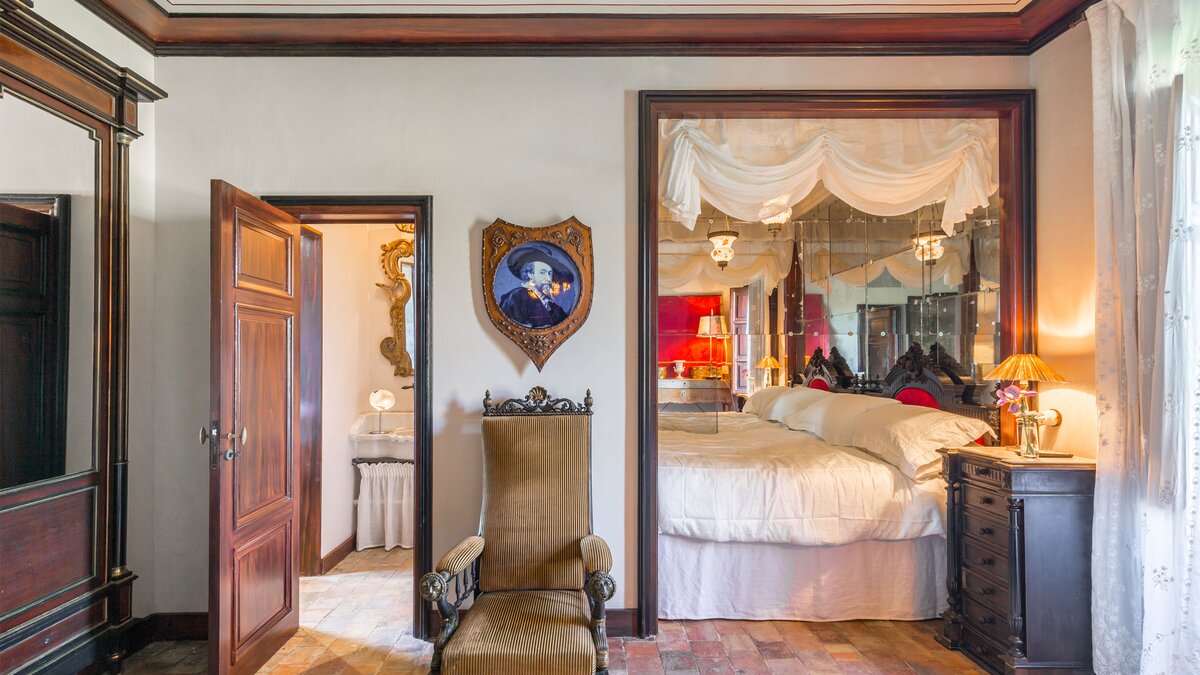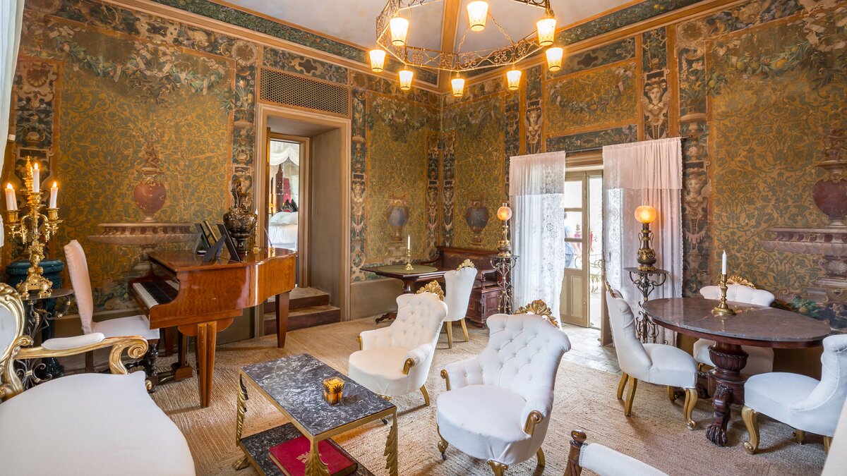 Perfectly positioned in Southern Sicily on an private estate, this private villa has been decorated by a noted French interior designer to offer a property with highly distinctive and remarkable interiors. The sitting room and two bedrooms are furnished with unique antique and more modern pieces, lighting, mirrors, distinctive wall papers and finishes, objet d’art and textiles, ideal for those who appreciate art, interiors and design. Behind the bookcase in the sitting room there is a compact and modern kitchenette.