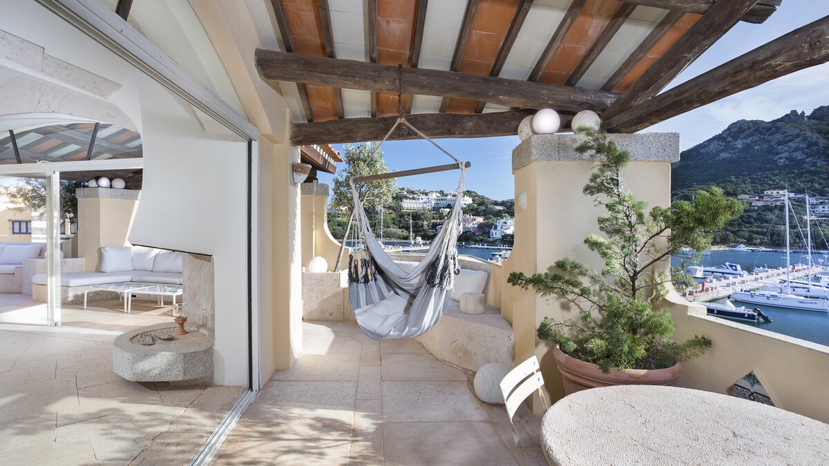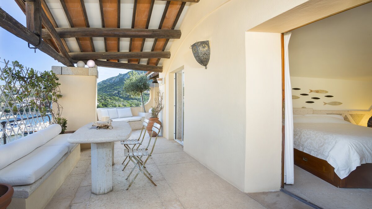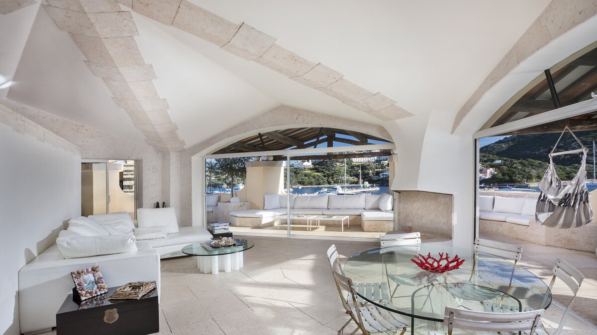 With stunning views of the exclusive Porto Cervo, main centre of Costa Smeralda, this luxury villa is the perfect setting for two couples sharing or a small family of four. La Marina Penthouse is made of the finest stone resembling a traditional house. The villa is designed in crisp white décor with minimalistic flair, with the comfort of contemporary facilities. The inviting living and dining room opens up, through floor-to-ceiling glass doors, to the covered terrace surrounding the villa, with numerous lounge areas to relax and enjoy the spectacular views of the wharf and beyond. A well-equipped kitchen and two en suite double bedrooms complete the residence. Both bedrooms open up to the spacious terrace. Porto Cervo, with glamorous shops, restaurants, and some of the most beautiful beaches in the world, is a short stroll from the property, while the lovely town of San Pantaleo is a 10-minute drive away.