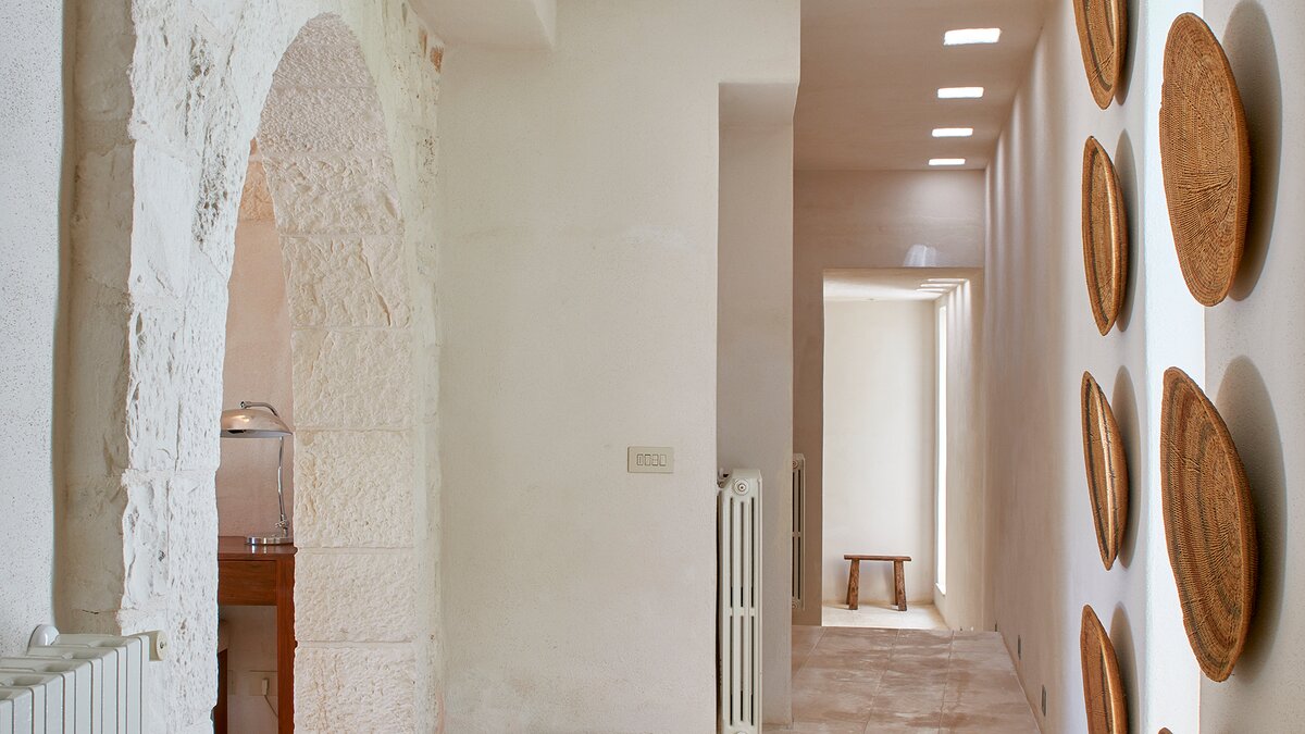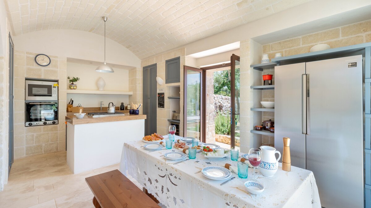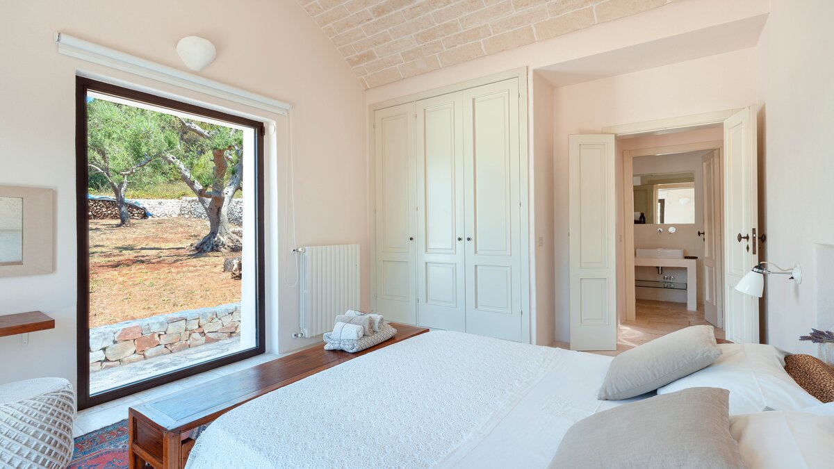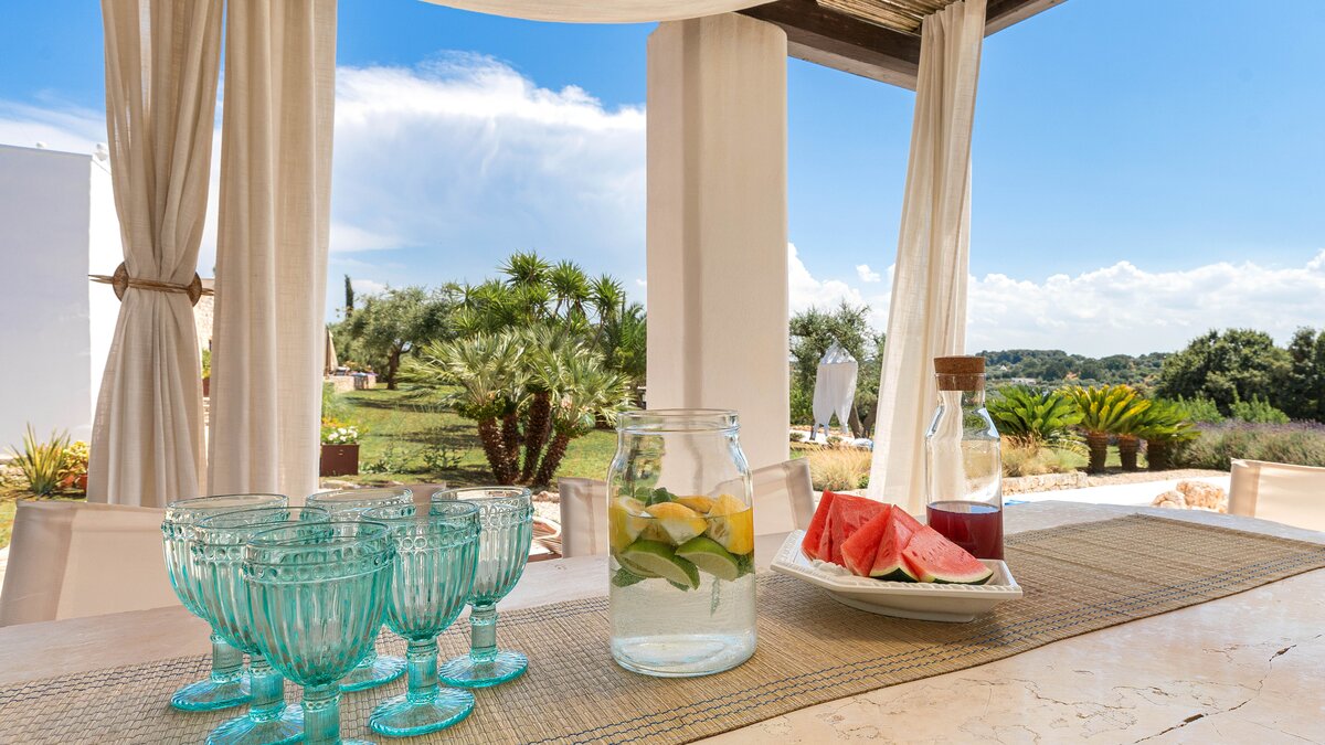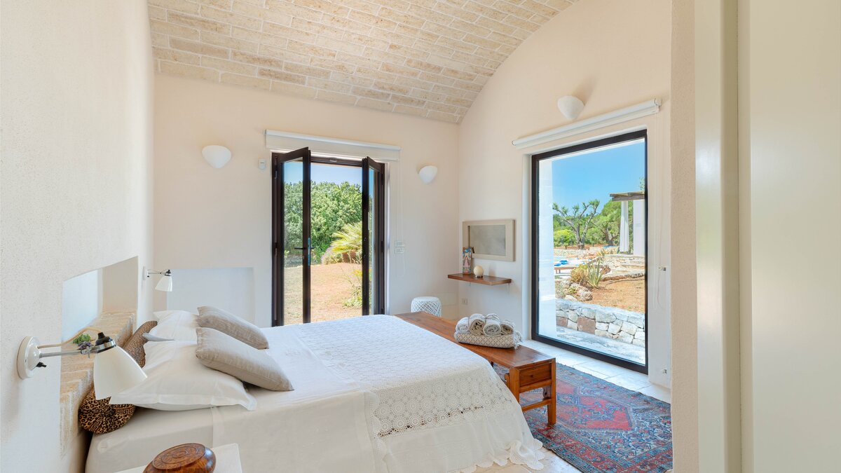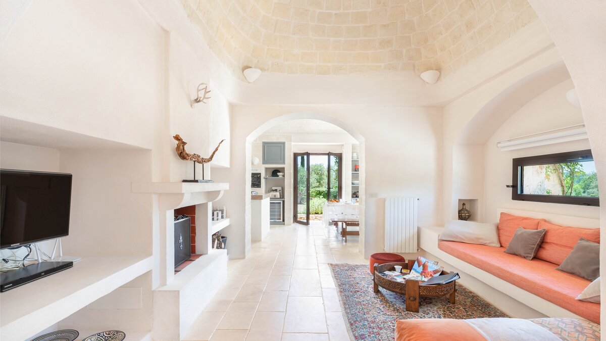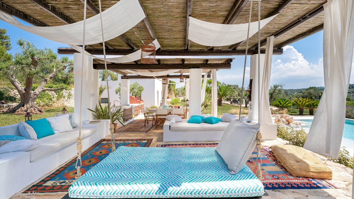 Set in a couple of acres of olive groves, with exceptional outdoor areas and views down the valley to spectacular sunsets, this luxury villa in Puglia brings modern amenities and Moorish touches to the traditional trulli.