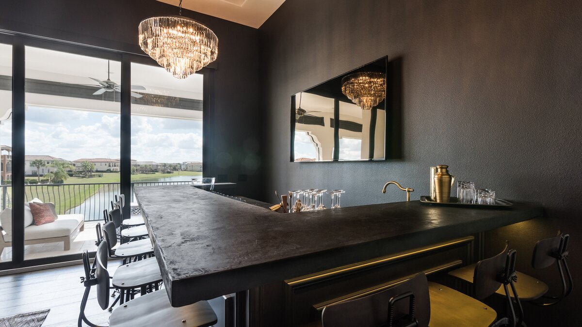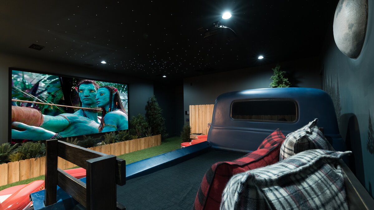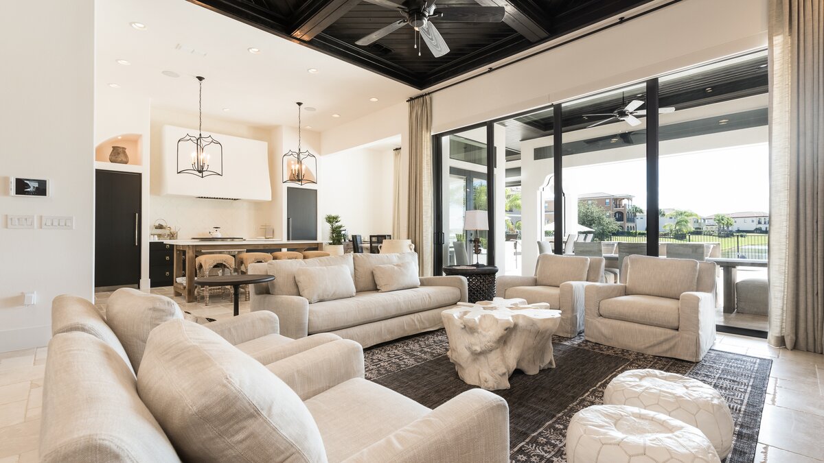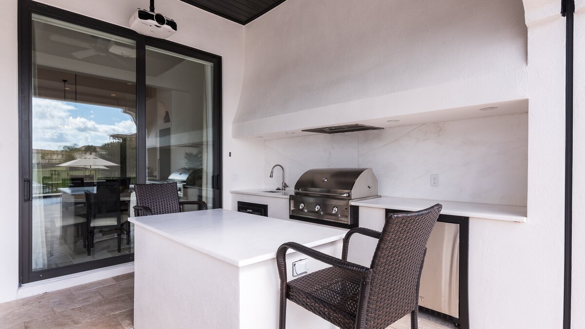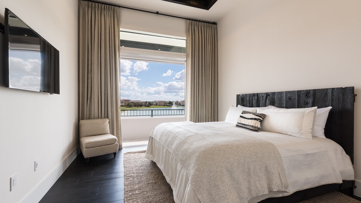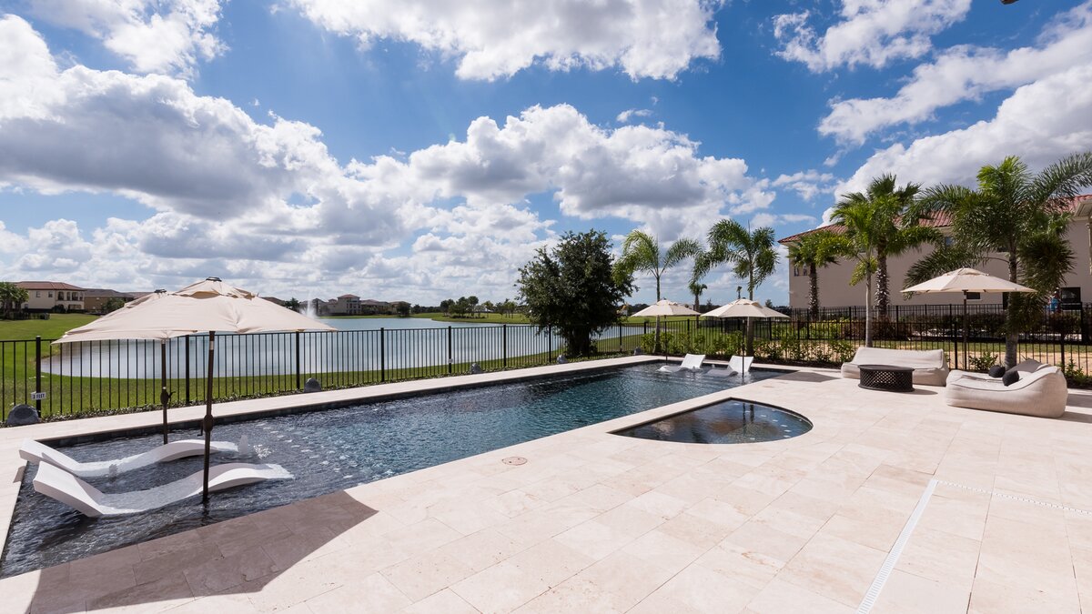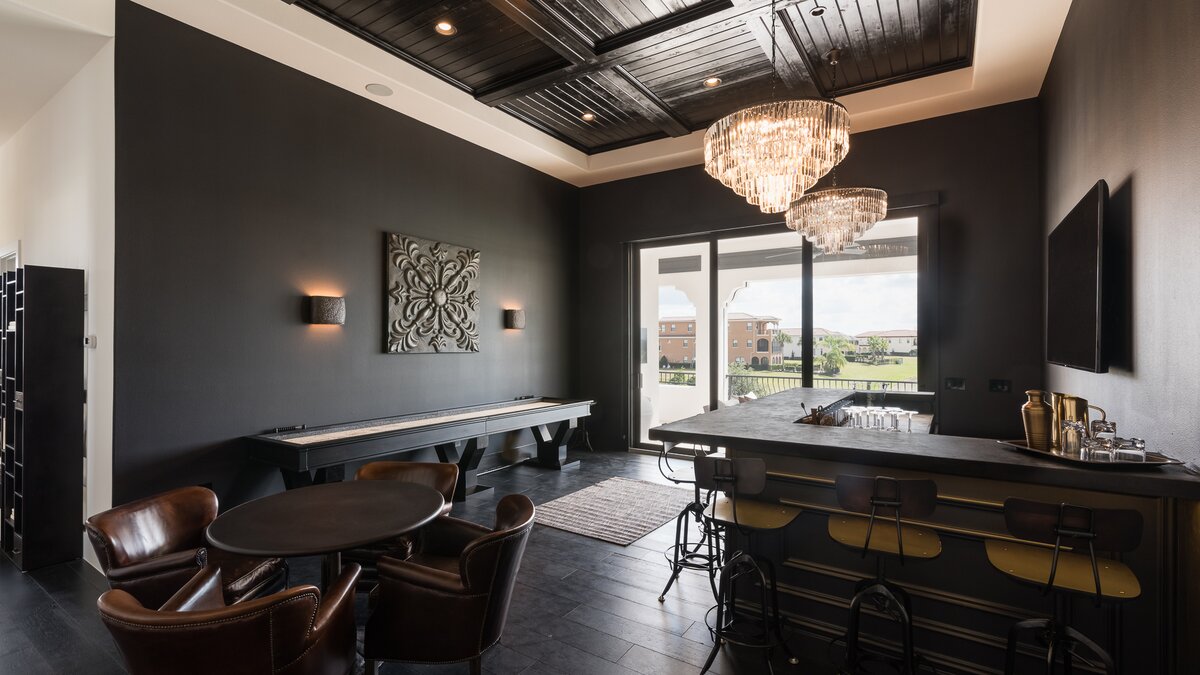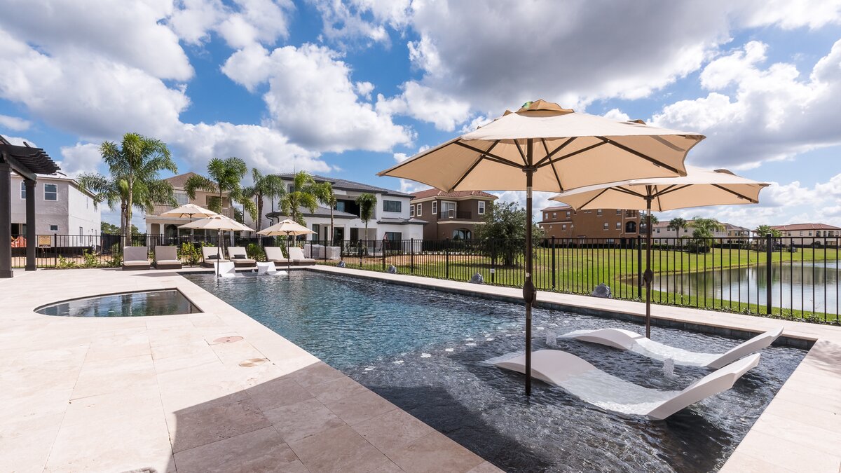 This whitewashed home in Orlando’s Reunion Resort is very sleek, chic and creatively modern. Its huge white exterior is instantly eye-catching, and the expansive interior – with 7 bedrooms and 7 bathrooms – sleeps up to 14 guests in stylish luxury. There’s a large open-plan living area that takes over the downstairs; plenty of sofa seating makes the most of the huge TV centrepiece, and there’s a smart kitchen and indoor dining area for home-cooked meals. Spacious en-suite bedrooms include themed kids bunk rooms and generous king size beds. Each one is decorated in a different style to the last, with bespoke furniture pieces and gorgeous bathrooms that can include a large shower or indulgent free-standing tub. Some bedrooms also have access to the spacious downstairs terrace or balcony upstairs. Lake View is a villa with plenty of imagination, and includes a video arcade games room and cinema room for the youngsters – this ‘drive in’ home theatre comes complete with fun car seating and a huge projector screen. Grown-ups should head to the upstairs lounge bar, which has access to an impressive balcony overlooking the lake. Outside, you’ll find a large private pool with a spillover tub and in-pool loungers, and there’s also an outdoor kitchen with BBQ and an al fresco dining area for those warm summer nights. There are plenty of sun spots and poolside seating on the terrace, or the covered lanai includes a cosy fireplace and relaxing lounge seating with an outdoor TV.
