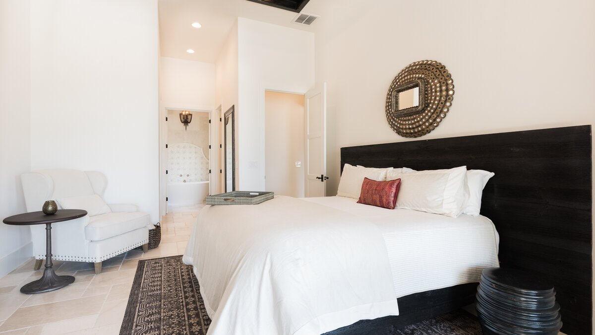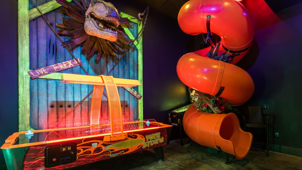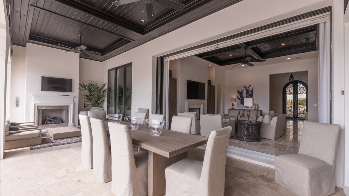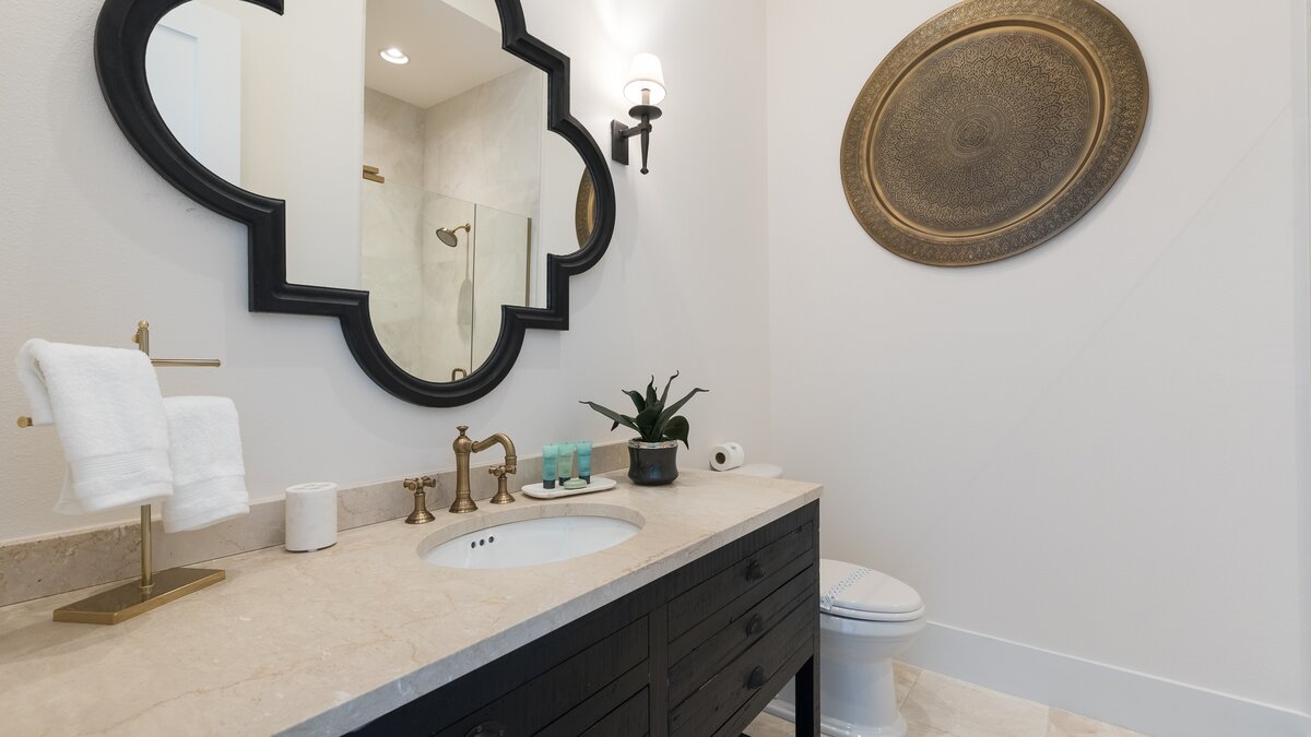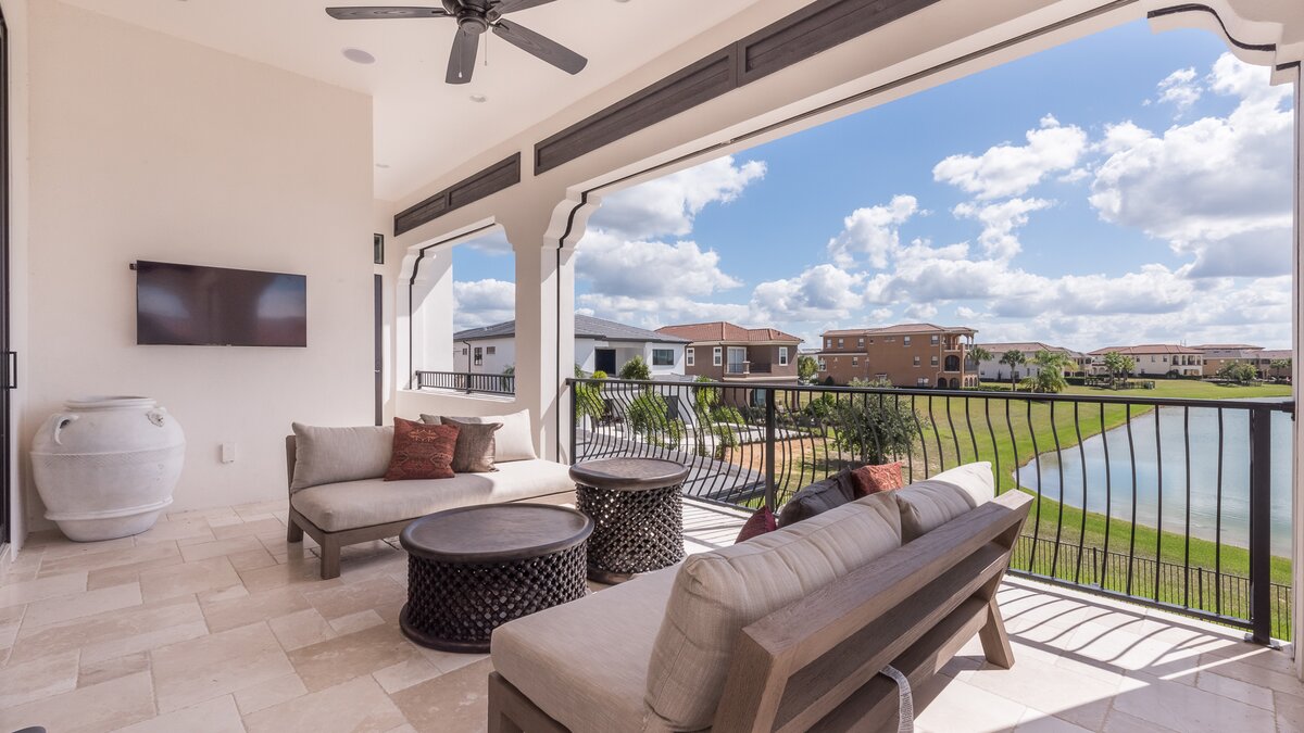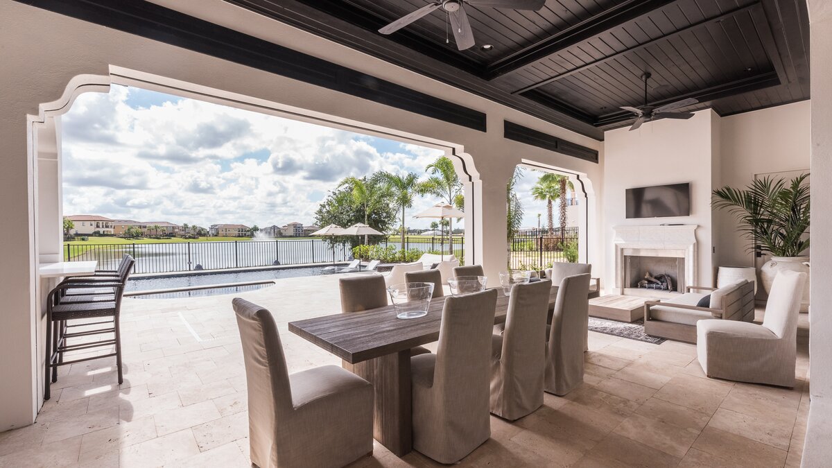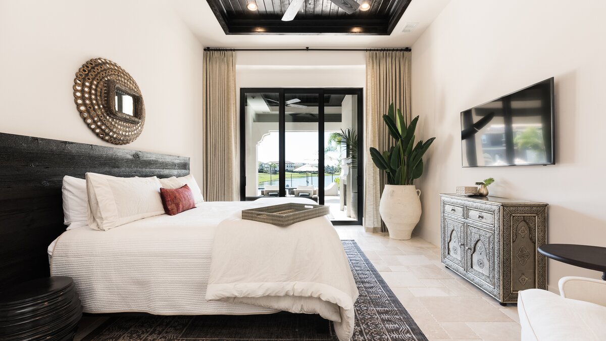 This whitewashed home in Orlando’s Reunion Resort is very sleek, chic and creatively modern. Its huge white exterior is instantly eye-catching, and the expansive interior – with 7 bedrooms and 7 bathrooms – sleeps up to 14 guests in stylish luxury. There’s a large open-plan living area that takes over the downstairs; plenty of sofa seating makes the most of the huge TV centrepiece, and there’s a smart kitchen and indoor dining area for home-cooked meals. Spacious en-suite bedrooms include themed kids bunk rooms and generous king size beds. Each one is decorated in a different style to the last, with bespoke furniture pieces and gorgeous bathrooms that can include a large shower or indulgent free-standing tub. Some bedrooms also have access to the spacious downstairs terrace or balcony upstairs. Lake View is a villa with plenty of imagination, and includes a video arcade games room and cinema room for the youngsters – this ‘drive in’ home theatre comes complete with fun car seating and a huge projector screen. Grown-ups should head to the upstairs lounge bar, which has access to an impressive balcony overlooking the lake. Outside, you’ll find a large private pool with a spillover tub and in-pool loungers, and there’s also an outdoor kitchen with BBQ and an al fresco dining area for those warm summer nights. There are plenty of sun spots and poolside seating on the terrace, or the covered lanai includes a cosy fireplace and relaxing lounge seating with an outdoor TV.