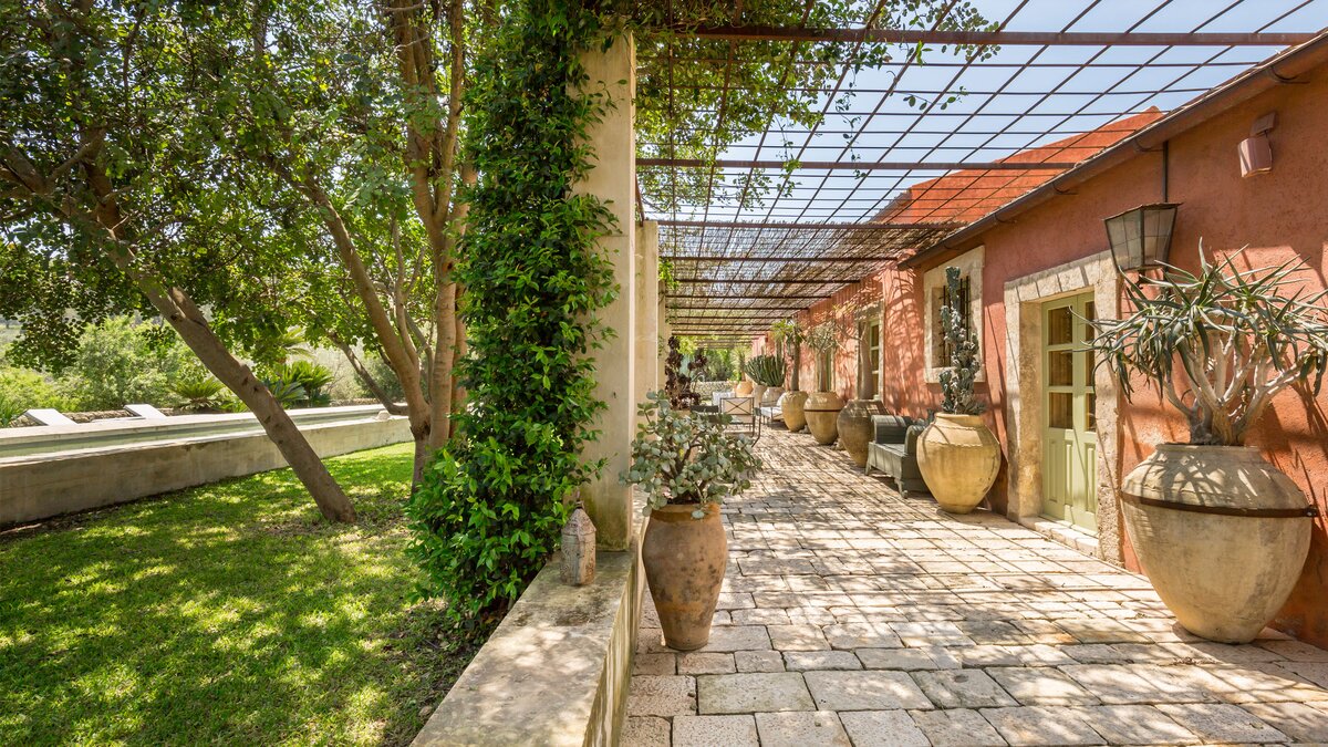 Perfectly positioned in Southern Sicily on an private estate, this private villa has been decorated by a noted French interior designer to offer a property with highly unusual and eclectic interiors furnished with unique antique and more modern pieces, lighting, mirrors, objet d’art and textiles, ideal for those who appreciate art, interiors and design. The spacious and high ceilinged, richly furnished sitting room has direct access to the exteriors of the property and connects to a well-equipped kitchen with further seating and shaded dining under the olive trees at the rear of the property. All four double bedrooms have shower rooms en suite.