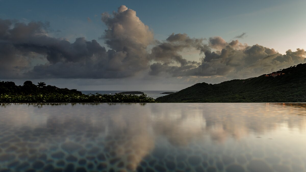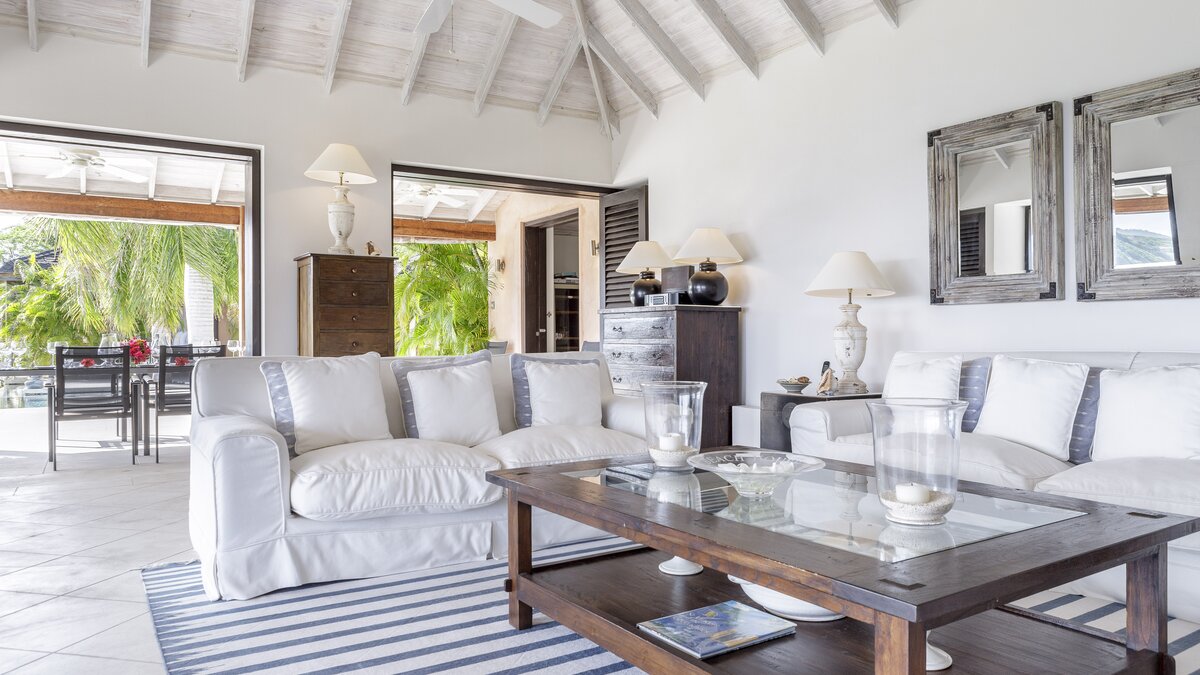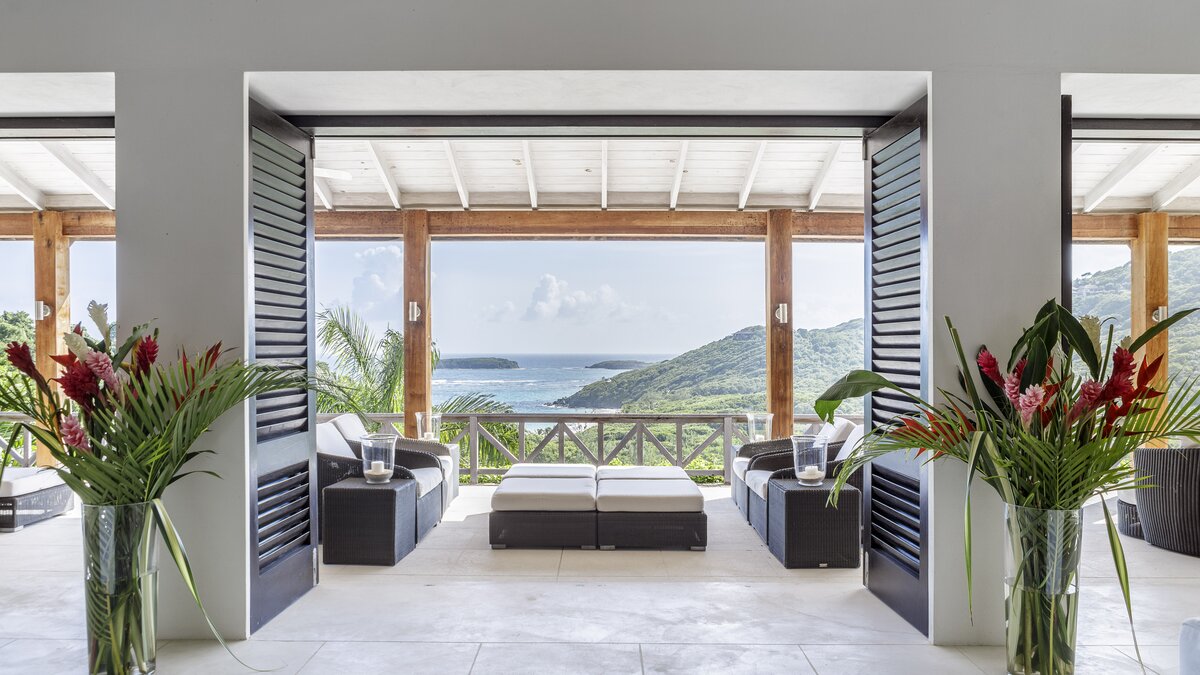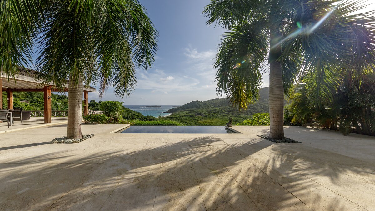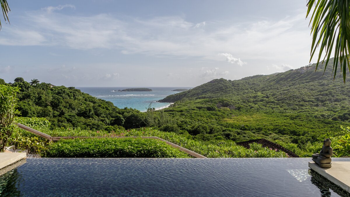 All three bedrooms have uninterrupted views out to the Atlantic Ocean. There are two private pools, a plunge pool adjacent to the living space, and a stunning twelve metre infinity pool, both with panoramic sea views. Both pools have nearby gazebos with soft seating providing respite from the sun, and the grounds are well-equipped with ample sun loungers and parasols. There is also a media pavilion for evenings spent relaxing with a film. The villa is fully staffed with a butler, housekeeper and cook, and use of a vehicle is included, so you should find your every need taken care of. Gorgeous Macaroni Bay beach is just a five minute walk from the property, while the highly desirable Gelliceaux Bay, perfect for swimming, is easily reachable.