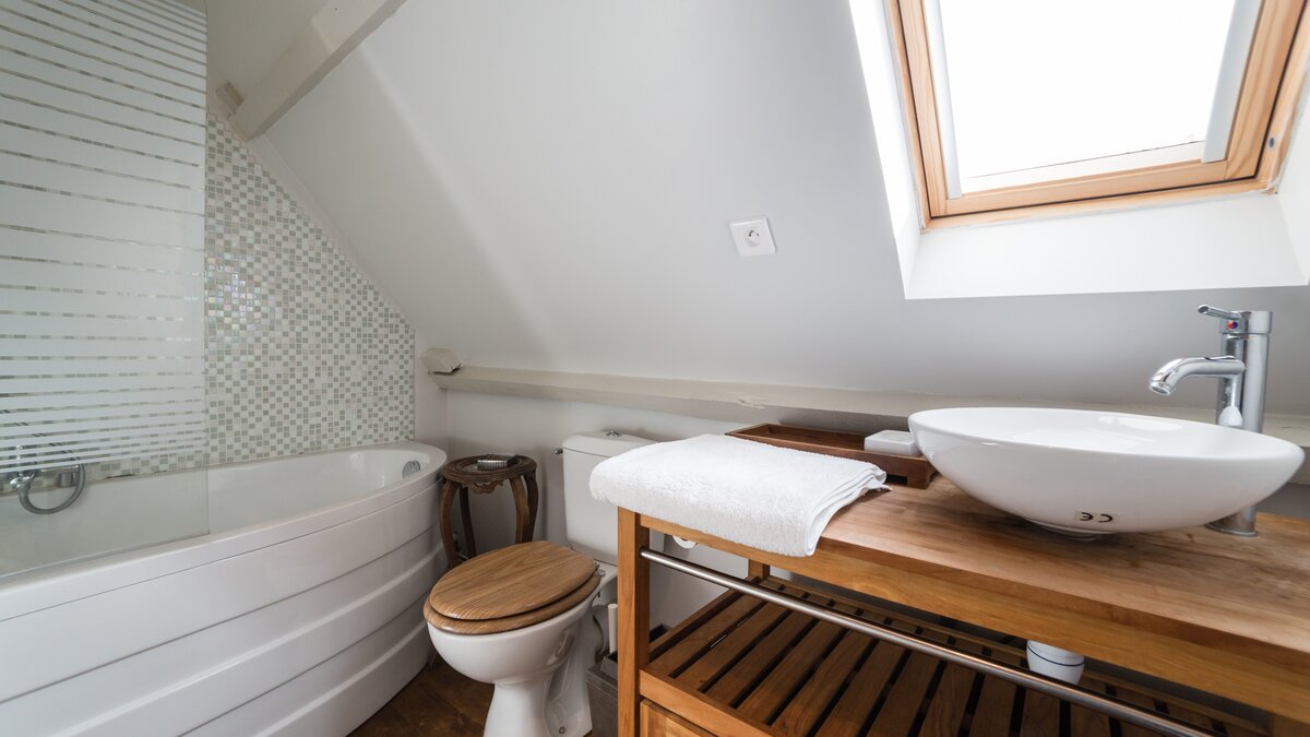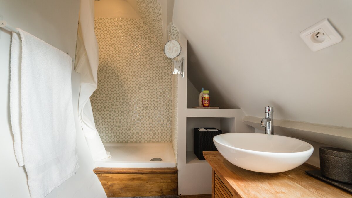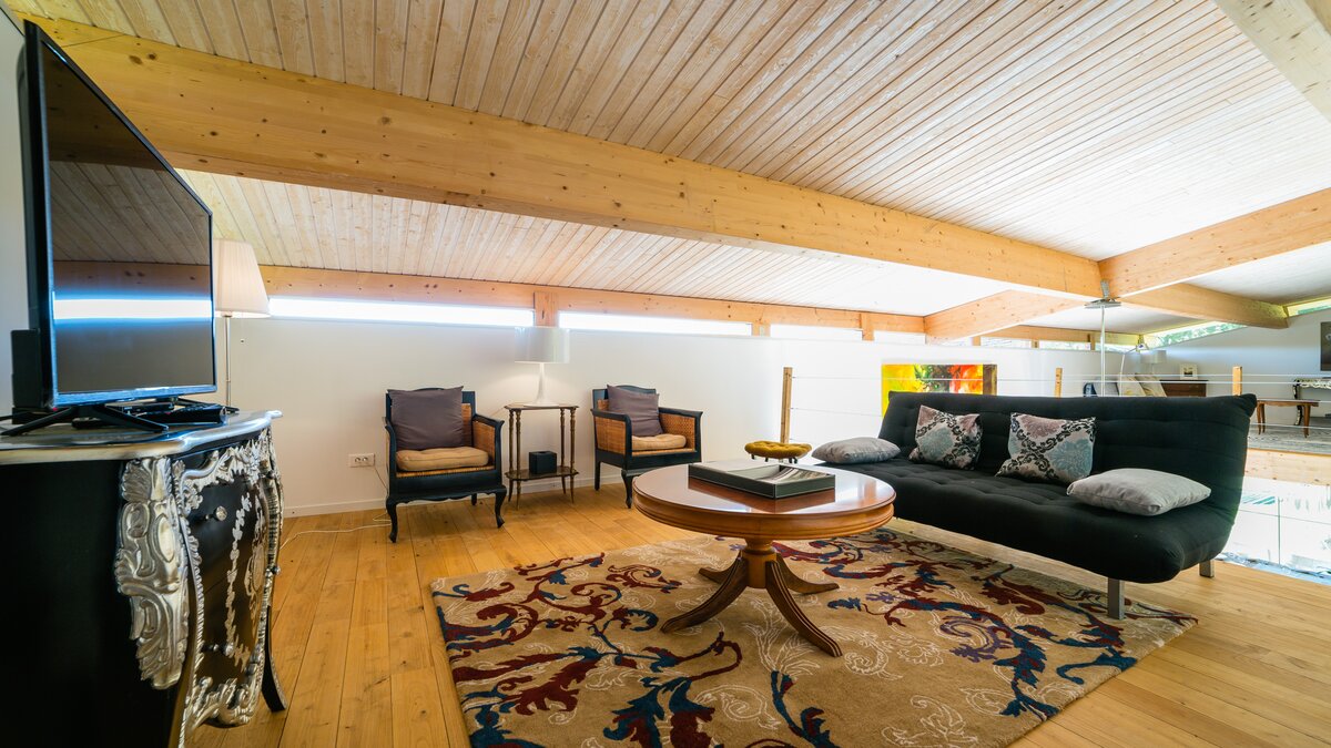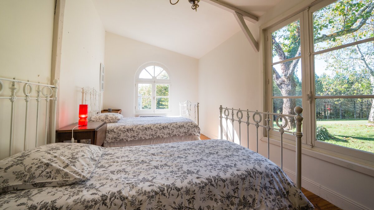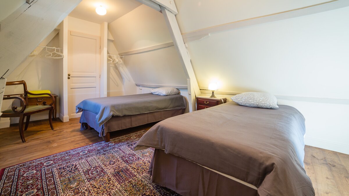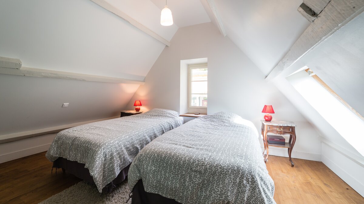 Twin bedroomShower roomLarge living area with stone fireplace, dining area and pantryPear house - first floor