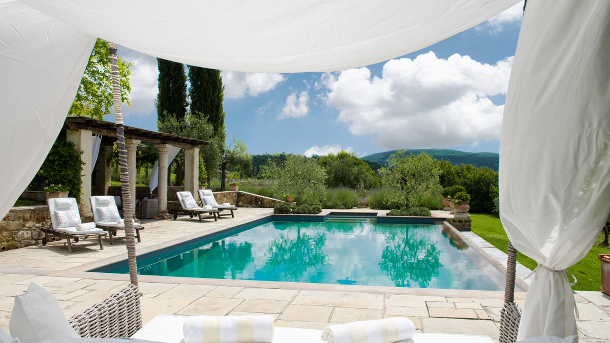 Med en privat sjö, skogar och olivlundar, och fantastisk utsikt över avlägsna slott på kullarna, är denna lyxvilla i Toscana en utsökt tillflyktsort som utstrålar lugn och sofistikering.