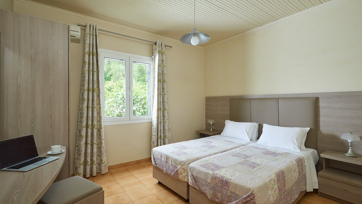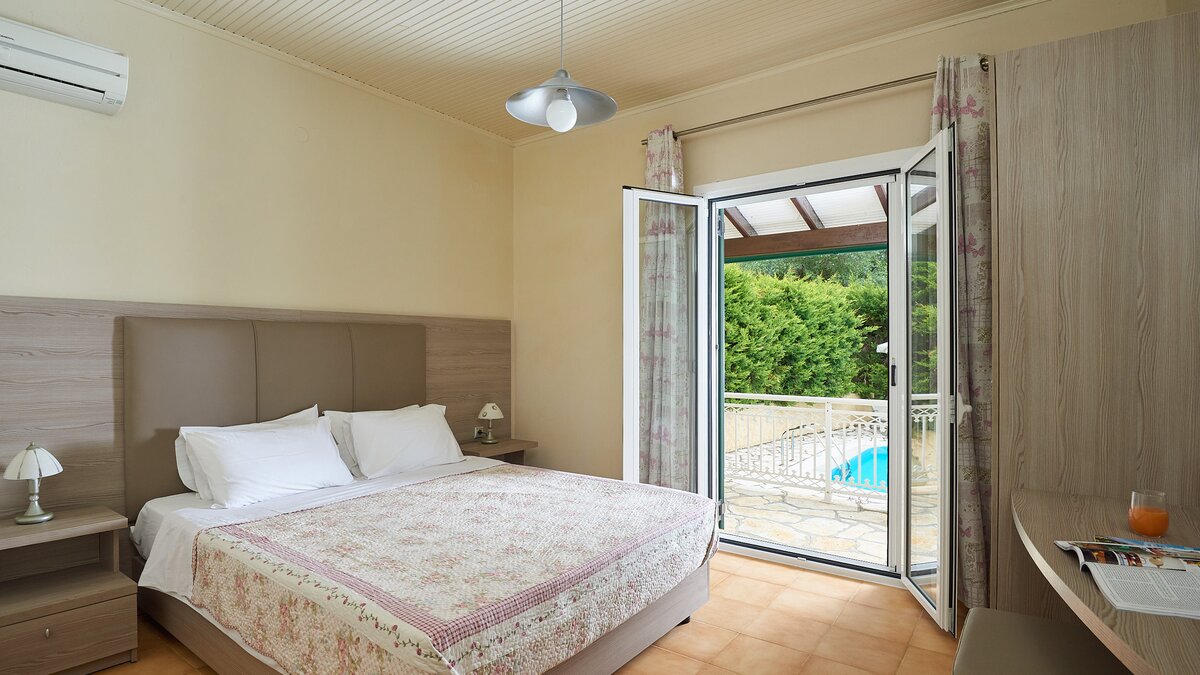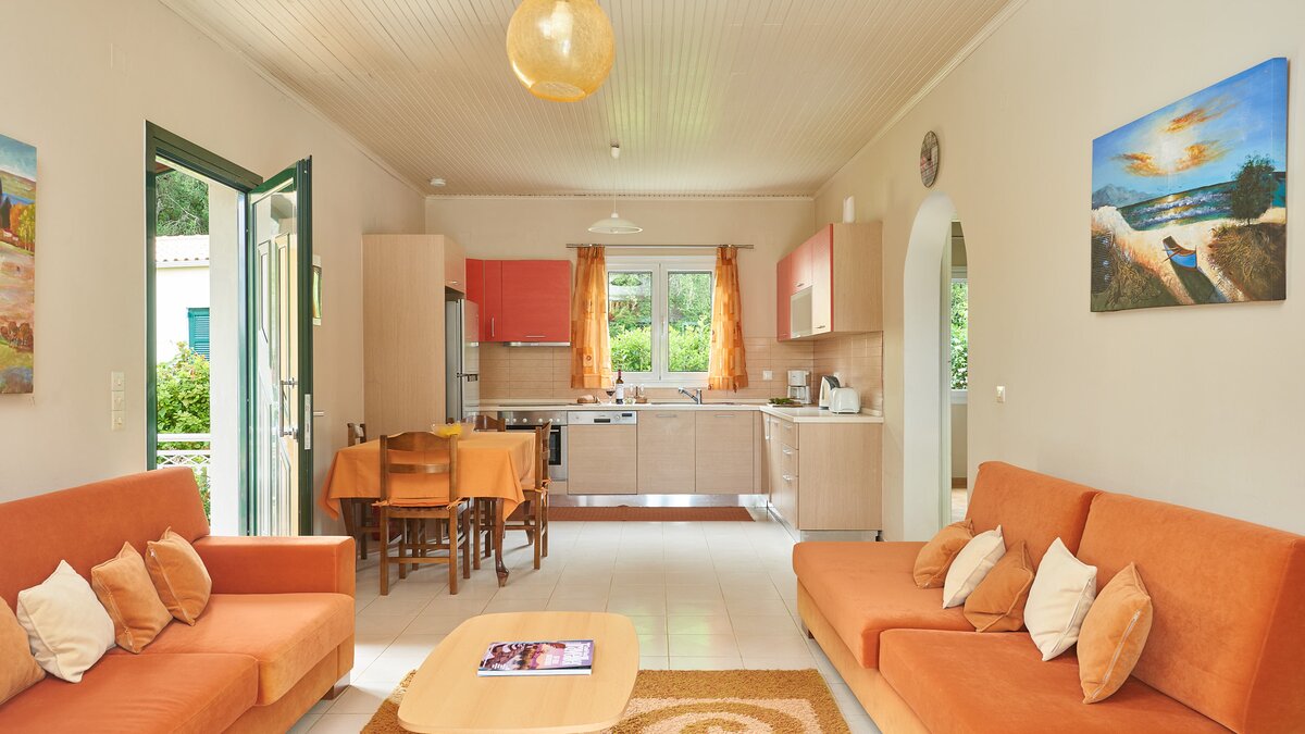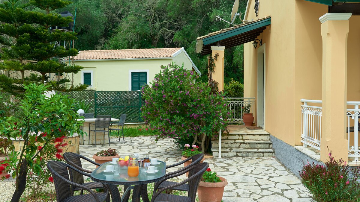 Just minutes away from the village centre, gorgeous gardens surround this little family villa in Corfu, naturally screening a private pool and creating a charming space for al fresco living.