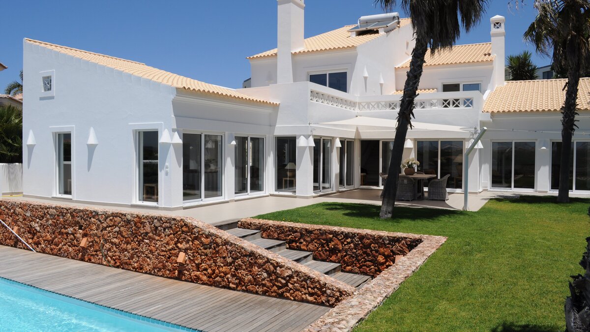 Denna fastighet var en av de ursprungliga villorna på Martinhal Beach resort och har nyligen renoverats till en mycket hög standard. Det ljusa och rymliga vardagsrummet är vackert inrett i neutrala färger och naturmaterial, och har stora glasfönster och dörrar i hela, vilket översvämmar utrymmet med ljus och ger tillgång till trädgården och ner till poolen. Det finns ett stort, modernt kök och skafferi, och slutligen på bottenvåningen finns det stora sovrummet. Detta imponerande rum har en öppen spis och ett eget badrum med jacuzzi och separat duschkabin. På första våningen finns en familjesvit med vardagsrum, pentry, dubbelsäng och eget badrum, vilket gör denna fastighet idealisk för två familjer, eller en utökad familj, som semestrar tillsammans men kräver lite mer utrymme och självständighet. Det finns ytterligare ett badrum på denna våning samt ett mezzanine med två dubbelsängar. Utanför har terrassen skuggiga utrymmen och ett urval av uteserveringar. Trappsteg leder ner från terrassen till den privata poolen och grillplatsen, medan villan har utsikt över en stor gräsmatta och underbar kaktusträdgård.