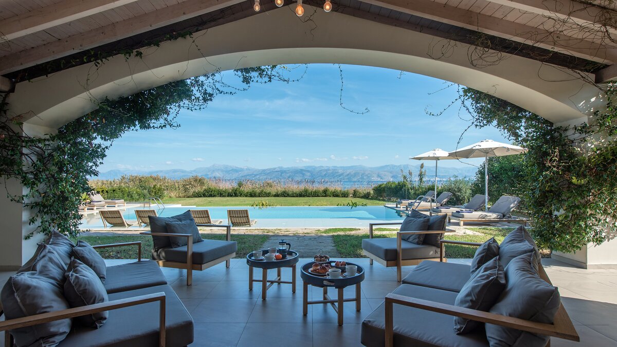 Nero Beach House har ett oöverträffat läge vid stranden och erbjuder vidsträckt utsikt över havet mot Albaniens berg. Denna fastighet har utformats med familjer och grupper i åtanke, rymlig nog att alla har sitt eget utrymme att koppla av inomhus eller utomhus. Den 12 meter långa infinitypoolen är omgiven av vackra solstolar i trä för att sola och grunderna som sträcker sig ner till havet, och runt huset finns en täckt terrass med sittgrupp som ger gott om skugga för att njuta av utsikten. Till