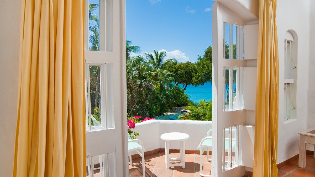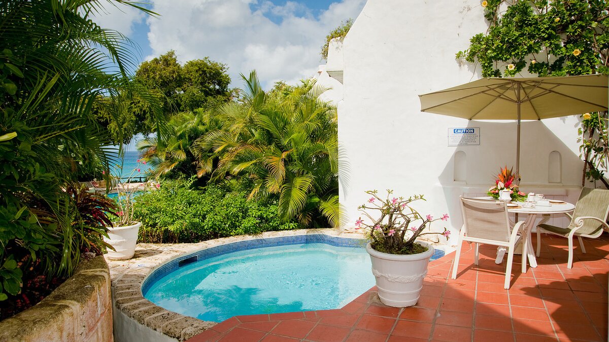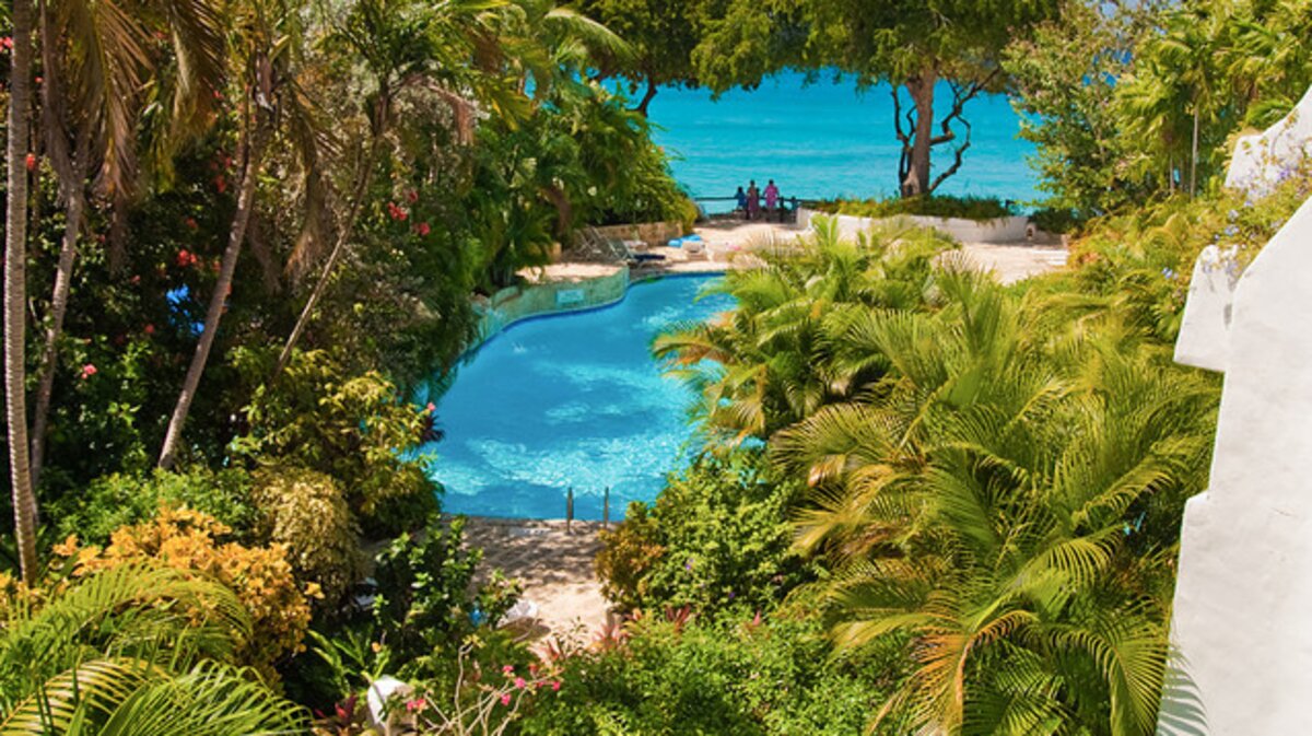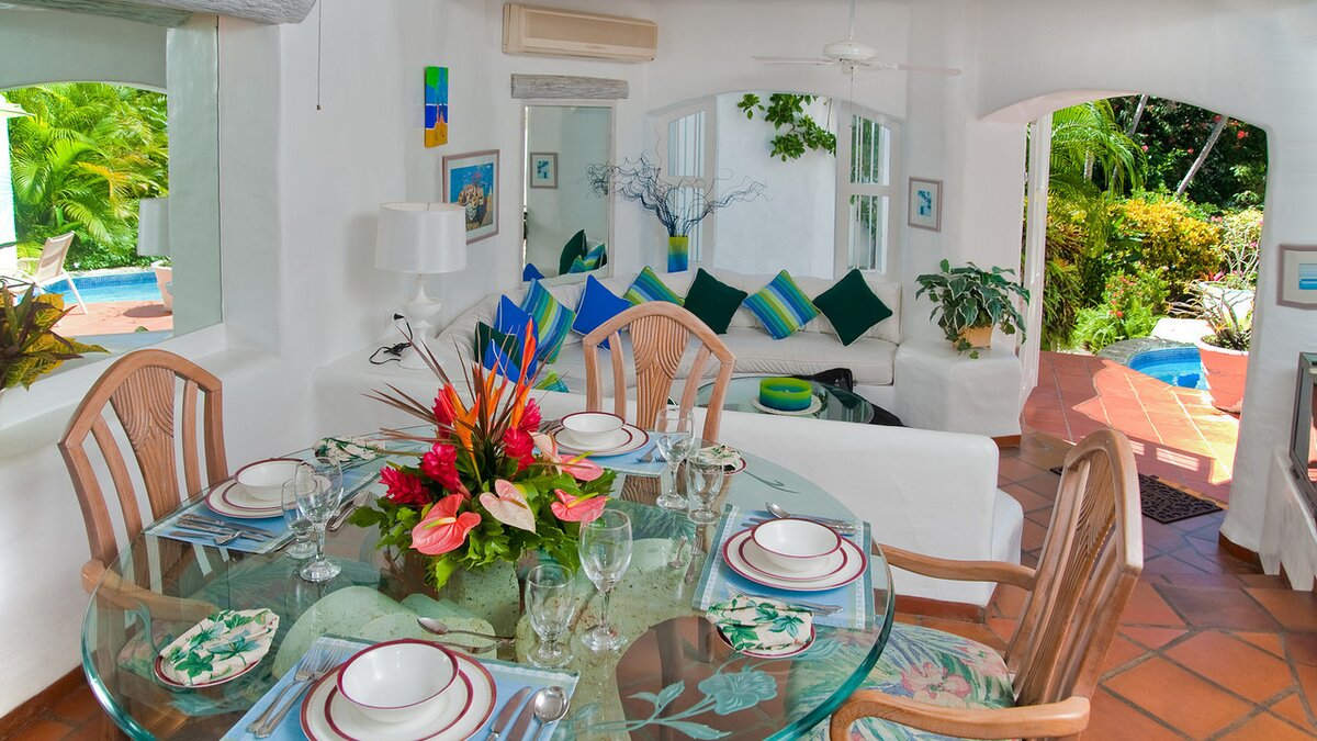 Cheerful art and artefacts, and furnishings in bold stripes and summery florals bring bright splashes of colour to the white wood furniture and whitewashed walls of this light and airy family villa. The two storey house has an air-conditioned sitting room, open plan to a split-level dining area and well equipped kitchen, and offers cook service to ensure effortless leisure for its guests. Double doors lead from the living area to a furnished terrace and pretty plunge pool, and each of the three en suite bedrooms opens on to a balcony or terrace. The eight villas of Merlin Bay cluster around a fabulous free-form swimming pool in a broad coral stone terrace, which is a very sociable space for all the guests, and steps lead down from here to a secluded sandy beach below. Ocean View is quietly set well back from the pool but, as its name suggests, has views straight through to the blue of the sea. A five minute drive away, Holetown has a lively atmosphere, lovely shops and a fine variety of restaurants.