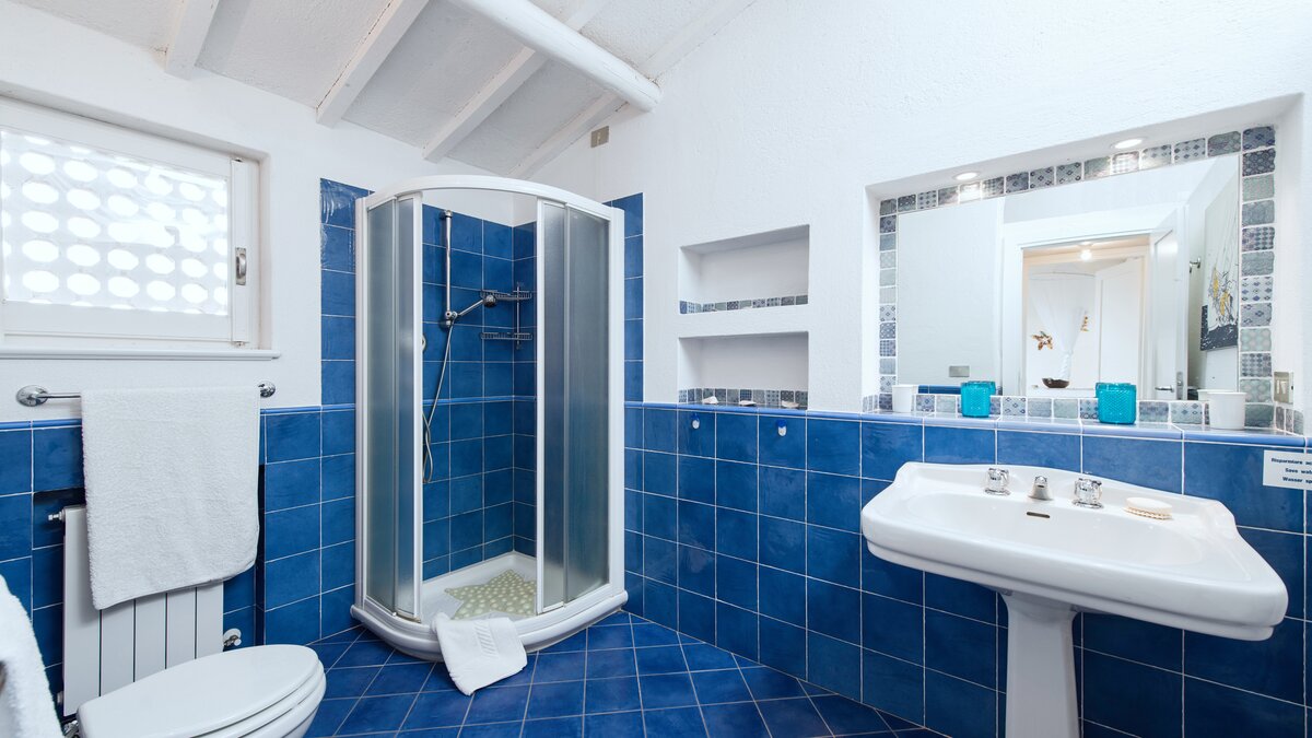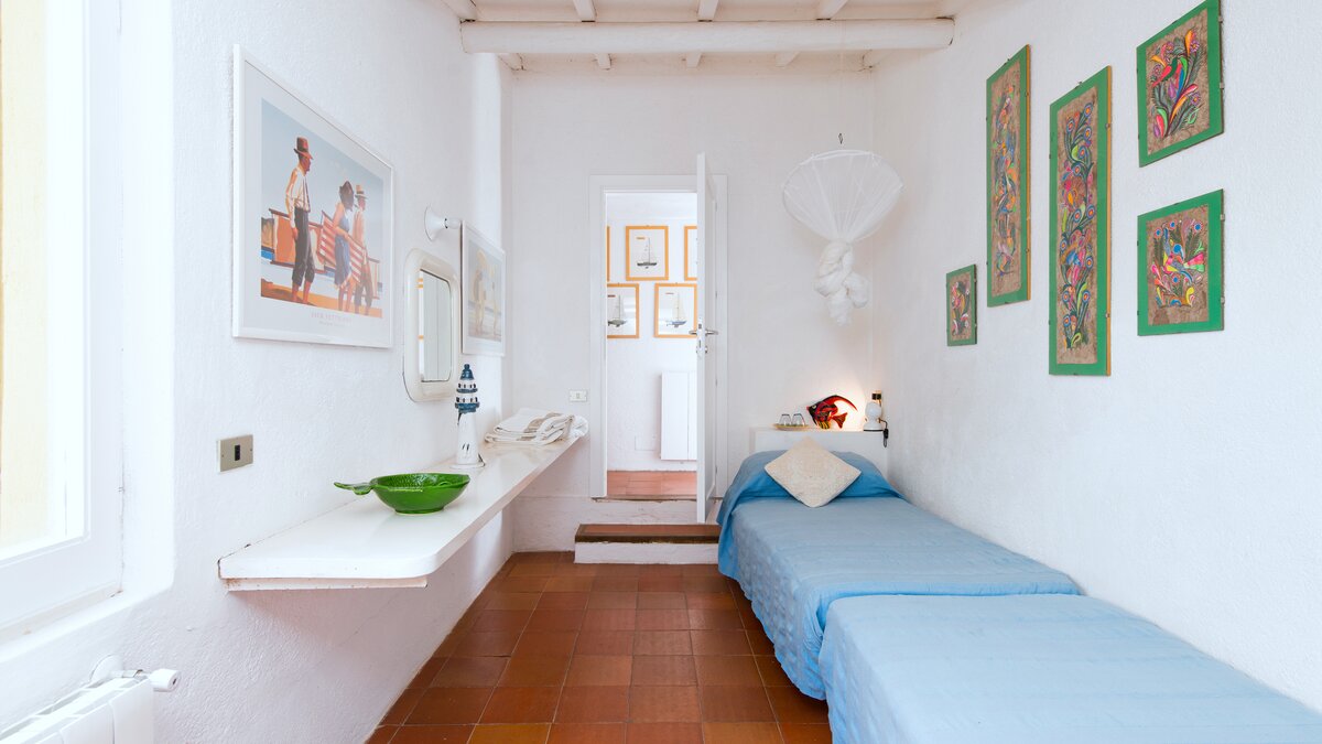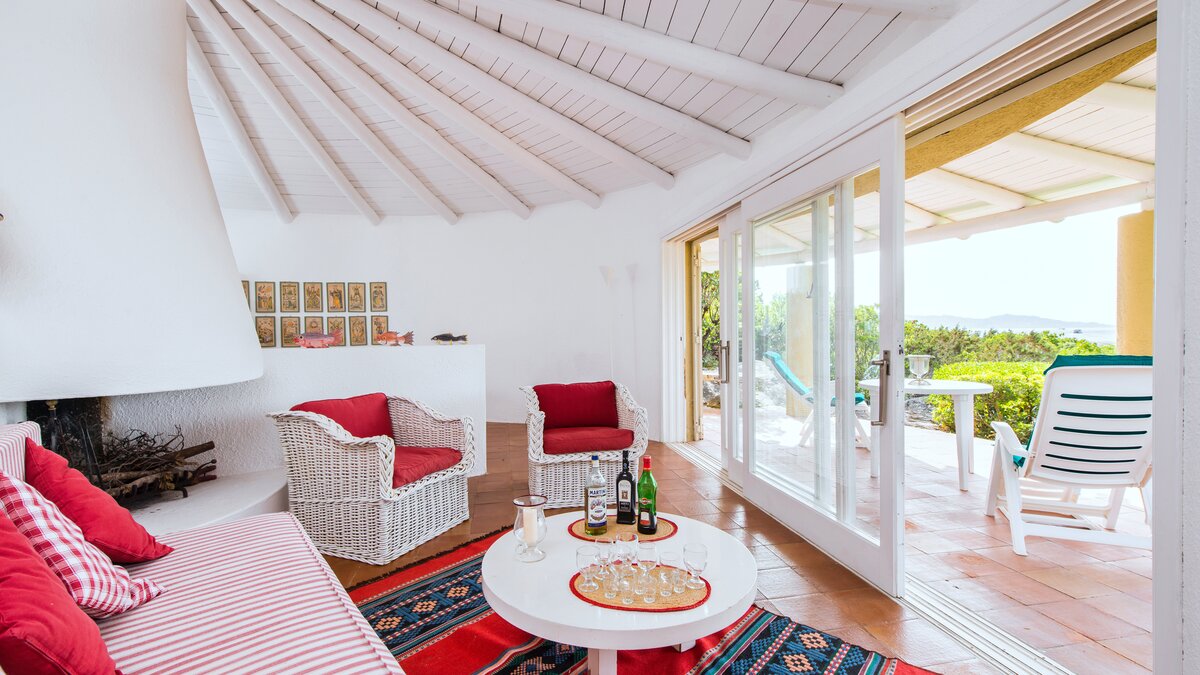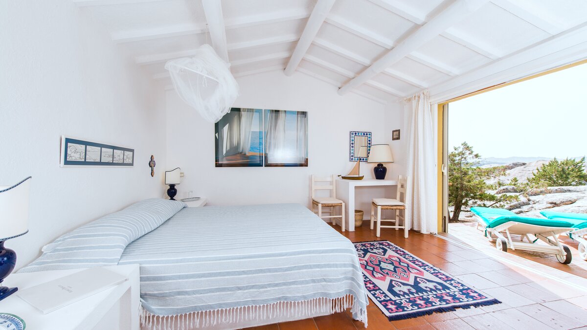 The wind-whipped peaks of Capo d’Orso are mentioned in Homer’s Odyssey, tradition has it that Ulysses anchored his ship in the bay below this house, and the likelihood is that little has changed in tempo and tranquillity during the time in between. With captivating views from its lovely loggia and from an al fresco dining area beneath the trees, this wonderfully welcoming villa is imbued with a happy and relaxed atmosphere. Within the main house, an airy living room is furnished informally with big seats and bags of colourful cushions, and five cheerfully individual bedrooms, simply furnished in attractive coastal style, include two doubles with doors on to wide furnished terraces and bath or shower rooms of a good size.