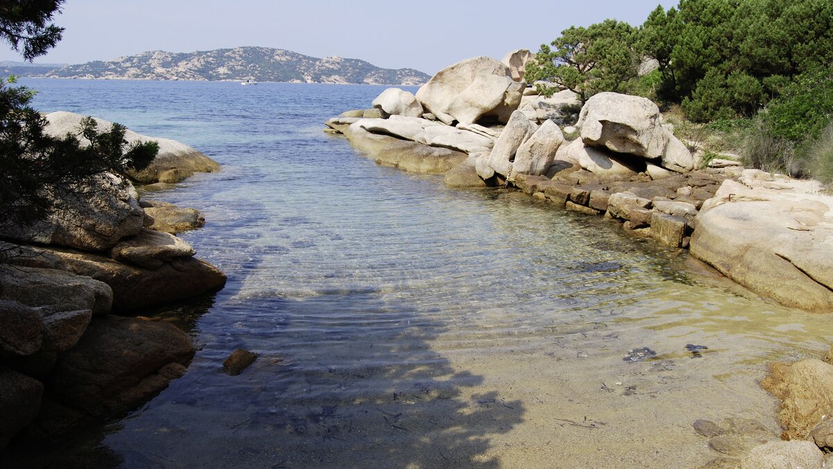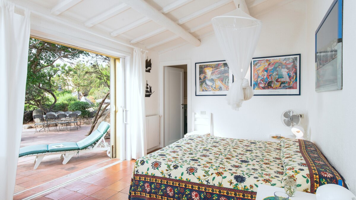 There are two dining terraces for sun or shade. A separate guest cottage offers privacy for two with its own kitchenette, colourful sitting area opening to a terrace, new shower room and twin/double bedroom. And a path through the trees leads down to two virtually private white sand bays, where boulders, smoothed by time and tide, become huge abstract artworks. Small boats (hired at Palau, 3km away) can be moored here, perhaps for excursions to the Maddalena islands. And Porto Raphael is just 5km from the villa.